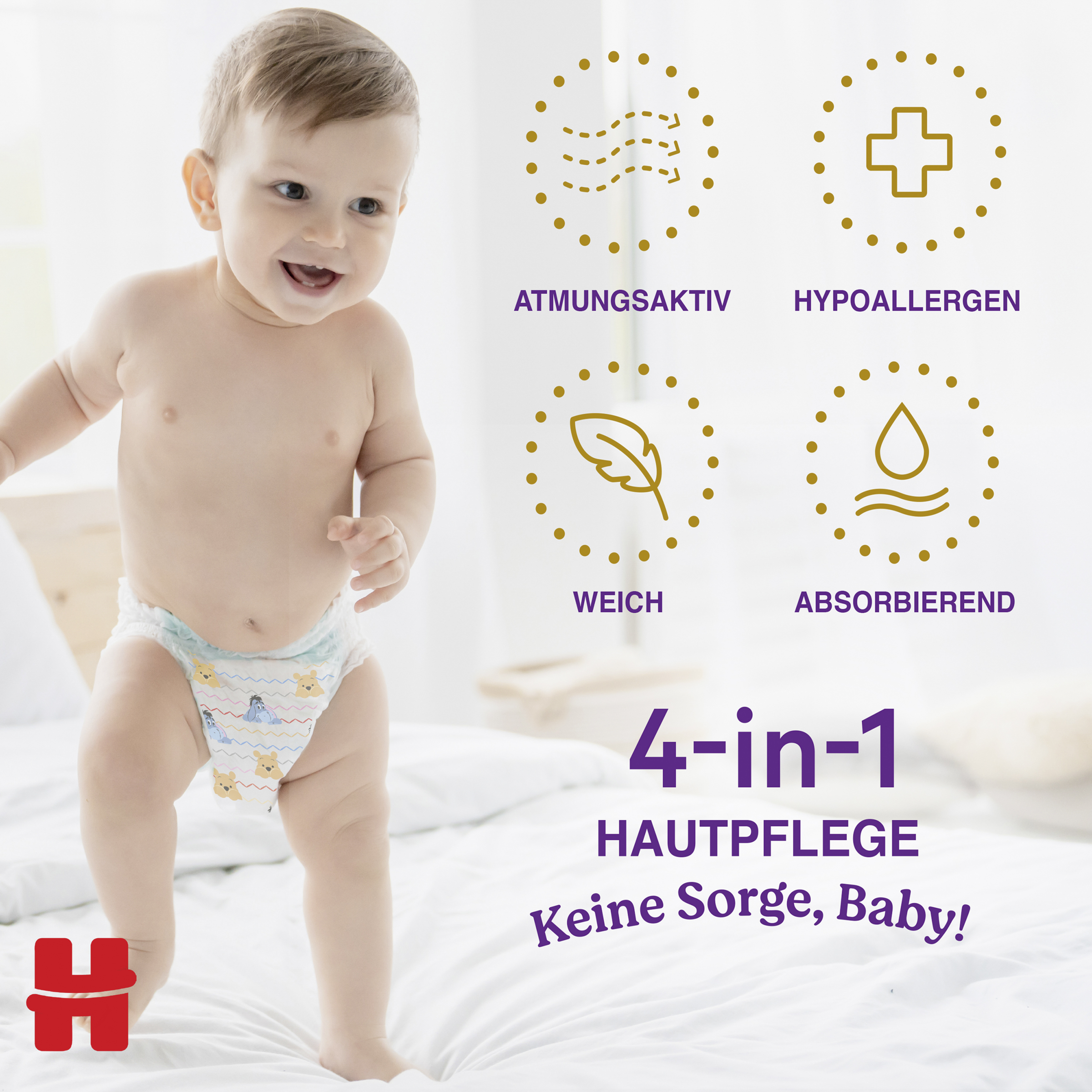 - 4-in-1 Hautpflege: weich, saugfähig, atmungsaktiv, hypoallergen