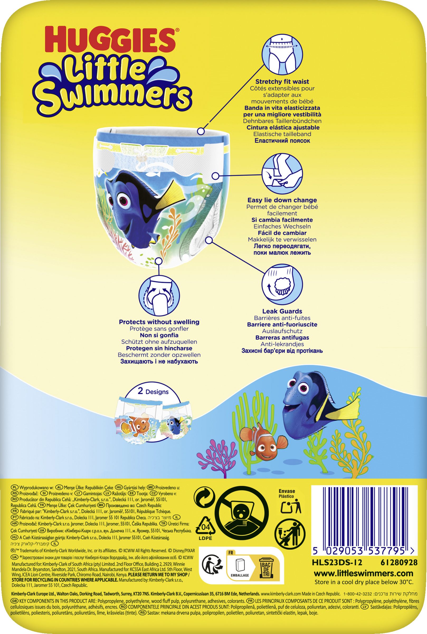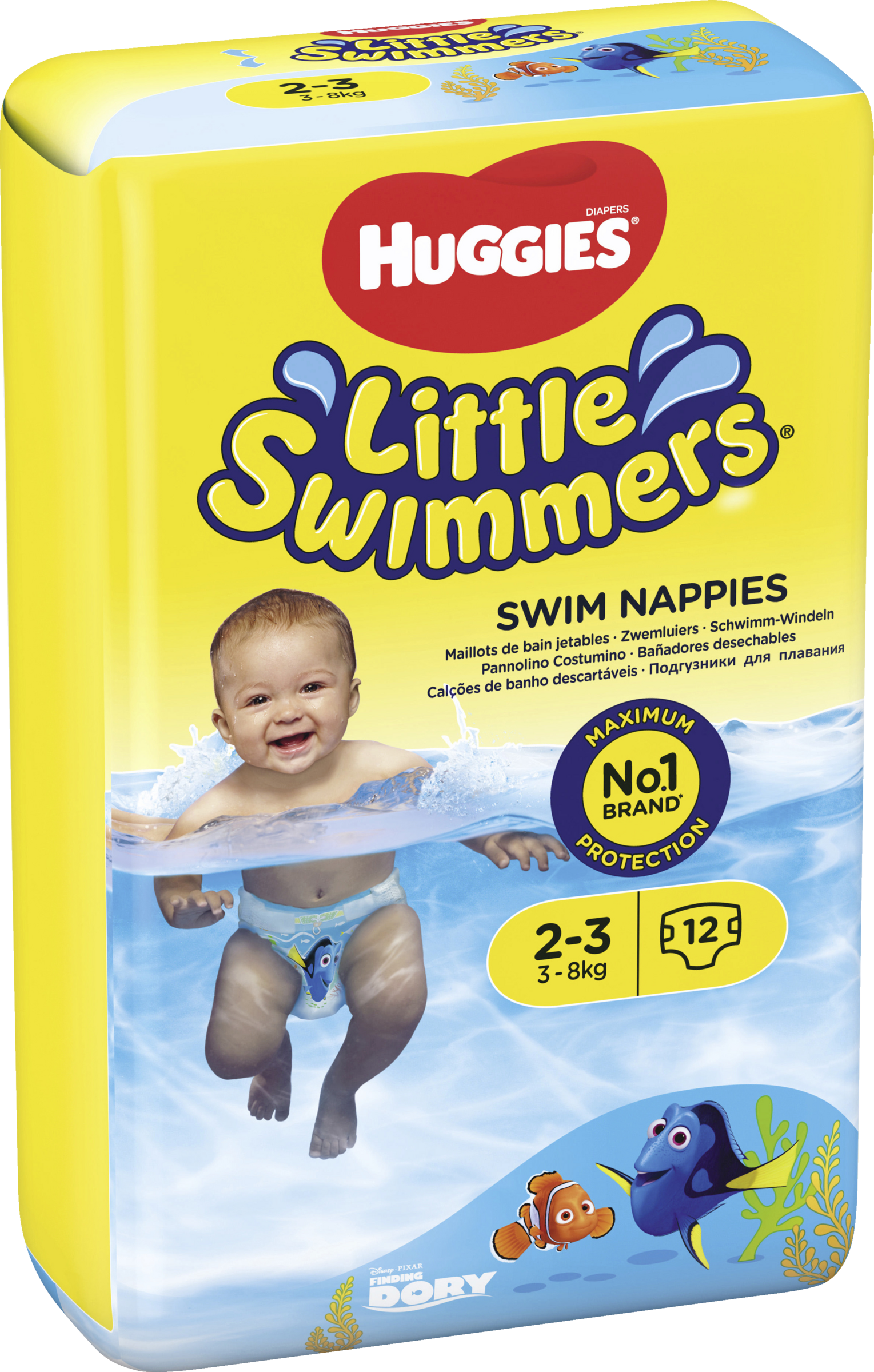 Die Huggies® Schwimmwindeln Little Swimmers® wurden extra für das Babyschwimmen entwickelt: Sie quellen im Wasser nicht auf und schützen vor großen und kleinen Malheuren im Wasser.