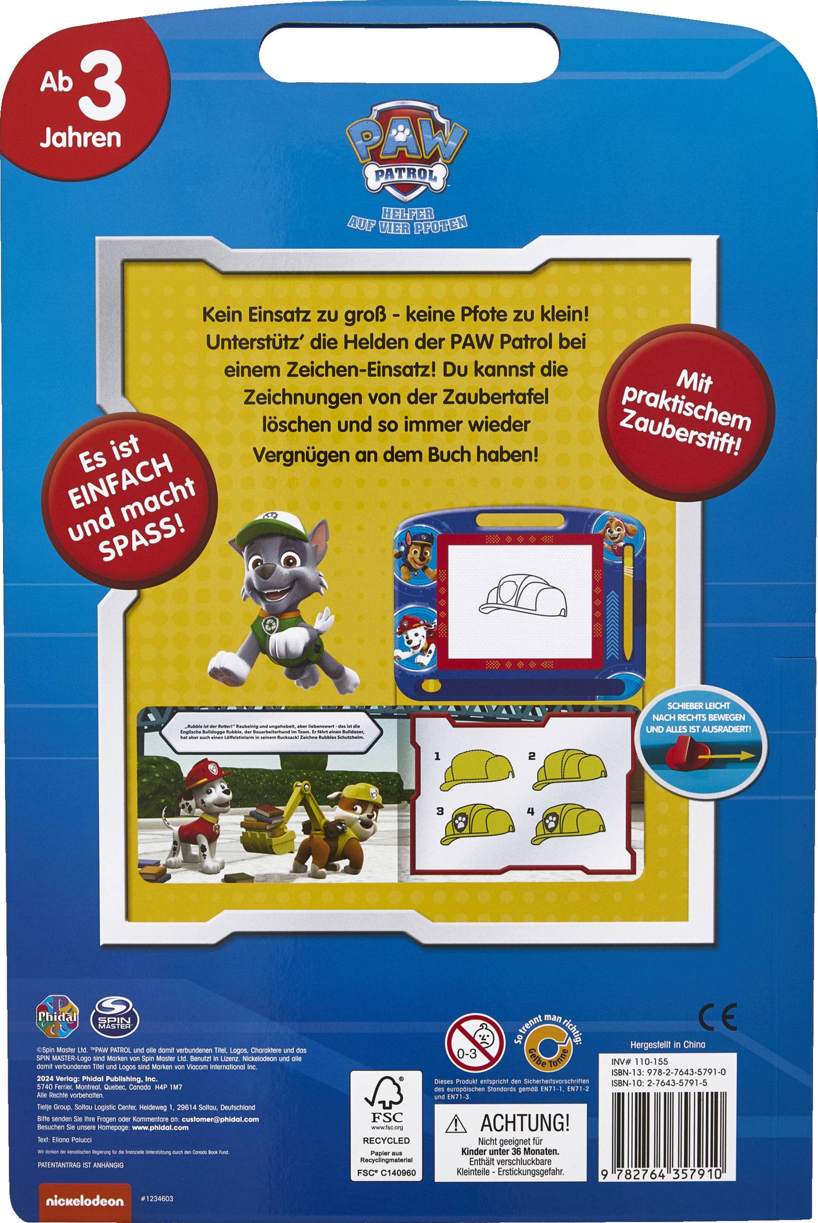 Kein Einsatz zu groß - keine Pfote zu klein! Unterstütz' die Helden der PAW Patrol bei einem Zeichen-Einsatz! Du kannst die Zeichnungen von der Zaubertafel löschen und so immer wieder Vergnügen an dem Buch haben!