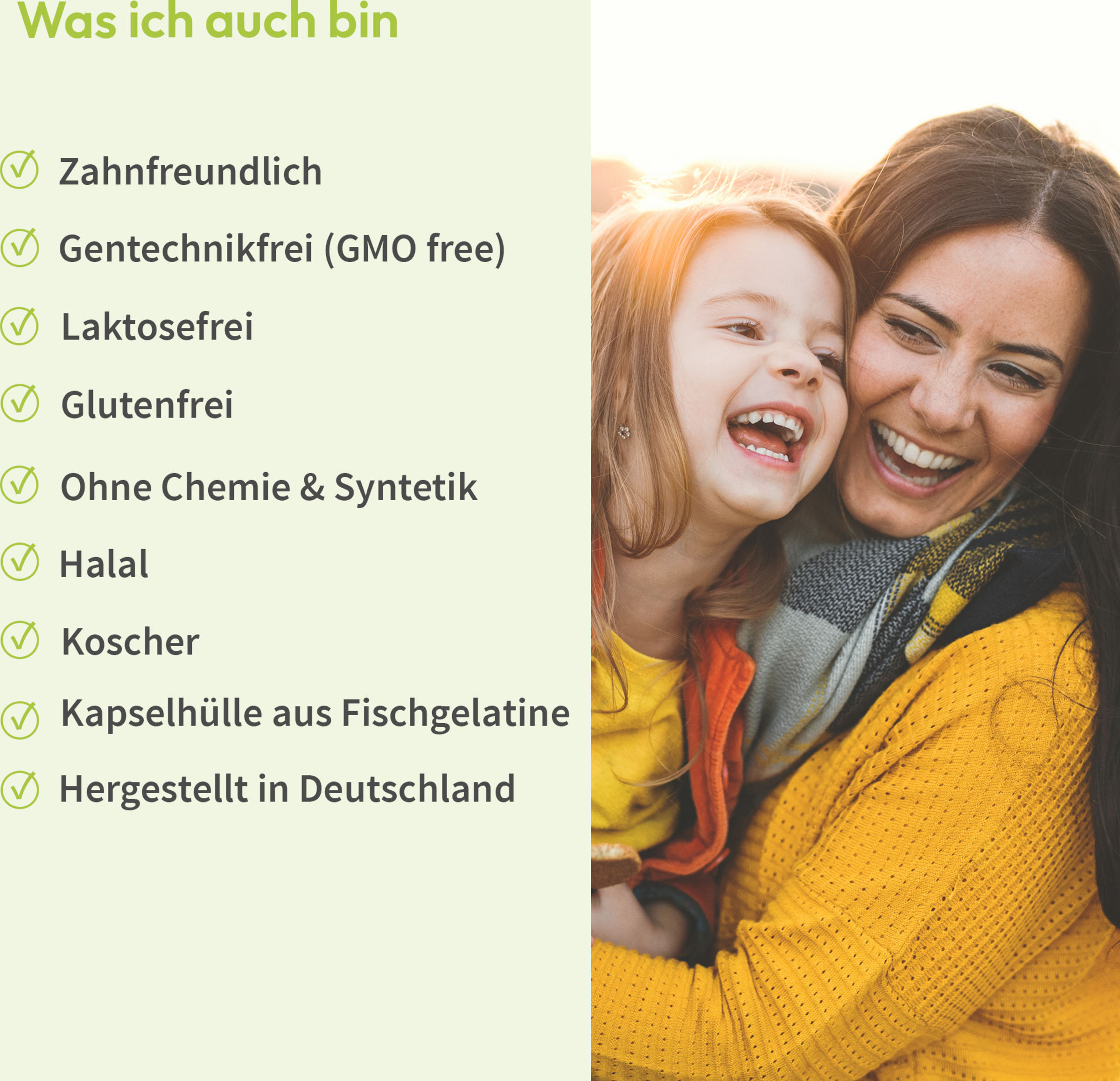 - ohne Zucker, Süß-, Farb-, Aroma- und Füllstoffe sowie synthetische Vitamine