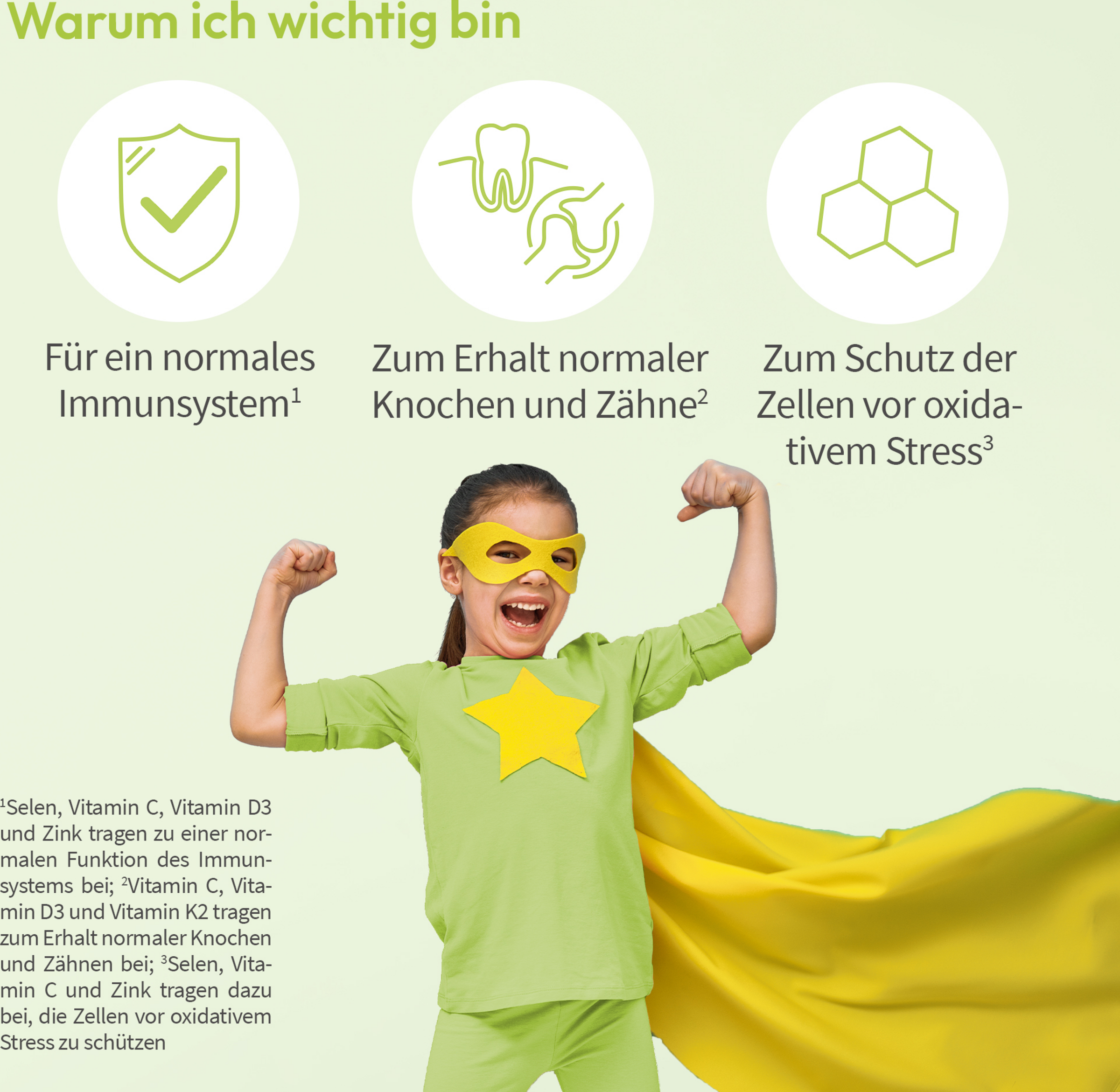 - mit Vitaminen und Mineralien die zu einer normalen Funktion des Immunsystems von Kindern beitragen*