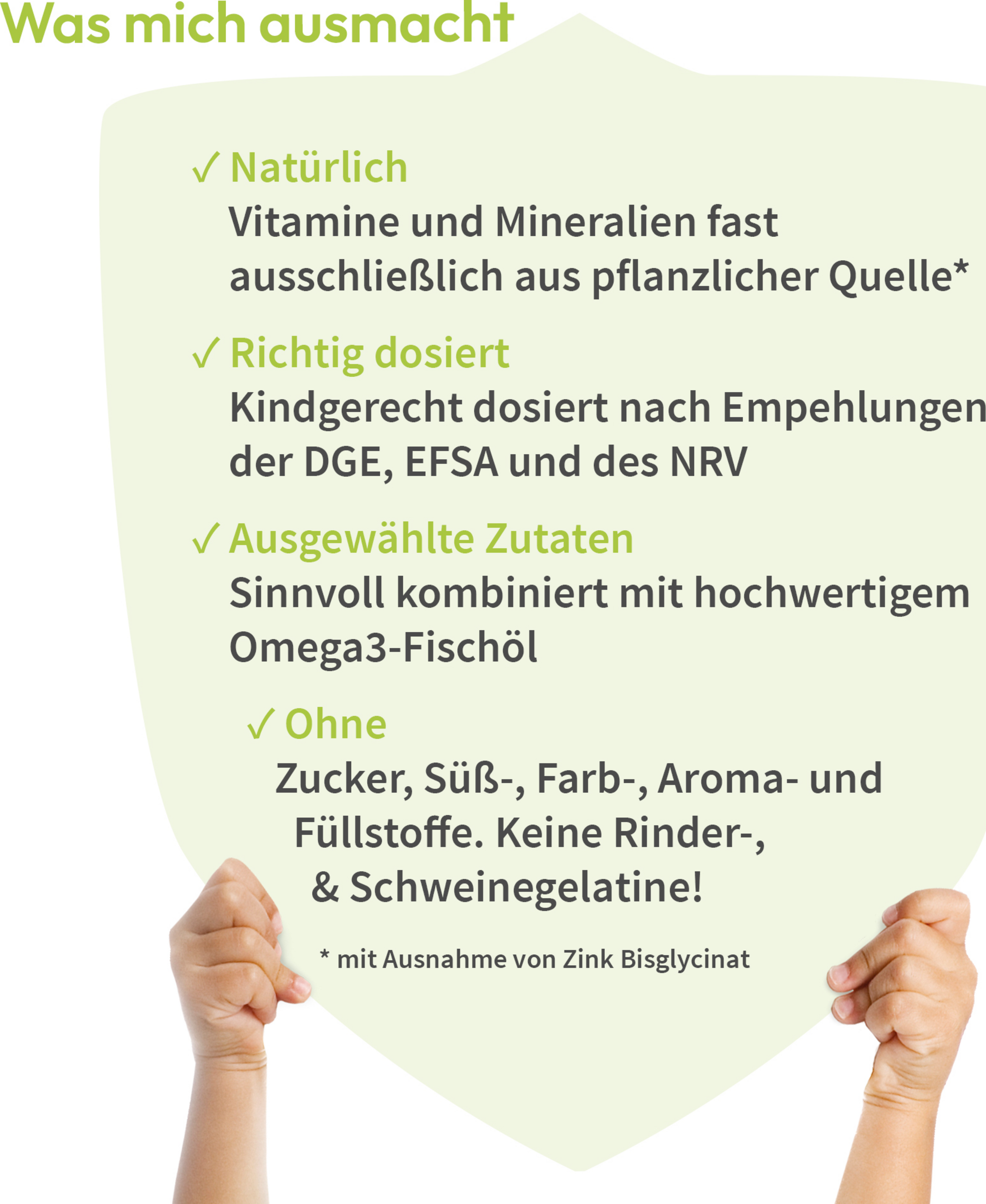 - kindgerecht dosiert nach Empfehlungen der DGE, EFSA & NRV