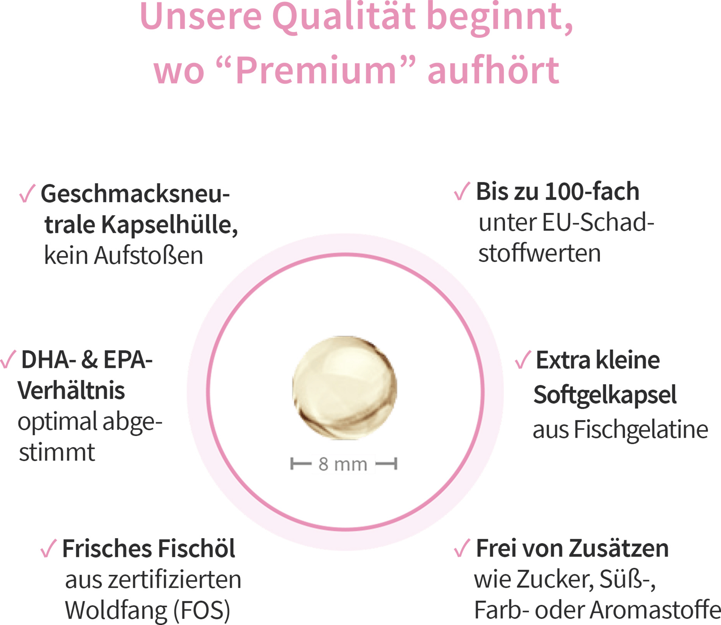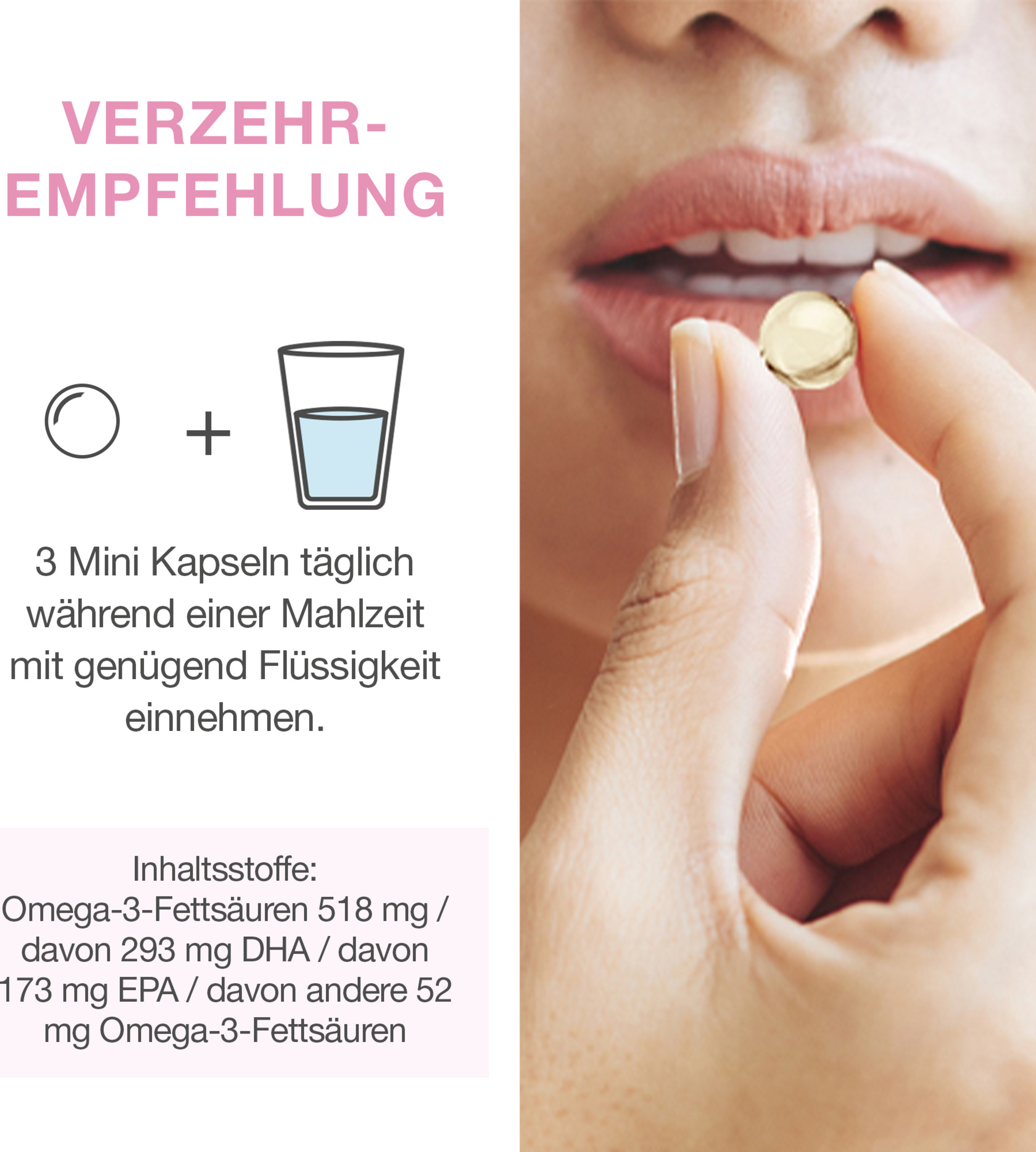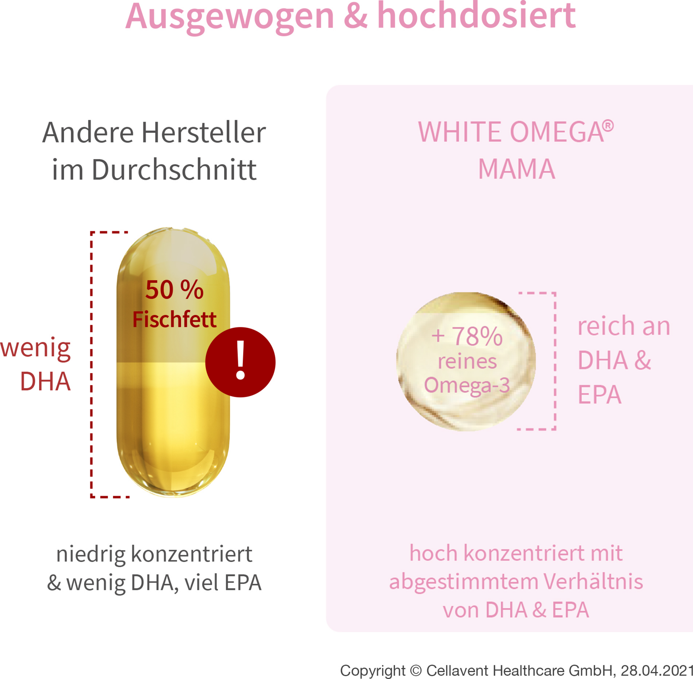 - maximale Wirkung für zwei: Die perfekte Balance aus DHA (293 mg) und EPA (173 mg) für die bestmögliche Versorgung von Mama und Baby