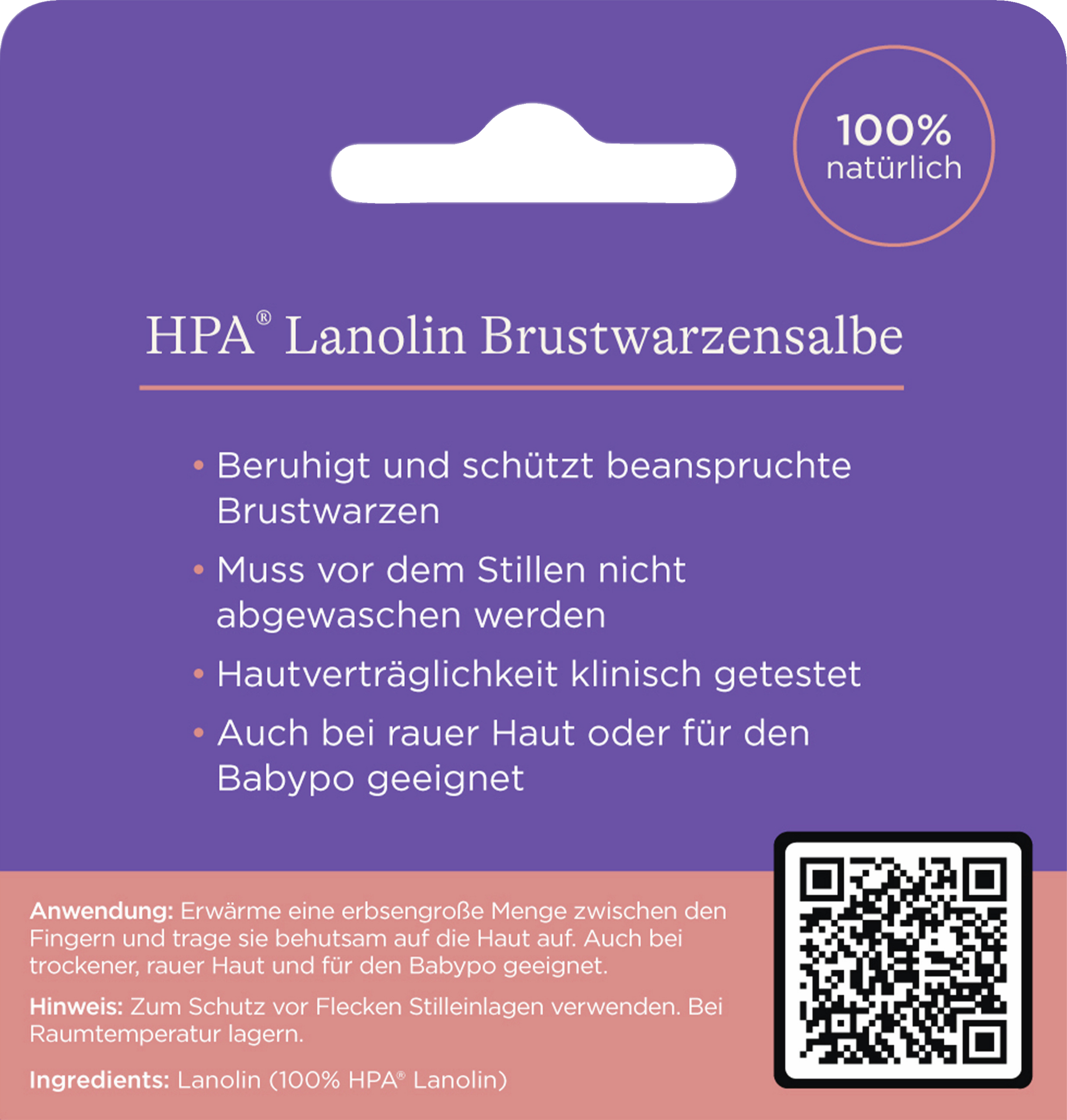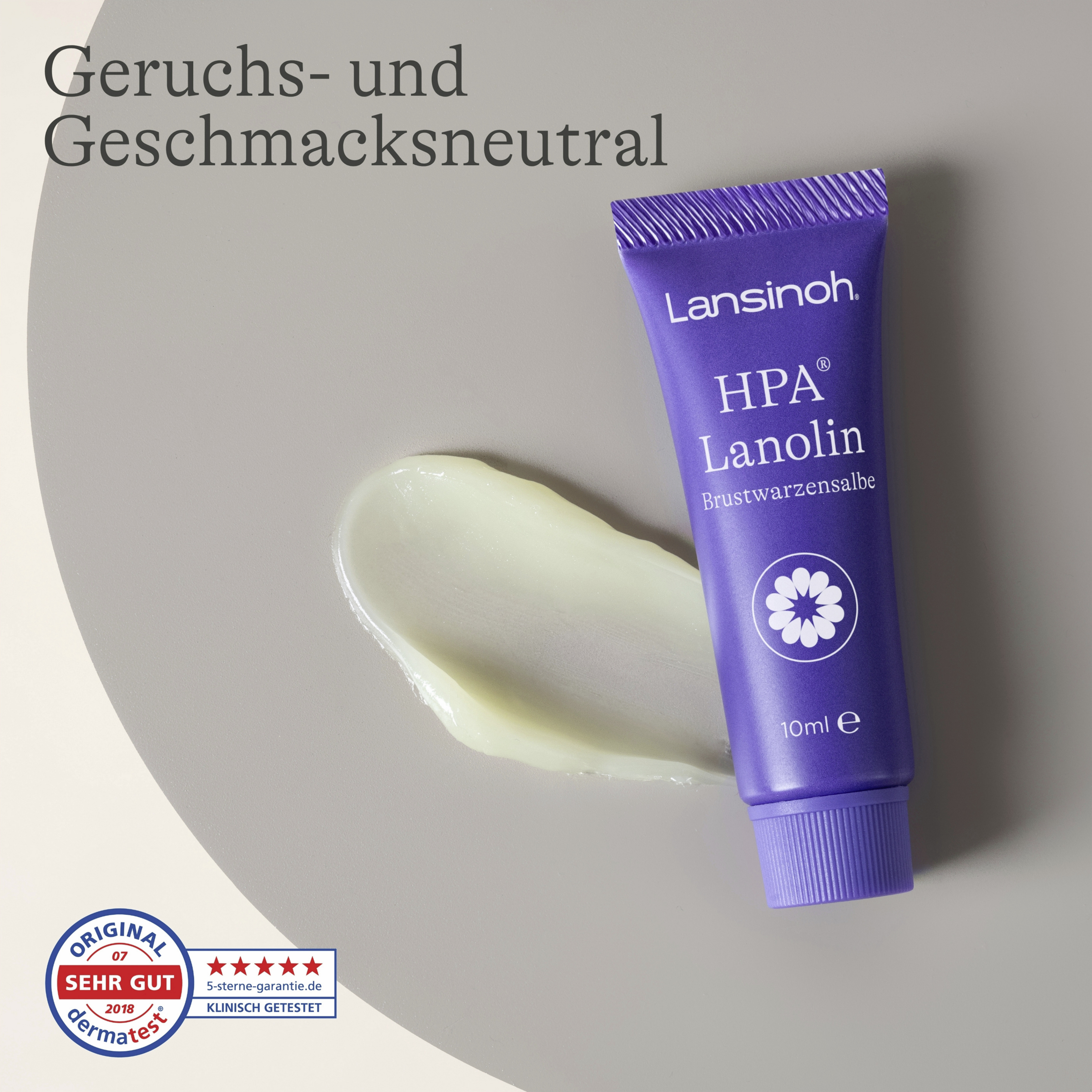 Lansinoh® HPA® Lanolin pflegt, beruhigt und schützt empfindliche Brustwarzen sowie raue Haut. Sie ist 100 Prozent natürlich und muss vor dem Stillen nicht abgewaschen werden. Die hochaufgereinigte Brustwarzensalbe sollte also in keinem Haushalt fehlen!