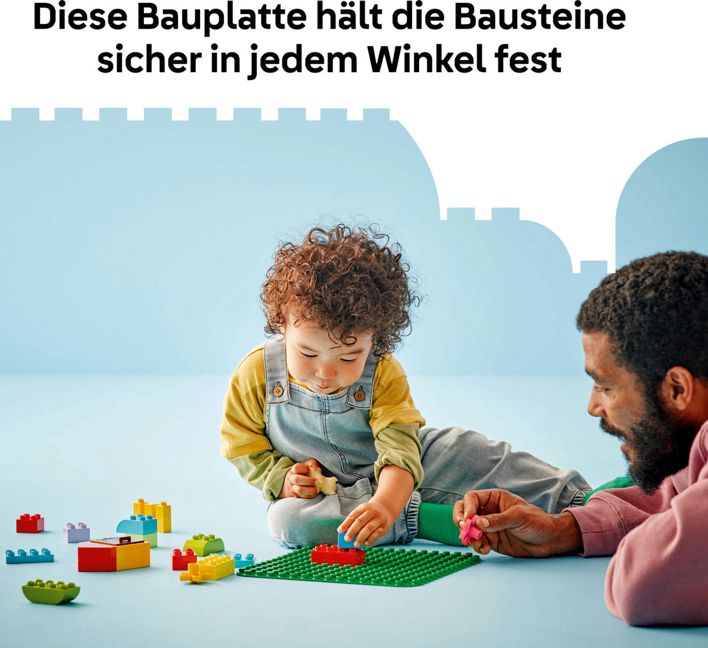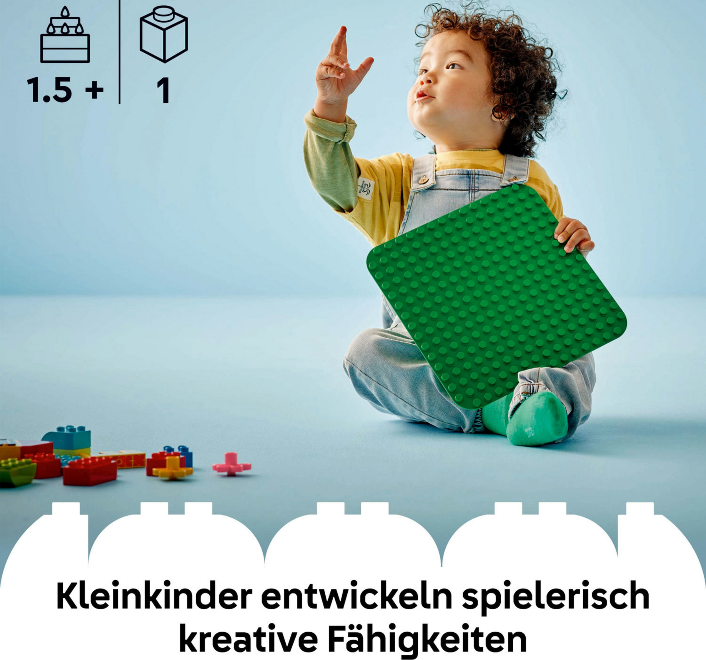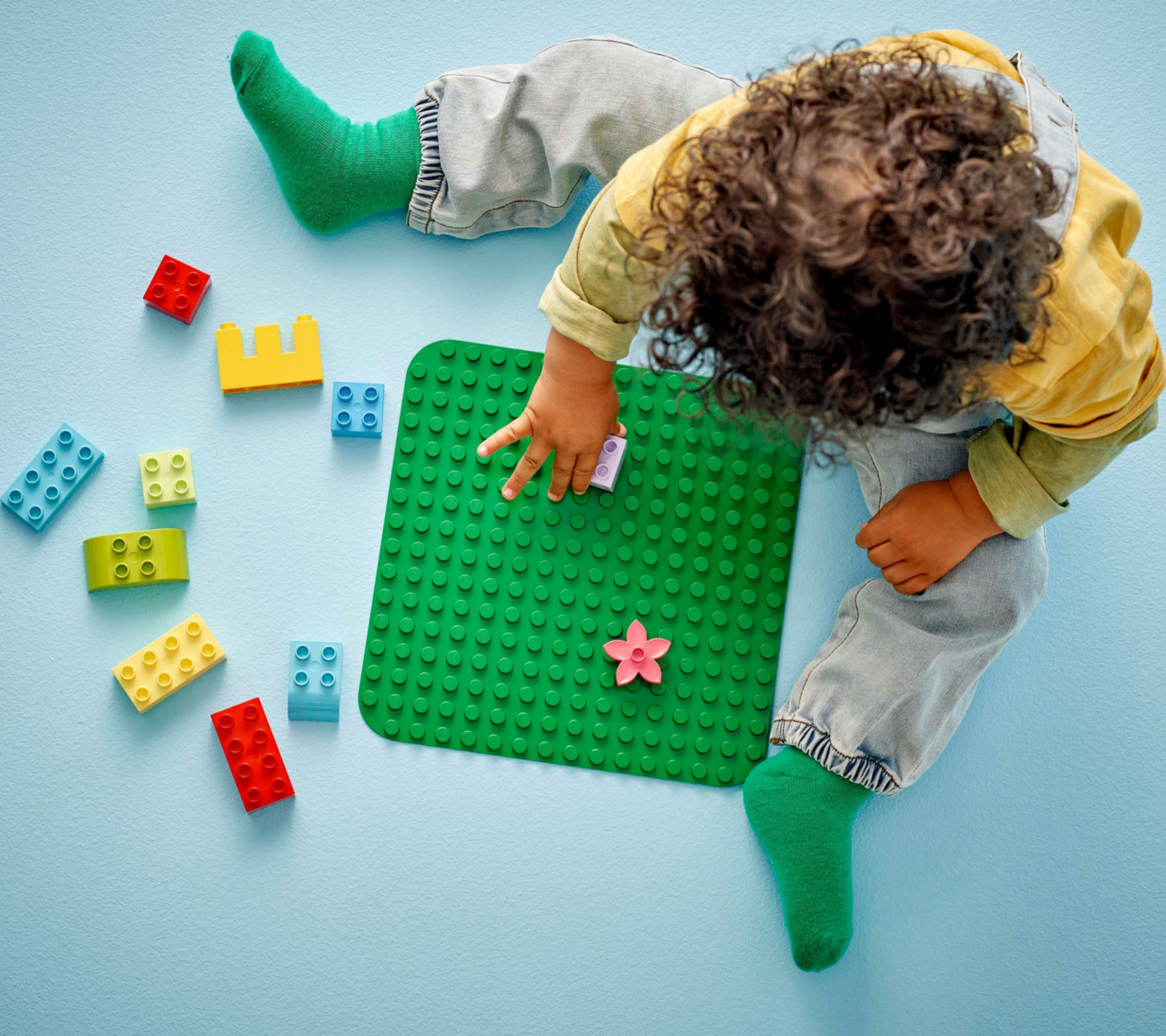 Die LEGO DUPLO Bauplatte in Grün (10460) dient Vorschulkindern ab 18 Monaten als perfekte Landschaft, auf der sie ihre fantasievollen Modelle aufbauen und ausstellen können.
