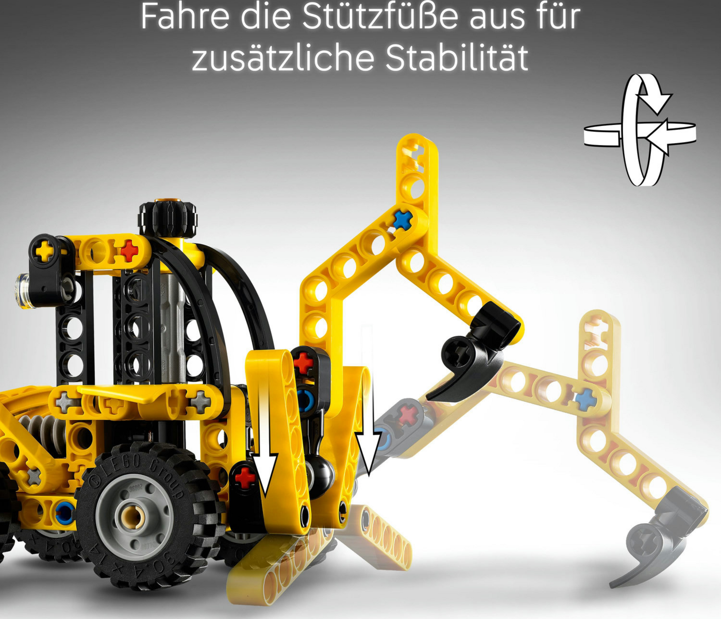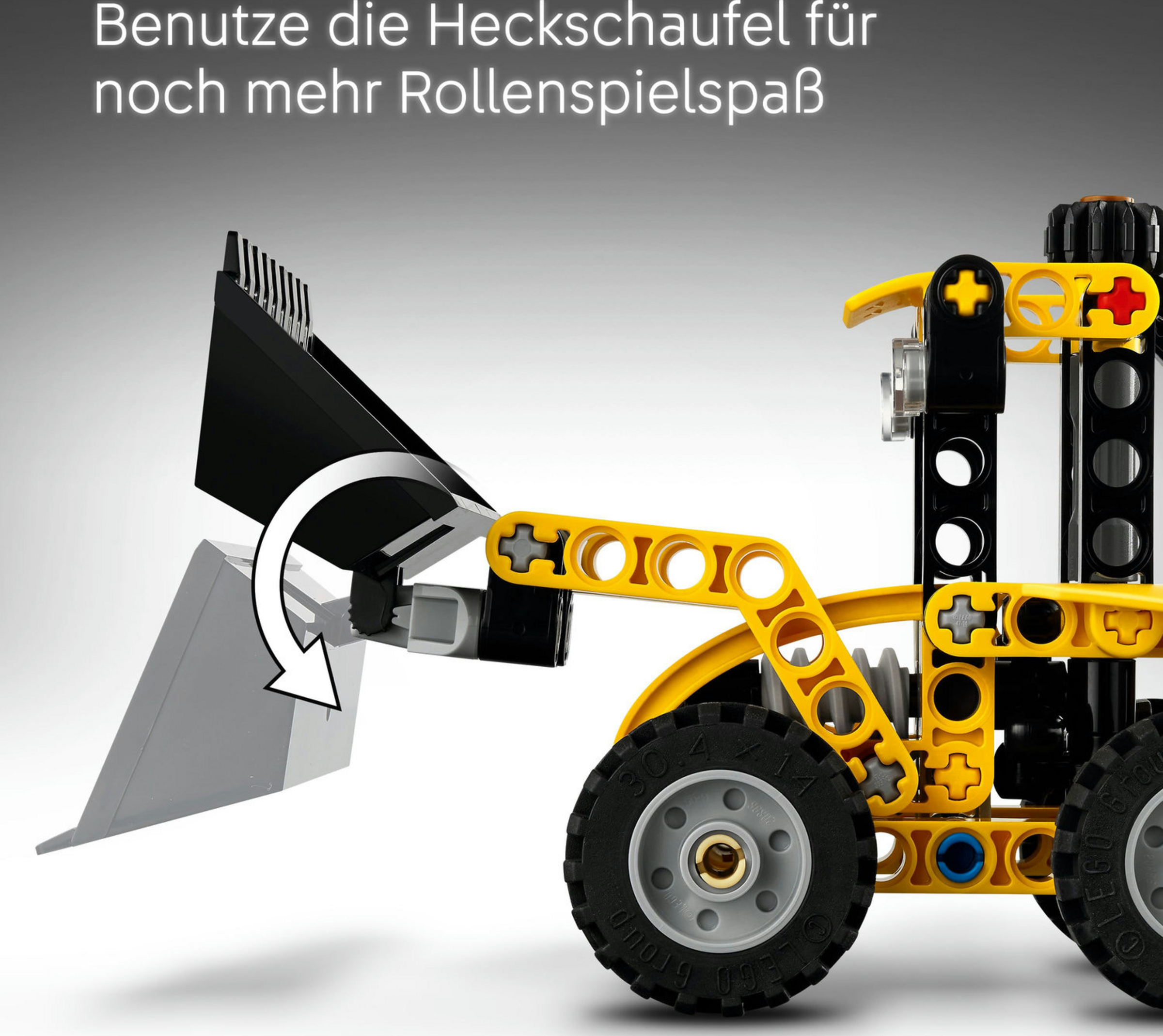 Dieses Bauspielzeug bietet Jungen, Mädchen und allen Fans von Baustellenfahrzeugen riesigen Spielspaß. Mit ihrem zuverlässigen LEGO Technic Baggerlader (42197) können Kinder ab 7 Jahren jeden Job auf der Baustelle meistern! Dieses coole Set lässt junge Baumeister in unterschiedliche Rollen schlüpfen und verschiedene Aufgaben erledigen. Bring den Baggerlader in die richtige Position und fahr die Stützfüße aus, damit er stabil steht. Dreh den Knauf, um die vordere Schaufel anzuheben oder abzusenken. Benutze dann die Heckschaufel für die nächste Aufgabe auf der Baustelle.