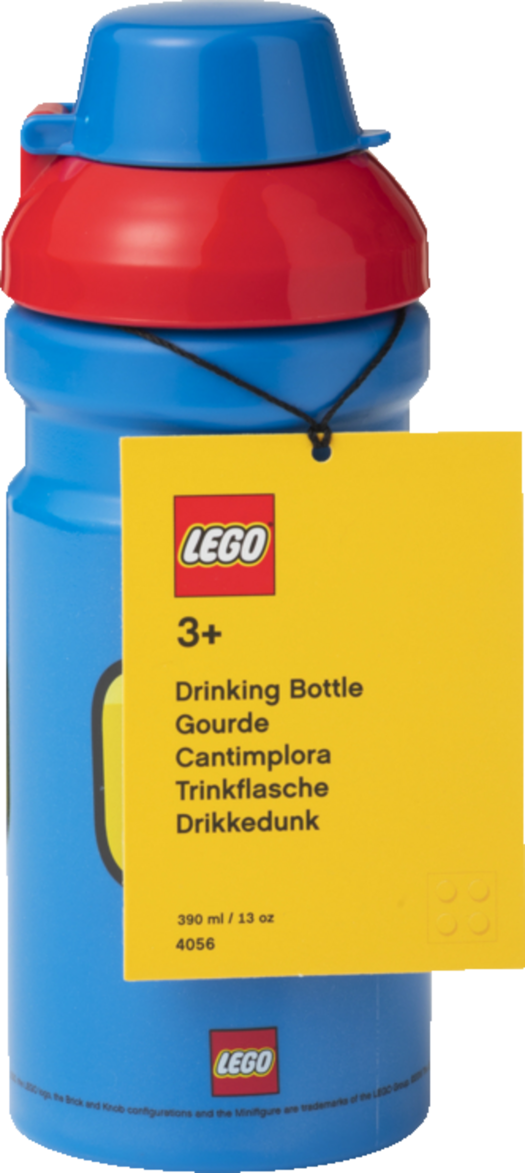 LEGO Drinking Bottle Iconic besteht aus einem Flaschenkörper und einem verschraubbarem Deckel. Am Deckel befindet sich ein Saugnoppen der durch einen klappbaren Staubschutz geschützt wird.