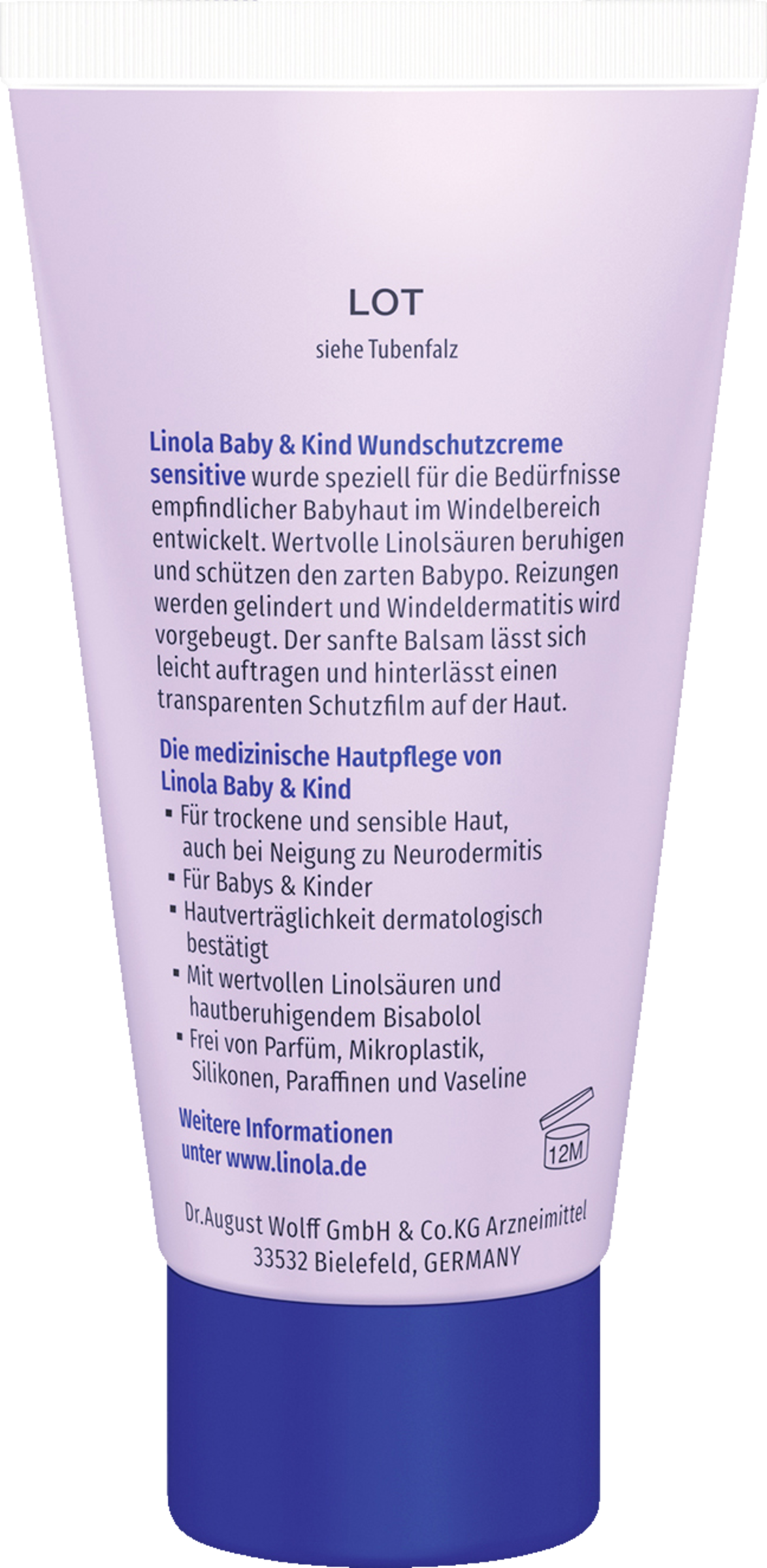 Linola Baby & Kind Wundschutzcreme sensitive wurde speziell für die Bedürfnisse empfindlicher Babyhaut im Windelbereich entwickelt. Wertvolle Linolsäuren beruhigen und schützen den zarten Babypo. Reizungen werden gelindert und Windeldermatitis wird vorgebeugt. Der sanfte Balsam lässt sich leicht auftragen und hinterlässt einen transparenten Schutzfilm auf der Haut.
