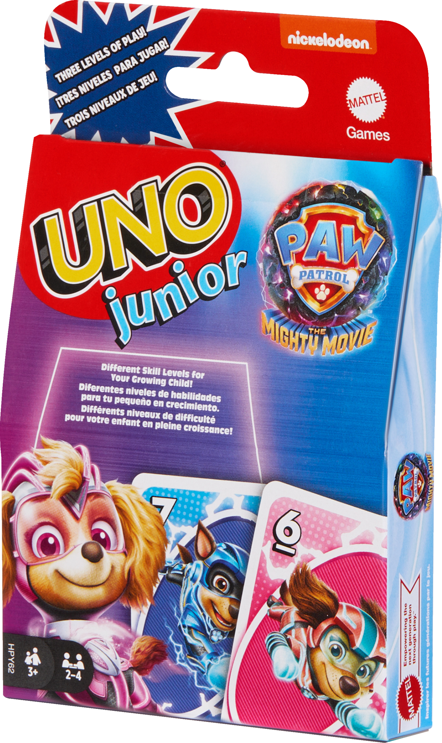 Ein tolles Geschenk für Fans von Paw Patrol und Liebhabern von Kartenspielen ab 3 Jahren. Die Spieler des UNO Junior-Spiels kennen und lieben die Bilder, die von den Charakteren aus dem Film Paw Patrol: The Mighty Movie inspiriert sind. Der Spielablauf entspricht dem klassischen Kartenspiel, bei dem die Spieler die passenden Farben und Zahlen finden müssen, um alle Karten loszuwerden. Dank der drei Schwierigkeitsstufen können sich jüngere Spieler langsam an das Spiel gewöhnen. Ganz wichtig: Wer nur noch eine Karte auf der Hand hat, muss UNO! rufen.
