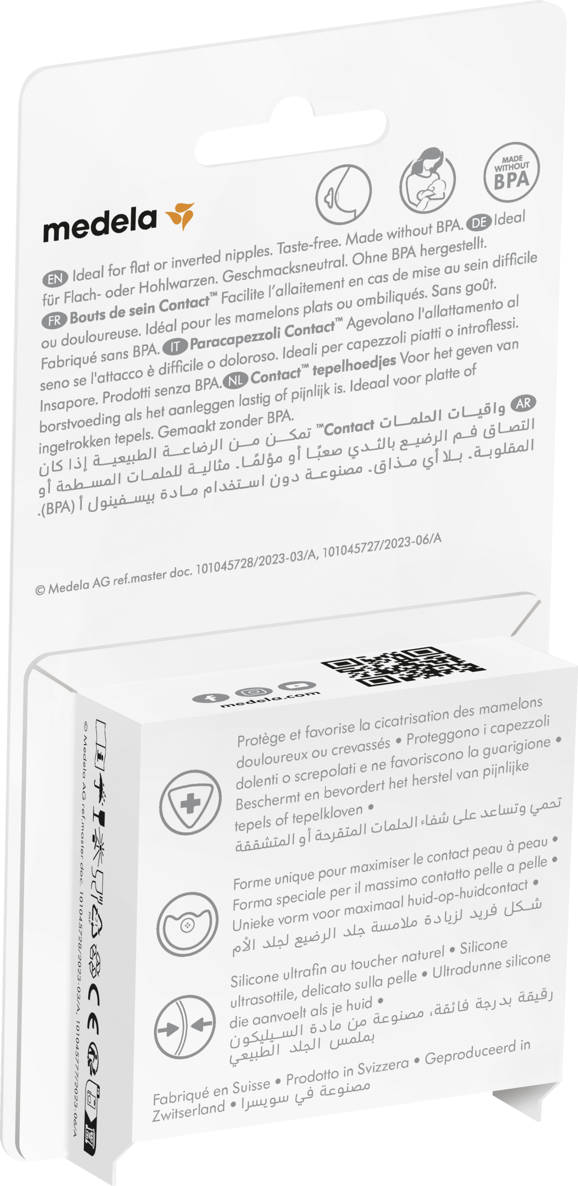 Contact Brusthütchen von Medela helfen Ihnen bei Stillschwierigkeiten aufgrund von Flach- oder Hohlwarzen, in dem sie Ihrem Baby das Andocken an die Brust erleichtern. Außerdem schützen sie empfindliche und wunde Brustwarzen beim Stillen. Die weichen Brusthütchen besitzen eine Aussparung, die Ihrem Baby Hautkontakt ermöglicht und es Ihren vertrauten Duft wahrnehmen lässt. Sie sind geschmacksneutral, bestehen aus transparentem, äußerst flexiblem Silikon und werden in einer praktischen Aufbewahrungsbox geliefert.