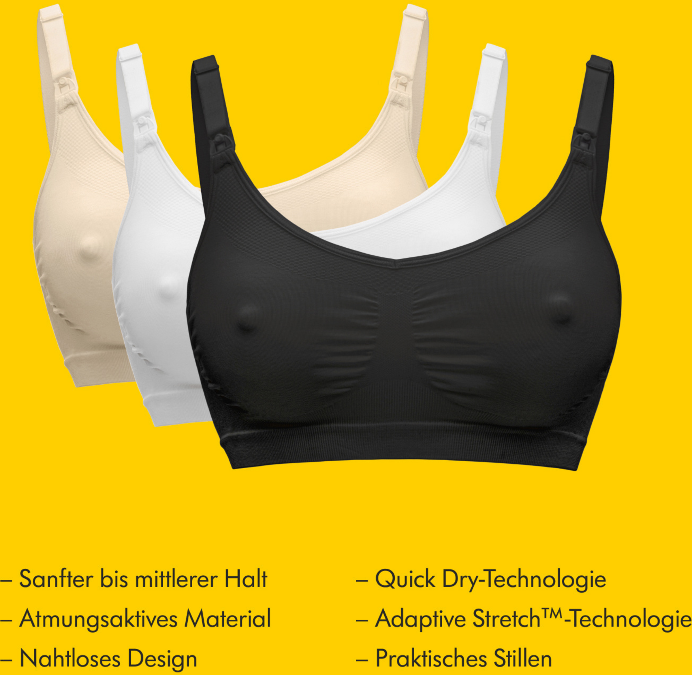 Der neue Keep Cool™ BH verwendet einzigartige integrierte Atmungszonen und eine neue Schnelltrocknungstechnologie, um die Körpertemperatur auszugleichen und maximalen Komfort zu bieten.