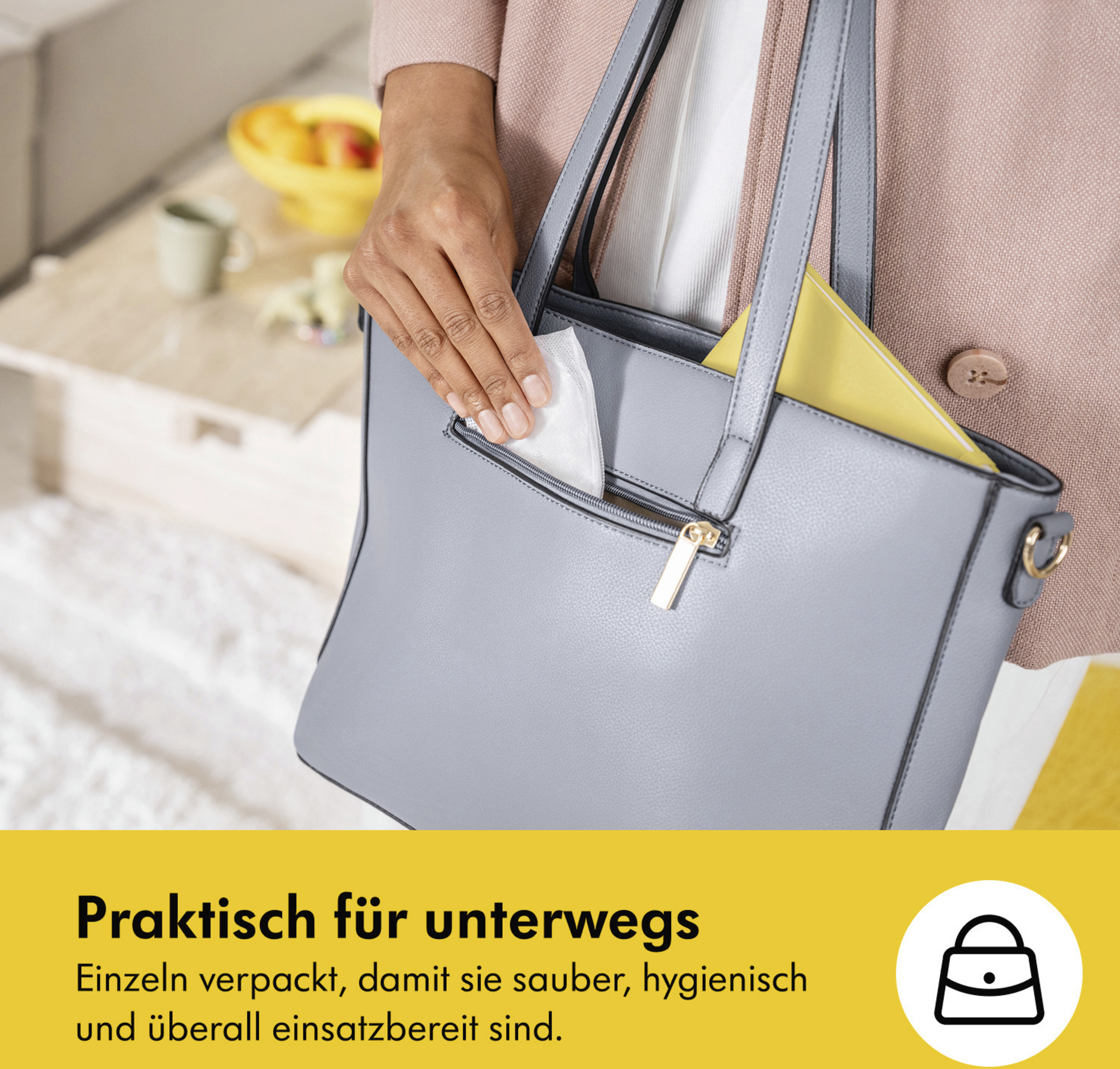 - einzeln verpackt: hygienisch, tragbar und mit 25 % weniger Kunststoff hergestellt