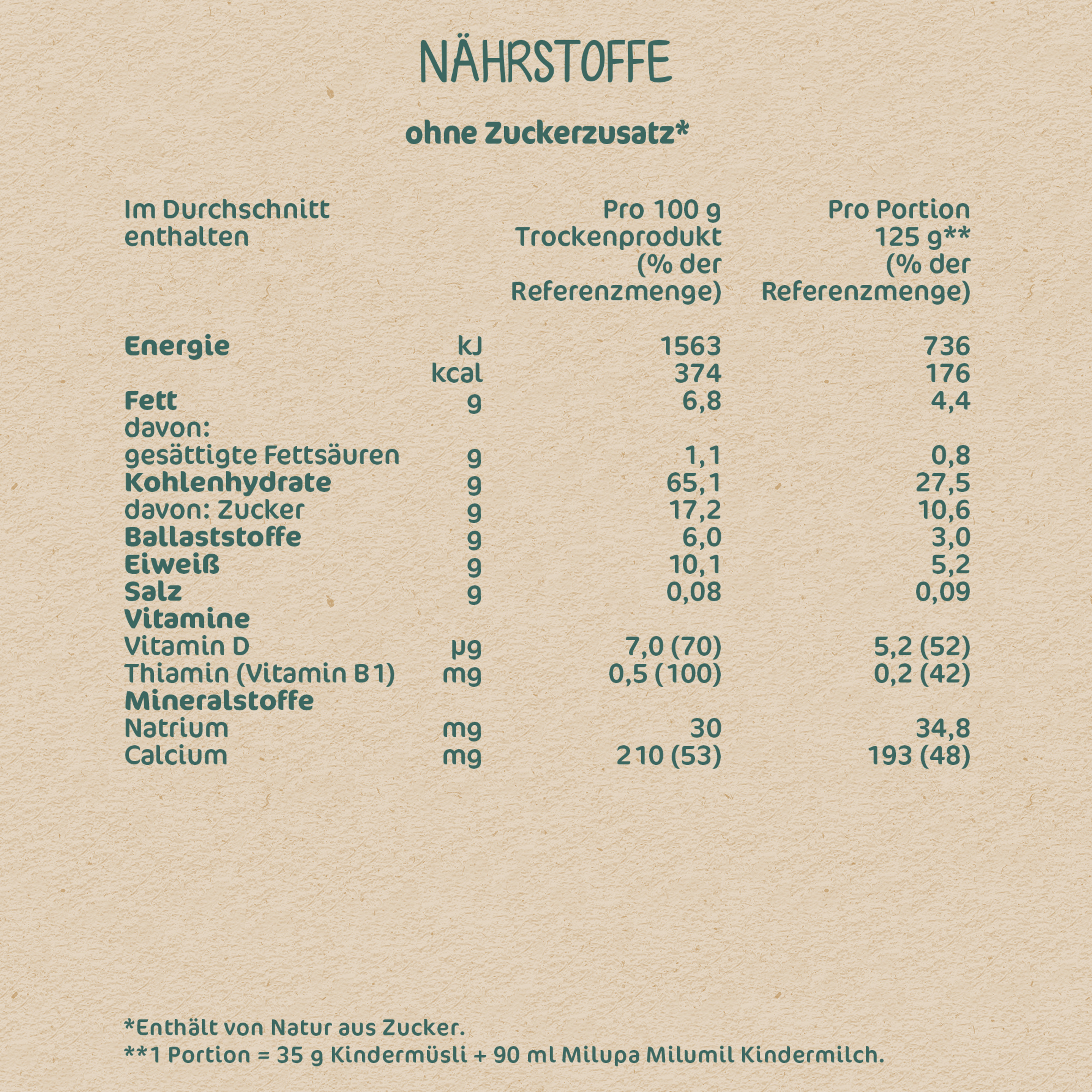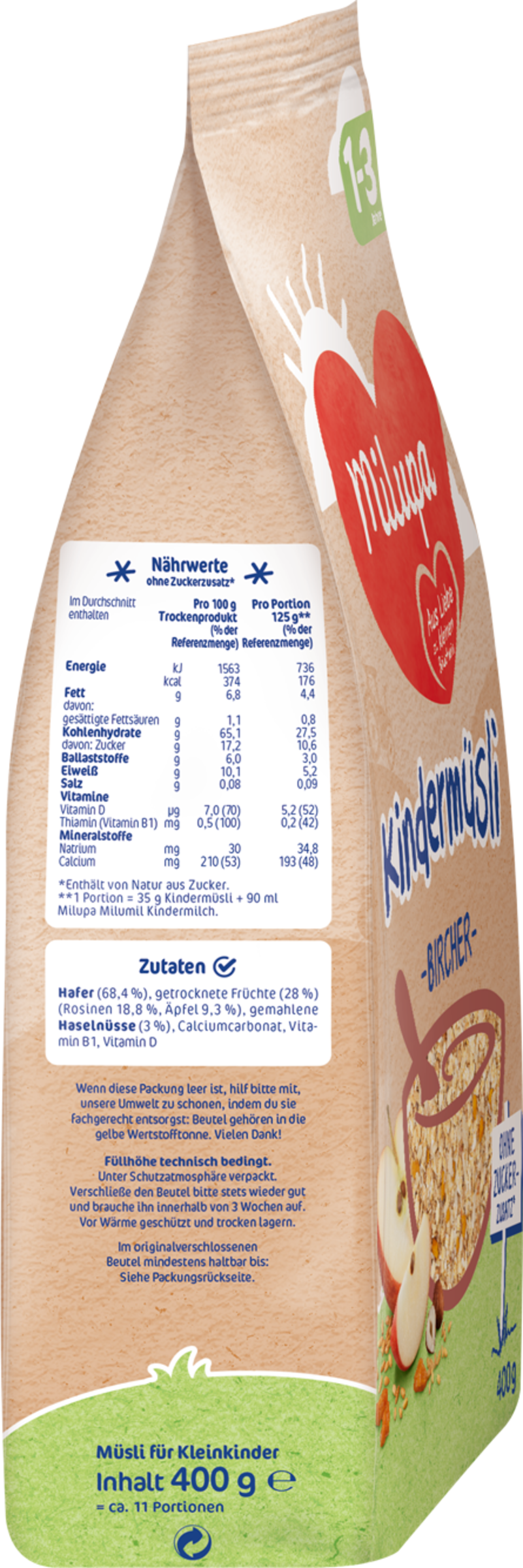 | Pro Portion (35g Müsli + 90ml Milupa milumil Kindermilch) | ||