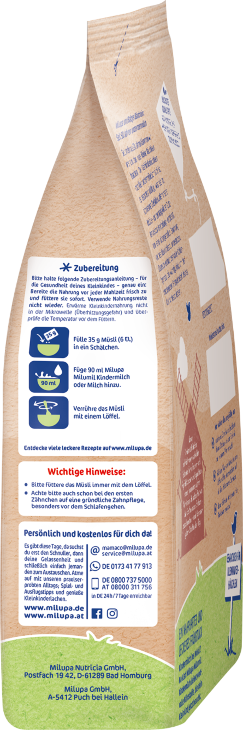 Bitte füttern Sie das Müsli immer mit dem Löffel. Bitte achten Sie auch schon bei den ersten Zähnchen auf eine gründliche Zahnpflege, besonders vor dem Schlafengehen.