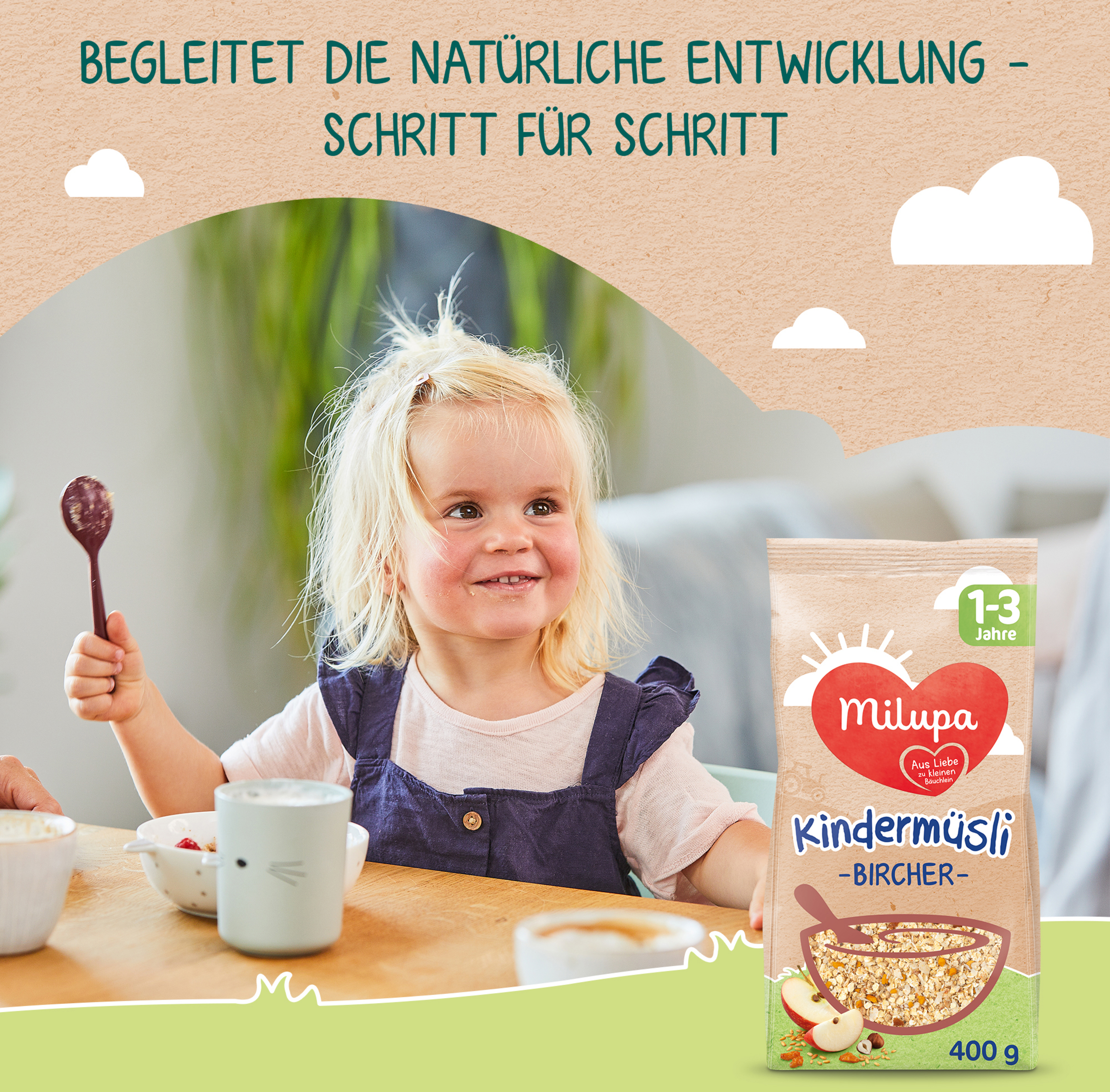 Ihr kleiner Sonnenschein ist jetzt schon ein Kleinkind. Um für seine Entdeckungstouren über den Tag gewappnet zu sein, ist gerade das Frühstück als erste Mahlzeit besonders wichtig. Milupa Kindermüsli wurde auf die Ernährungsbedürfnisse von Kleinkindern altersgerecht abgestimmt. Als vollwertiges Frühstück liefert es gesunde Energie und wichtige Nährstoffe für einen guten Start in einen aktiven Tag für das Kleinkindalter.