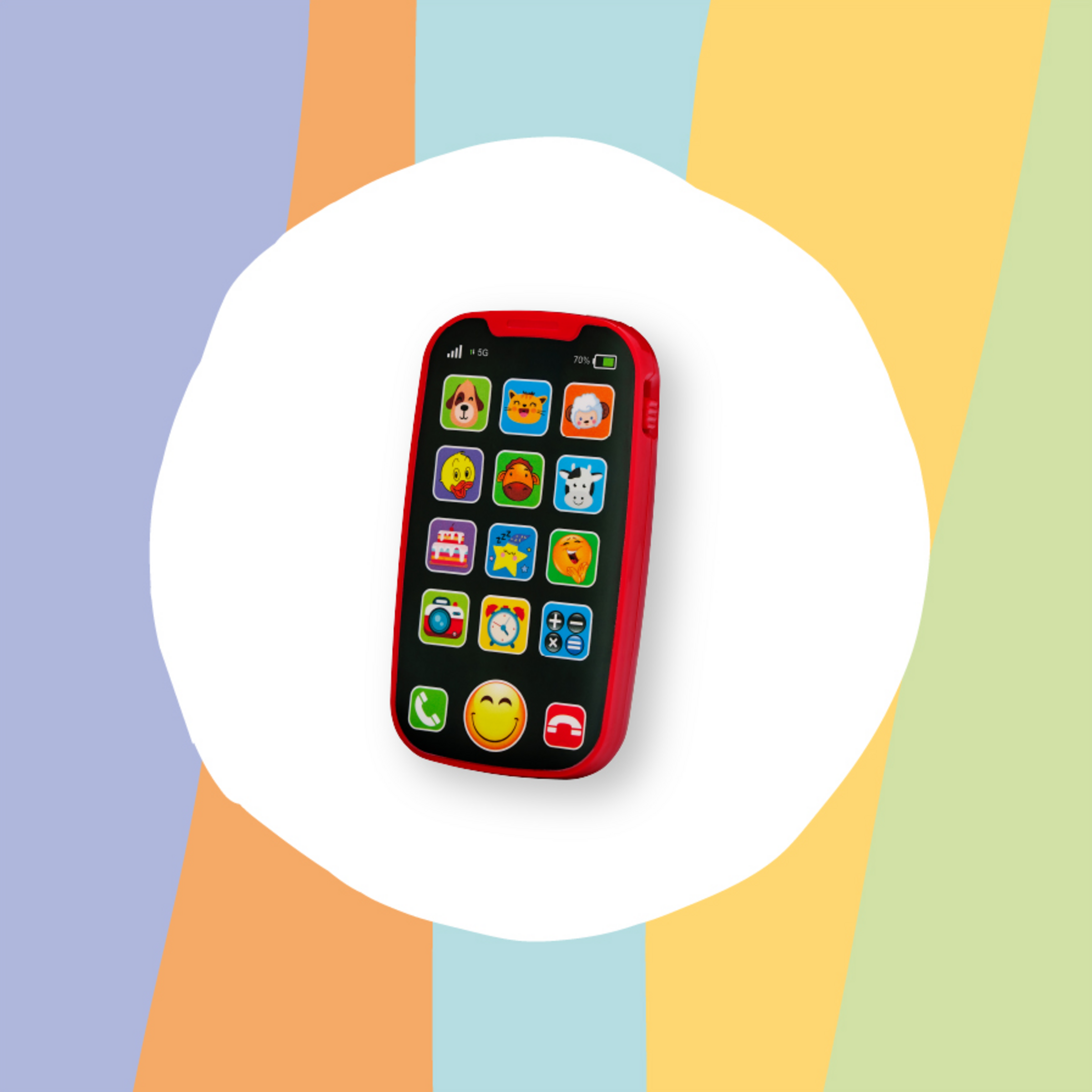 Neben der Sprachentwicklung unterstützt das Spielzeug-Smartphone auch die Entwicklung des Sehvermögens durch seine hellen Farben und großen Tasten sowie das Hörvermögen durch die verschiedenen Klänge und Melodien.