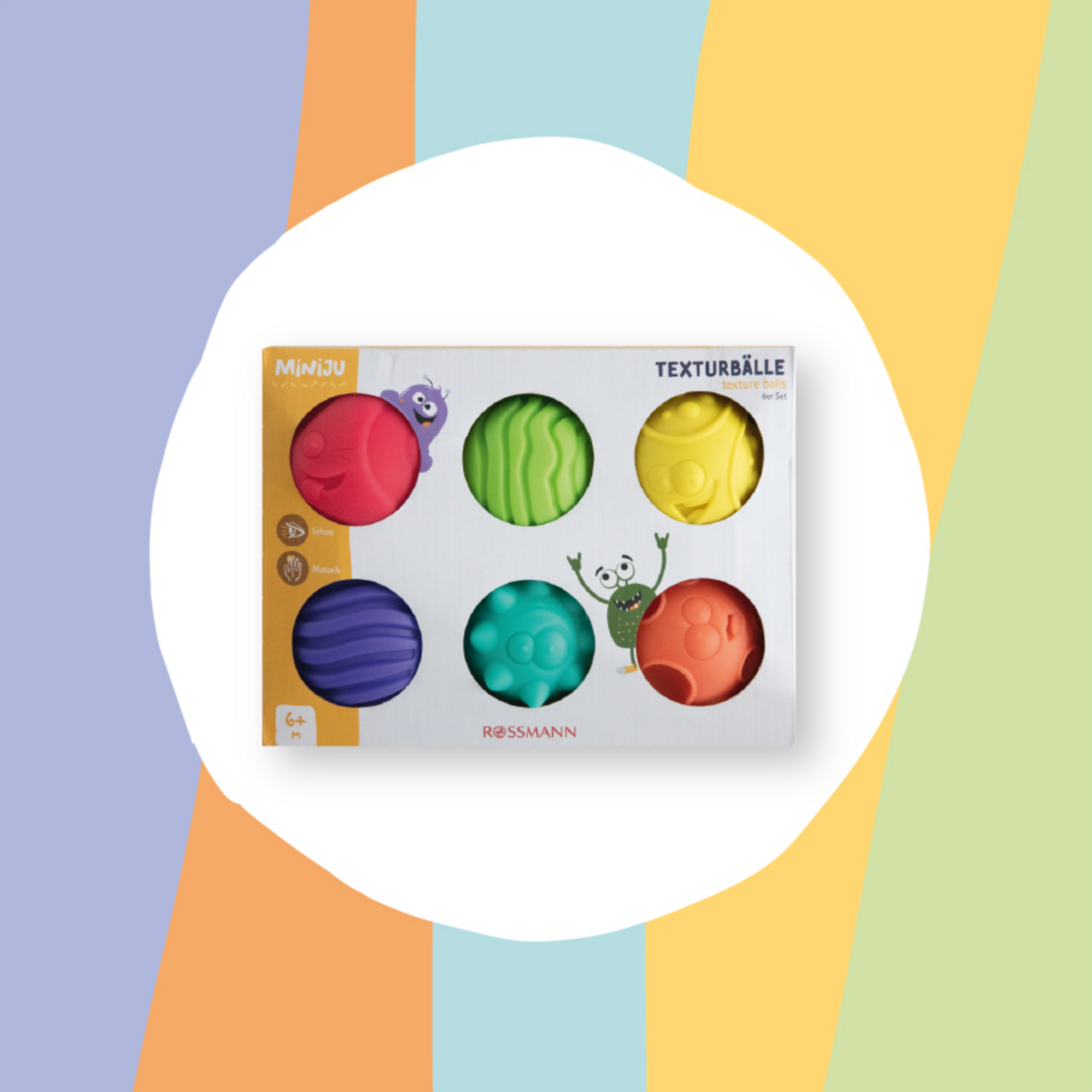 Die Miniju Texturbälle sind ein farbenfrohes und anregendes Spielzeug für Kinder ab 6 Monaten. Dieses 6er Set aus Silikonbällen mit unterschiedlicher Haptik lädt zum Tasten, Greifen und Entdecken ein. Jeder Ball bietet eine einzigartige Oberflächenstruktur, die nicht nur die sensorische Wahrnehmung fördert, sondern auch Spaß am Fühlen und Spielen weckt. Die leuchtenden Farben der Texturbälle regen das Sehvermögen an und helfen Kindern, Farben zu unterscheiden. Gefertigt aus hochwertigem Silikon, sind die Bälle sicher für kleine Hände und widerstandsfähig genug für ausgiebiges Spielen.