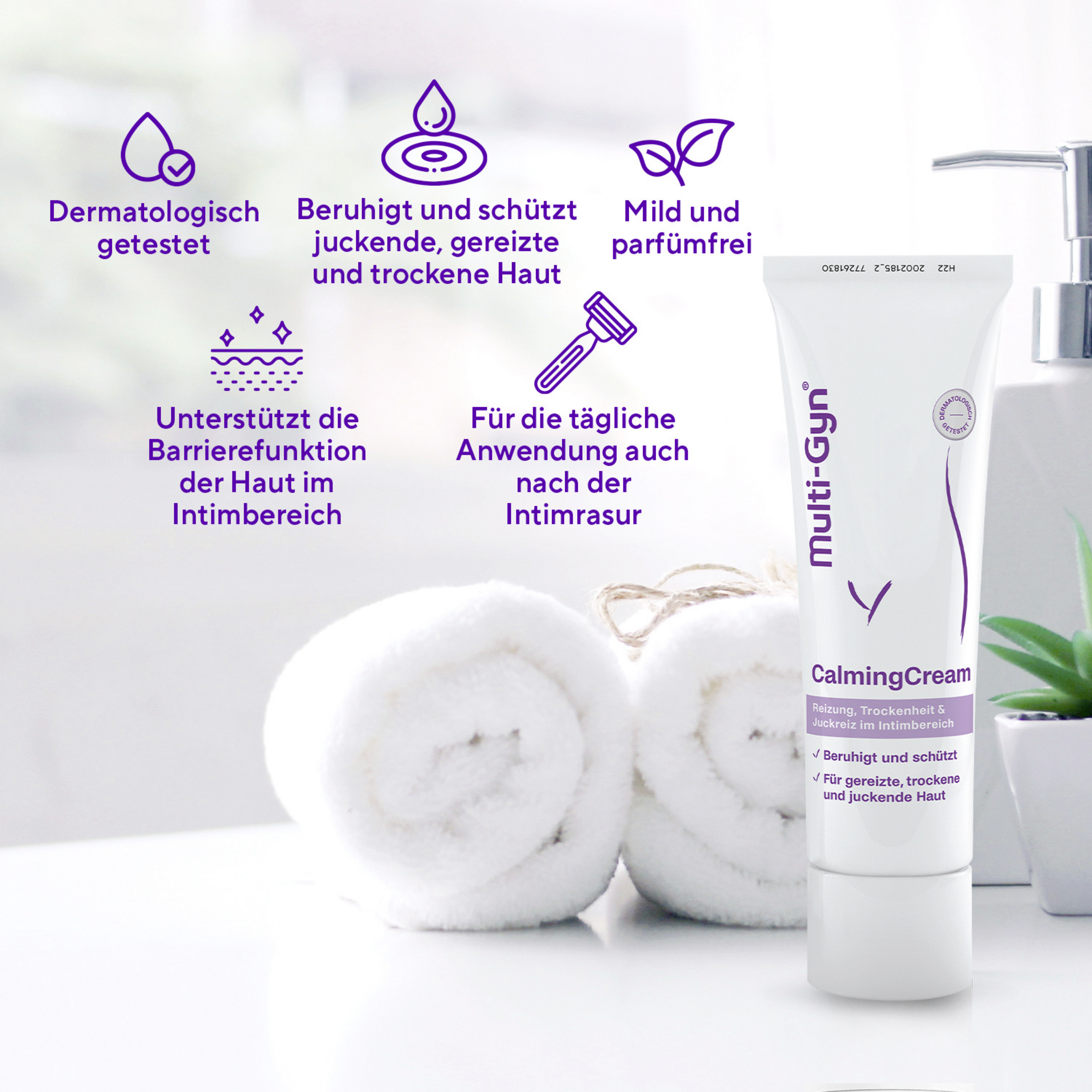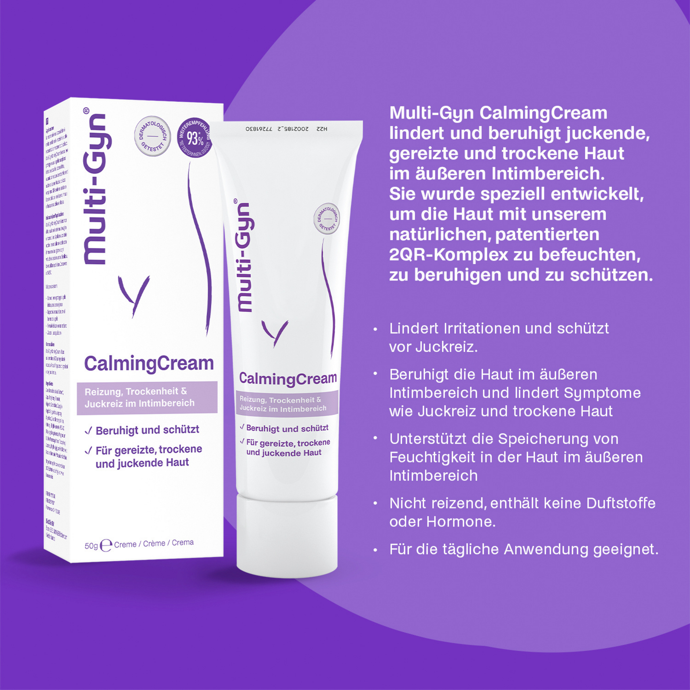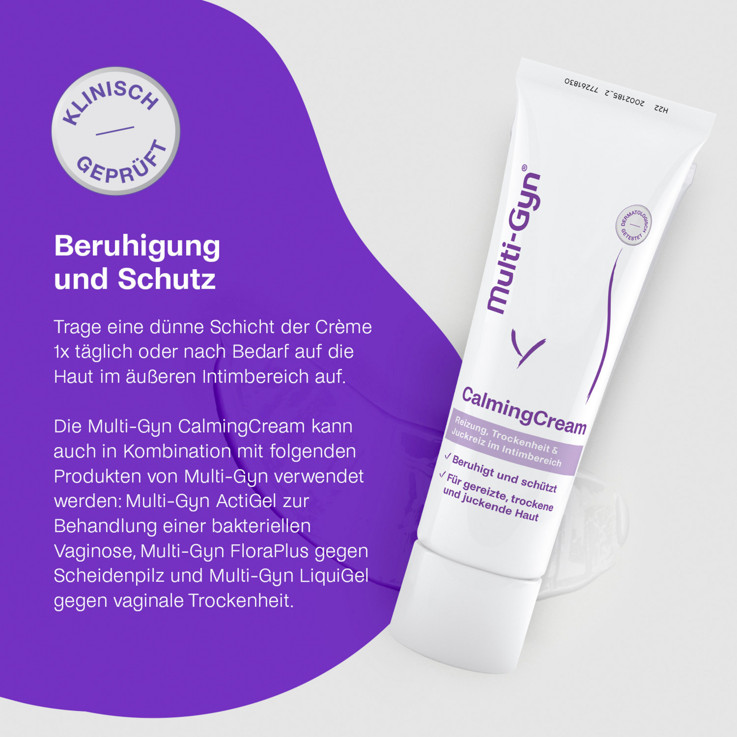 Die Multi-Gyn® CalmingCream beruhigt und pflegt die Haut im äußeren Intimbereich.
