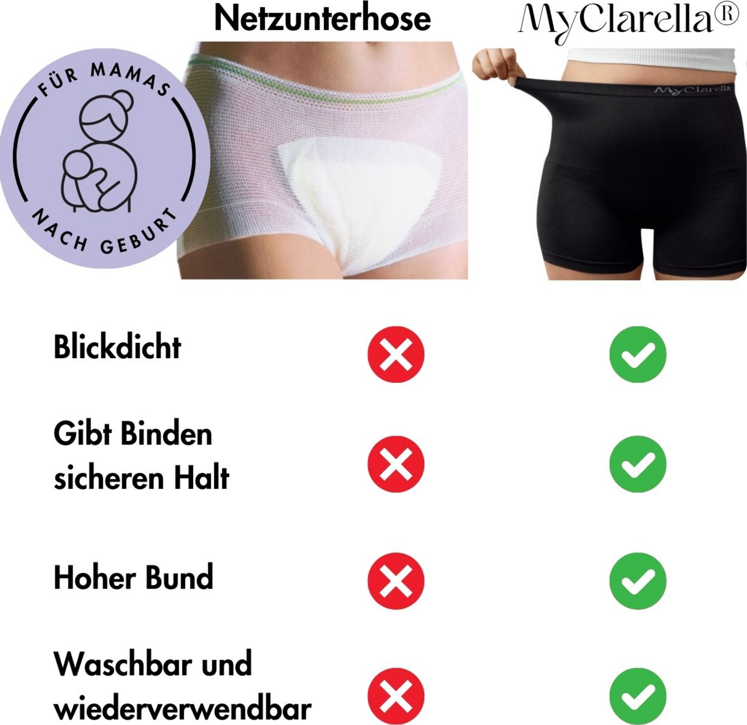 Wusstest du eigentlich, dass klassische Netzunterwäsche in Krankenhäusern und im Wochenbett heutzutage immer noch Standard ist? MyClarella ist der Meinung: "Du hast gerade einen Menschen geboren, also sollst du dich auch wie ein Mensch fühlen dürfen". Genau aus diesem Grund hat sich MyClarella mit der THE POSTPARTUM PANTY eine viel komfortablere und nachhaltigere Lösung einfallen lassen.