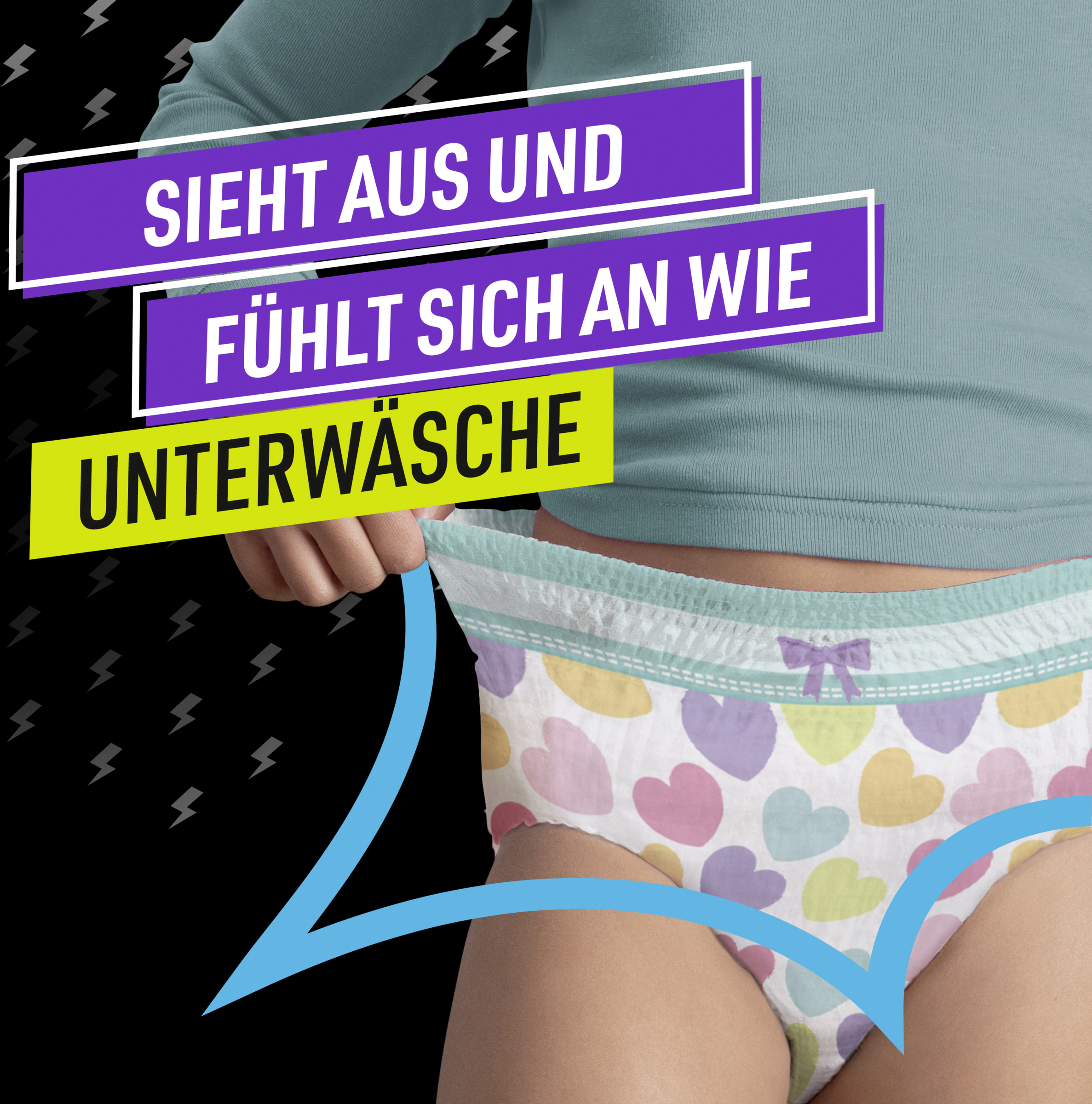 Entdecke Ninjamas absorbierende Nachthöschen! Unterstützt beim Bettnässen und sorgt dank des Auslaufschutzes für die ganze Nacht, dass dein Kind selbstbewusst aufwachen kann.
