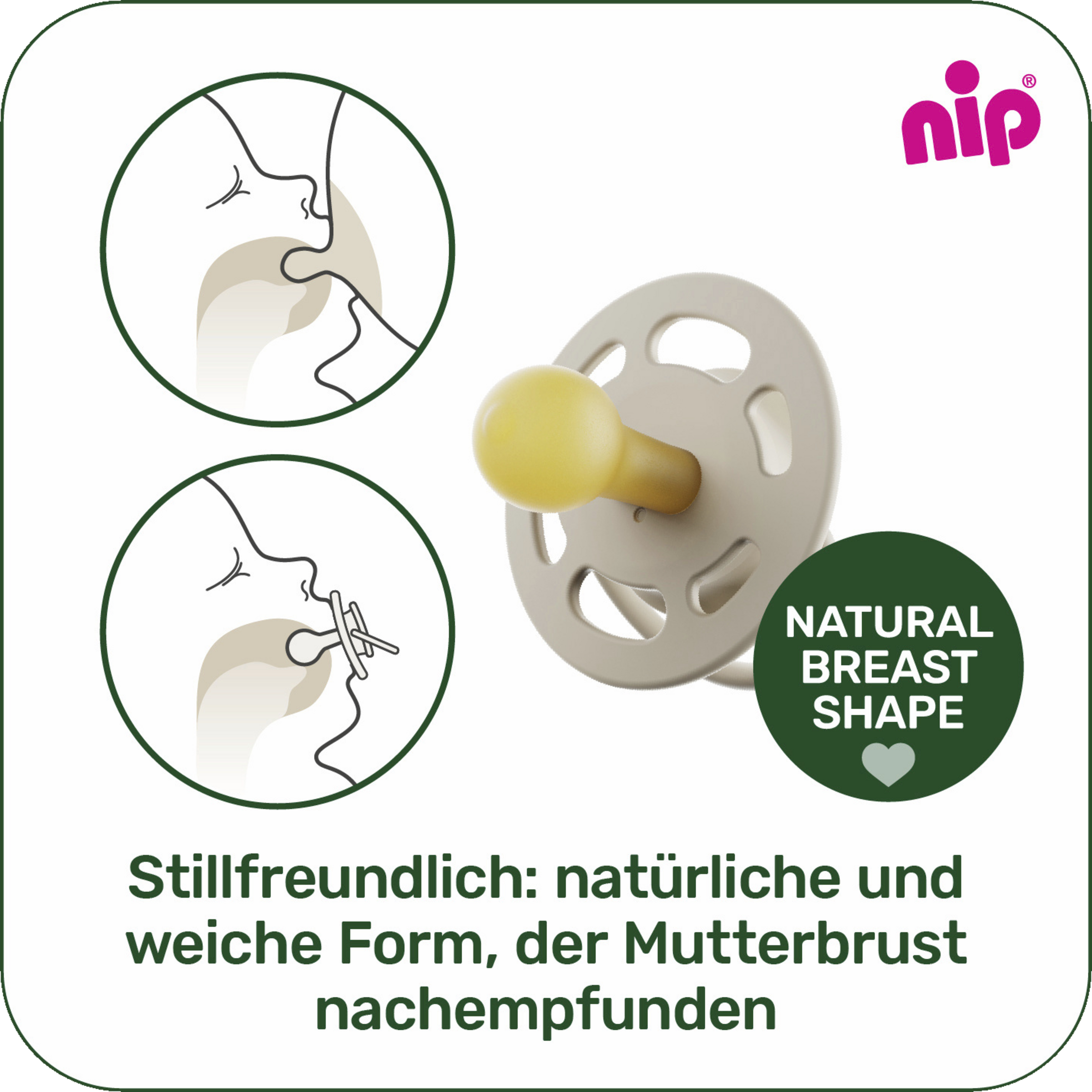 Der beliebte Cherry® Schnuller ist jetzt noch zahnfreundlicher mit flachem Saugerschaft! Er besteht aus über 98% nachwachsenden Rohstoffen*. Der Sauger besteht aus FSC®- zertifiziertem Naturkautschuklatex. Der runde Sauger ist der Mutterbrust nachempfunden, extra weich und dadurch besonders ideal in Kombination mit dem Stillen.