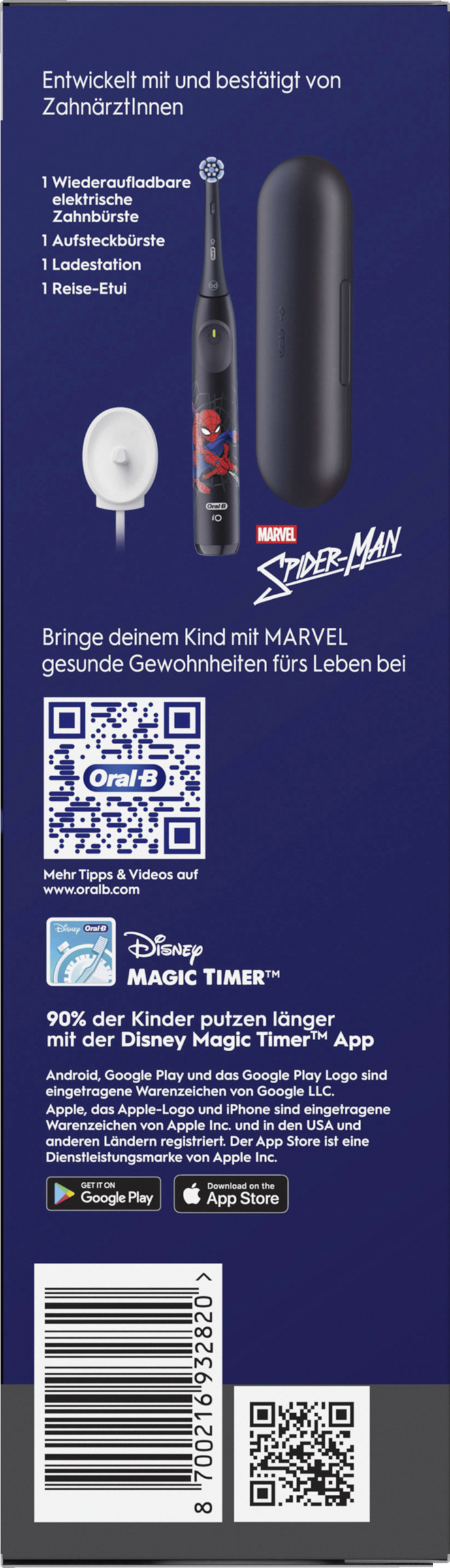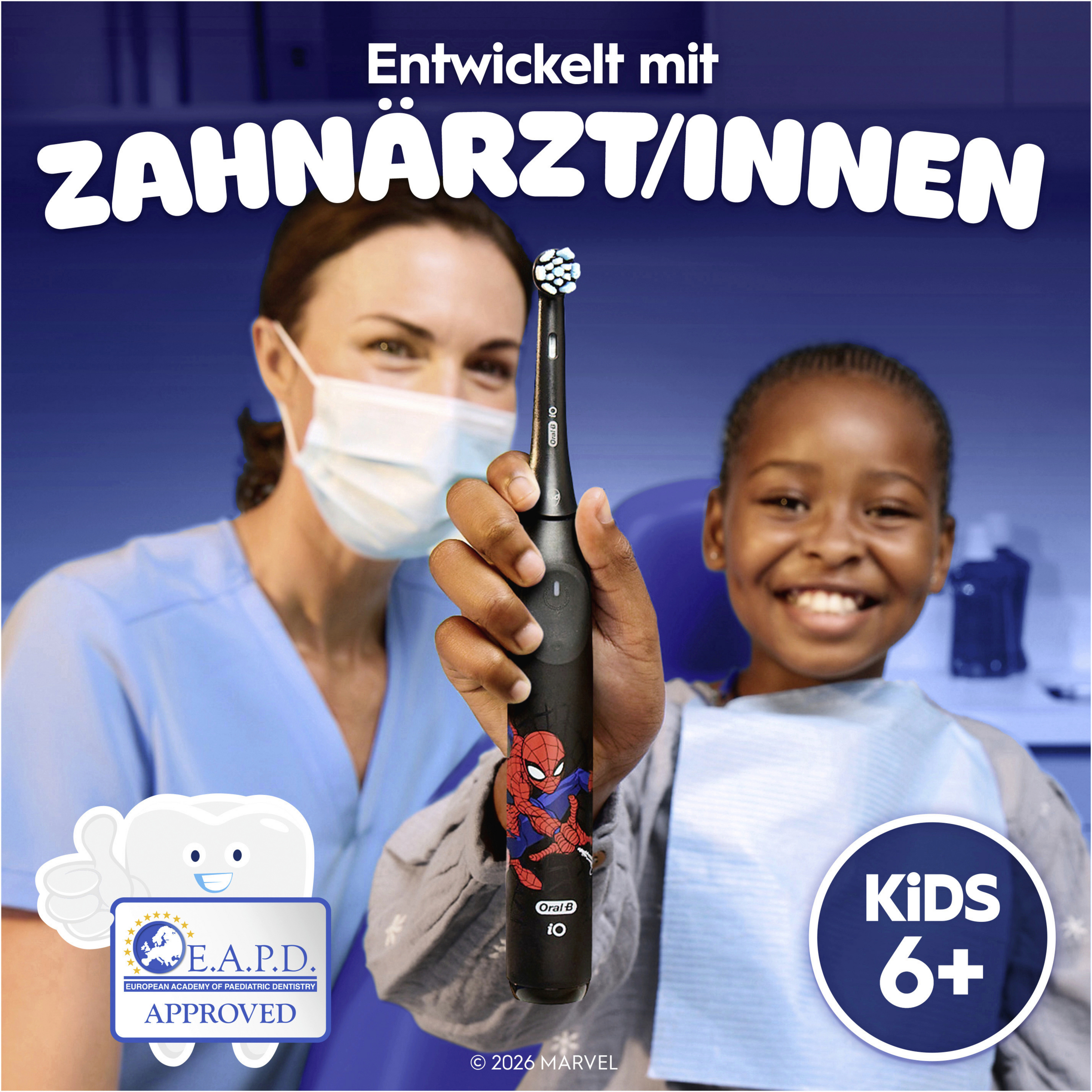Die Oral-B iO Kids elektrische Zahnbürste sorgt für eine sanfte, effektive Reinigung und wurde mit ZahnärztInnen für Kinder ab 6 Jahren entwickelt und bestätigt. Sie verfügt über 3 Putzmodi, inkl. einem einzigartigen, kinderfreundlichen Super Sensitiv Modus, um stark gegen Karies, aber sanft zum Zahnfleisch zu sein und dabei mehr Plaque zu entfernen als eine herkömmliche Handzahnbürste. Der 2-Minuten-Musik-Timer und der Zugang zur Disney Magic Timer App sorgen für mehr Spaß beim Zähneputzen und helfen Kindern, gesunde Gewohnheiten fürs Leben zu erlernen.