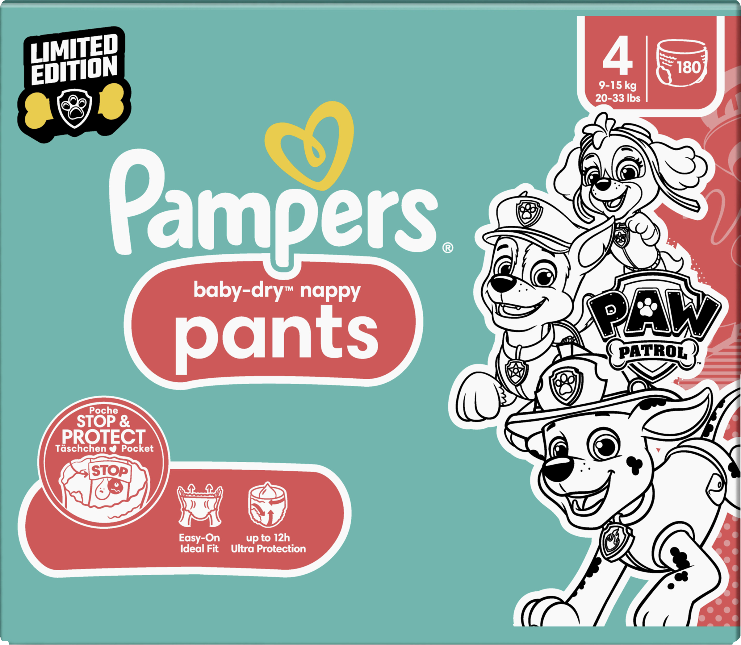 Pampers Baby-Dry Pants mit revolutionärem STOP & SCHUTZ TÄSCHCHEN und 360° Fit für bis zu 12 Stunden RundumAuslaufschutz. Sie verfügen außerdem über einen super saugkräftigen Kern, der Feuchtigkeit sofort aufnimmt, und Sicherheitsbündchen, die ein Auslaufen an den Beinen verhindern. Wenn dein Baby anfängt, aktiver zu werden und sich beim Windelwechseln dreht, ist es Zeit für Pampers Baby-Dry Pants, die dank des rundum dehnbaren Bauchbündchen ganz einfach zu wechseln sind. Mit ihren rundum dehnbaren Bauchbündchen ziehst du sie deinem Baby mit nur einem Zug an. Genau wie für dich steht die Sicherheit deines Babys für Pampers an erster Stelle: Pampers Baby-Dry Pants sind dermatologisch getestet und enthalten 0 % EU-Parfümallergene (gemäß EUKosmetikverordnung Nr. 1223/2009). Sie wurden von Dermatologen der Skin Health Alliance bestätigt und gemäß Standard 100 von Oekotex getestet und zertifiziert.