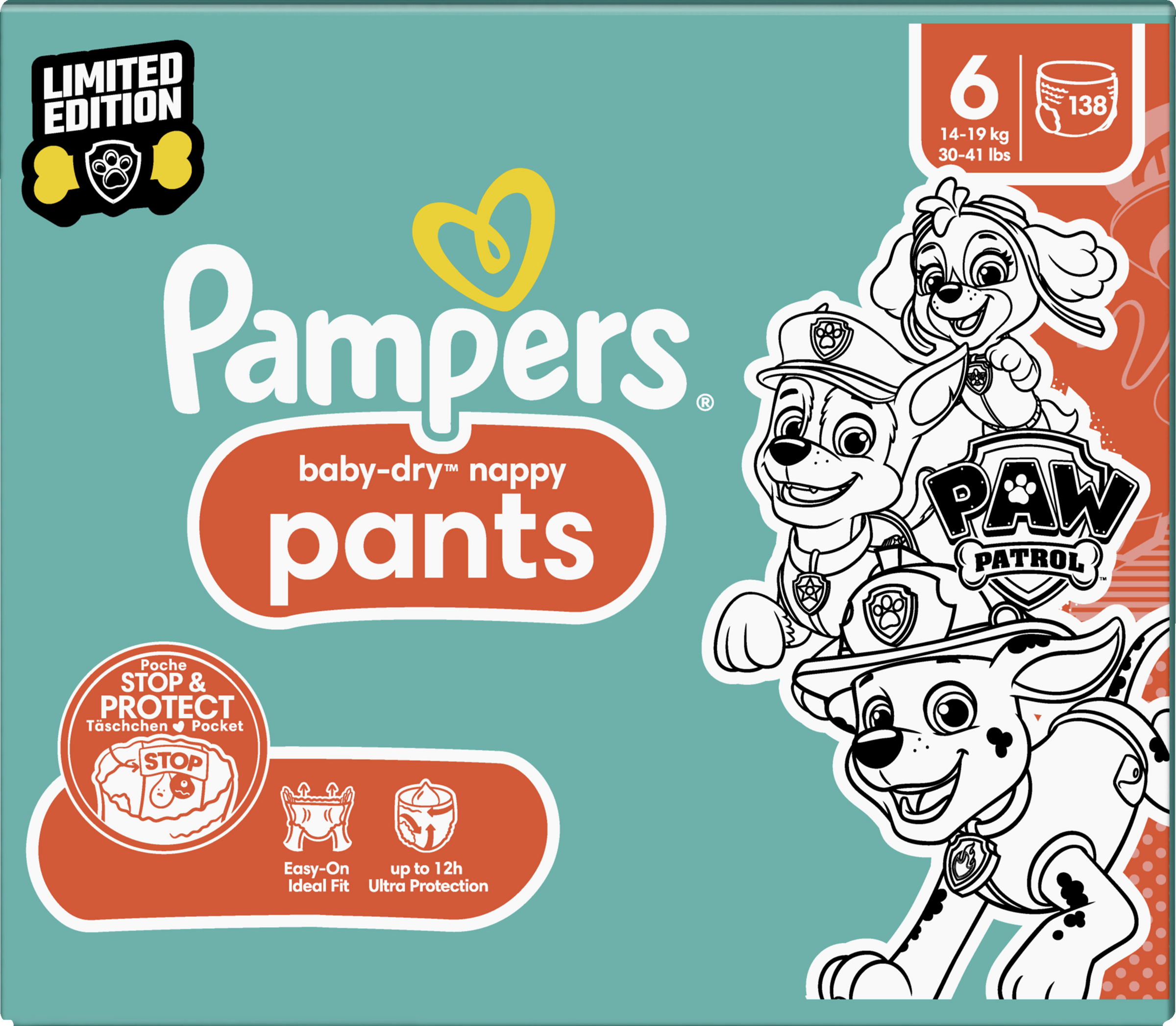 Pampers Baby Dry Pants Paw Patrol Gr. 6 Extra Large (14-19 kg) Monatsbox 138 Stück