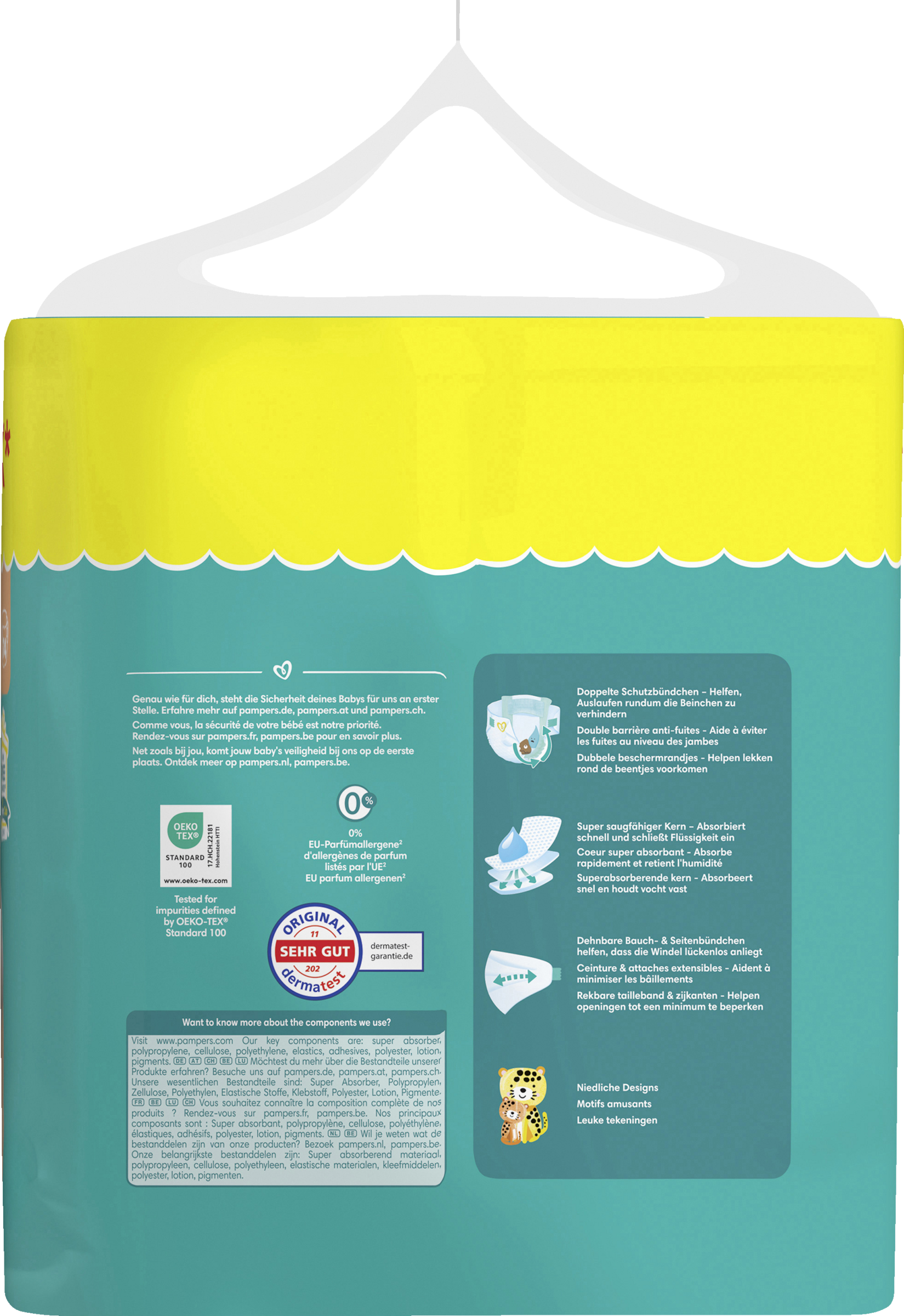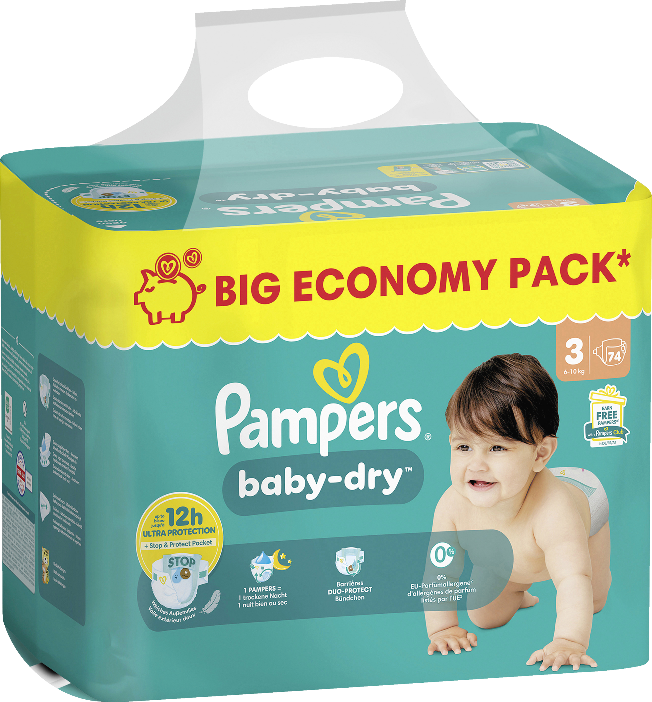 Entdecke Pampers Baby-Dry Windeln, die speziell entwickelt wurden, um sich den Bewegungen deines Babys anzupassen und bis zu 100% auslaufsichere und komfortable Nächte zu bieten. Mit ihrer verbesserten Saugfähigkeit schließen Pampers Baby-Dry Windeln Flüssigkeit schnell ein und halten dein Baby trocken. Zusätzlich hilft das Stop & Schutz Täschchen Auslaufen am Rücken zu verhindern. Hergestellt aus hochwertigen Materialien, hüllen unsere Baby-Dry Windeln die Haut deines Babys in Weichheit. Genau wie für dich steht die Sicherheit deines Babys auch für Pampers an erster Stelle: Pampers Baby-Dry Windeln sind dermatologisch getestet, enthalten 0% EU-Parfümallergene (gemäß EU Kosmetikverordnung (EG) 1223/2009) und sind gemäß STANDARD 100 von OEKO-TEX getestet und zertifiziert. So kannst du dich von Auslaufen verabschieden und auf erholsame Nächte freuen. Möchtest du mehr über die Bestandteile unserer Produkte erfahren? Besuche uns auf pampers.de, pampers.at und pampers.ch.