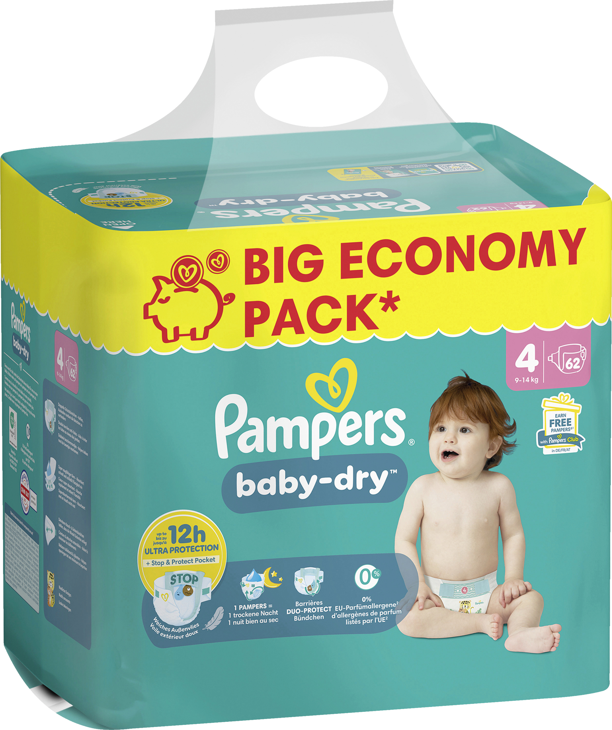 Pampers Baby Dry Windeln Gr. 4 Maxi (9-14 kg) Big Pack 62 Stück