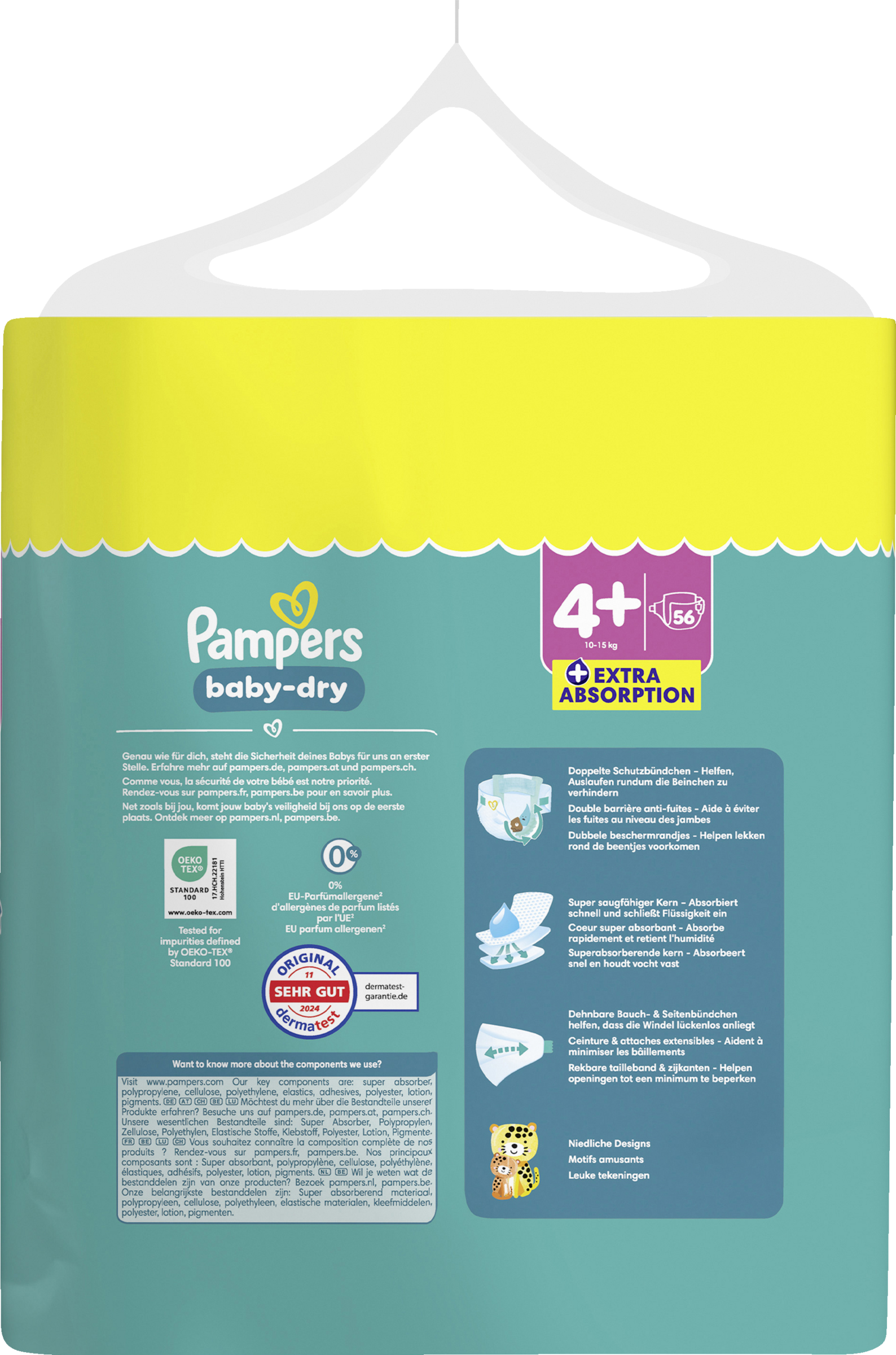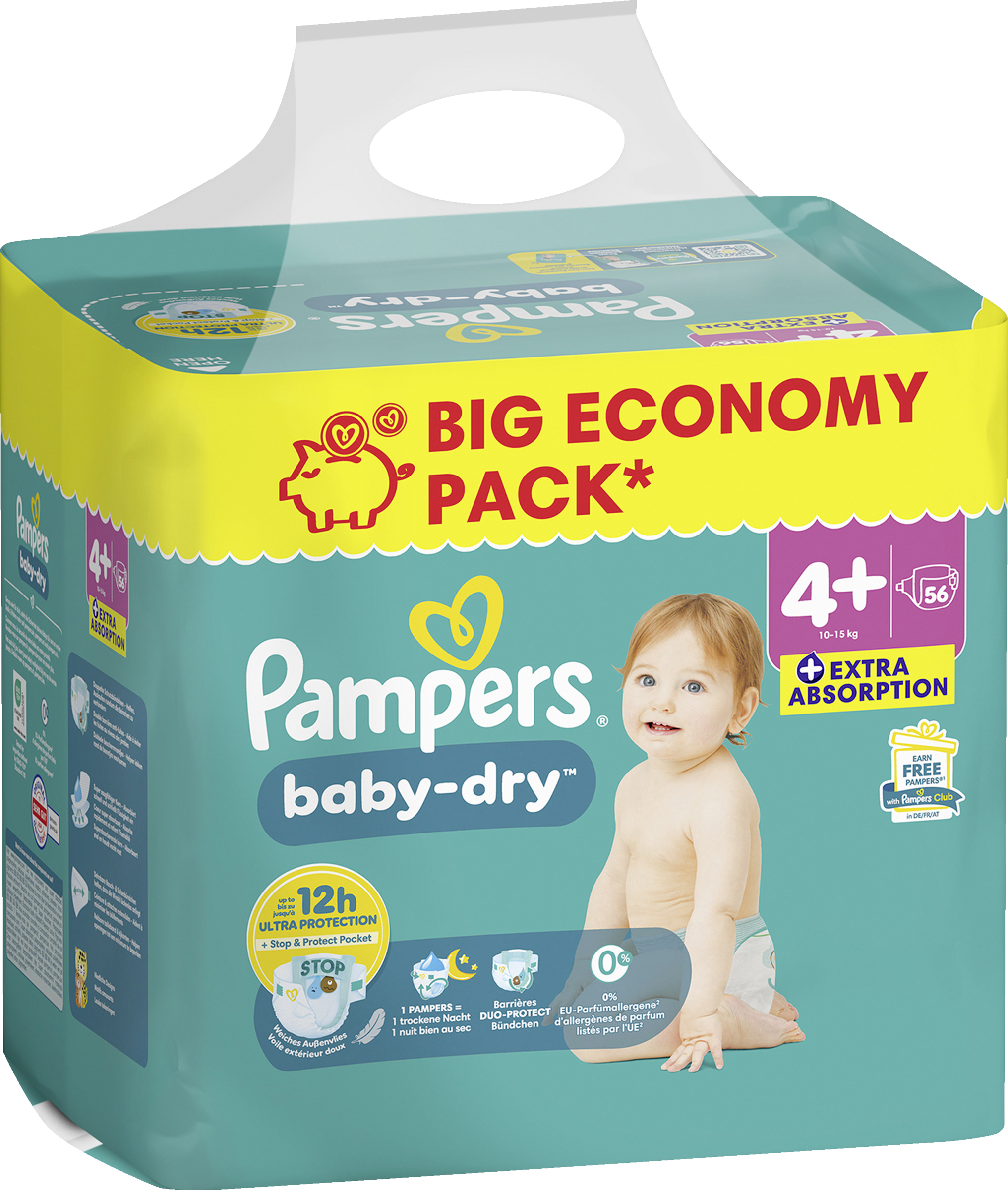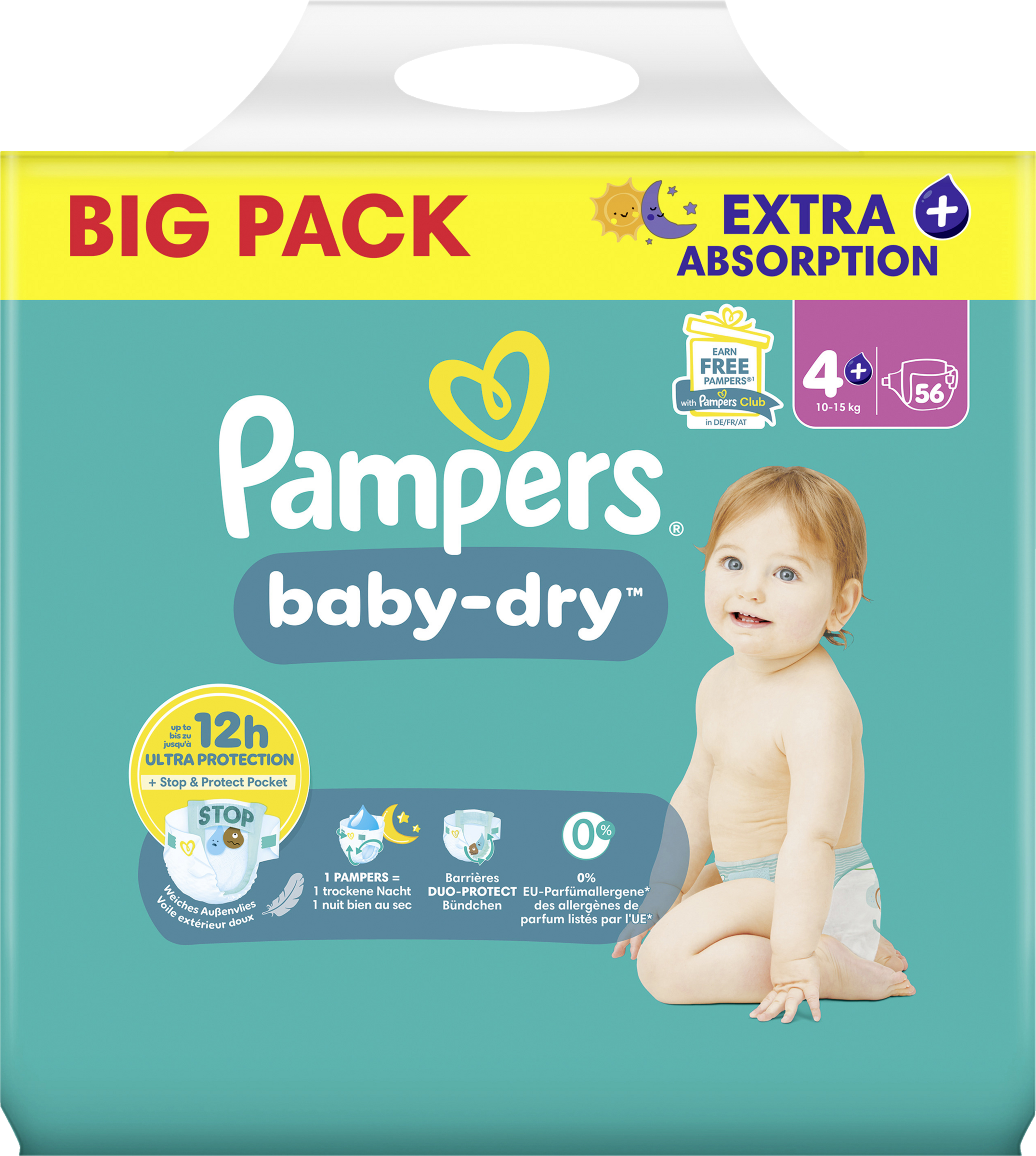 Entdecke Pampers Baby-Dry Windeln, die speziell entwickelt wurden, um sich den Bewegungen deines Babys anzupassen und bis zu 100% auslaufsichere und komfortable Nächte zu bieten. Mit ihrer verbesserten Saugfähigkeit schließen Pampers Baby-Dry Windeln Flüssigkeit schnell ein und halten dein Baby trocken. Zusätzlich hilft das Stop & Schutz Täschchen Auslaufen am Rücken zu verhindern. Hergestellt aus hochwertigen Materialien, hüllen unsere Baby-Dry Windeln die Haut deines Babys in Weichheit. Genau wie für dich steht die Sicherheit deines Babys auch für Pampers an erster Stelle: Pampers Baby-Dry Windeln sind dermatologisch getestet, enthalten 0% EU-Parfümallergene (gemäß EU Kosmetikverordnung (EG) 1223/2009) und sind gemäß STANDARD 100 von OEKO-TEX getestet und zertifiziert. So kannst du dich von Auslaufen verabschieden und auf erholsame Nächte freuen. Möchtest du mehr über die Bestandteile unserer Produkte erfahren? Besuche uns auf pampers.de, pampers.at und pampers.ch.