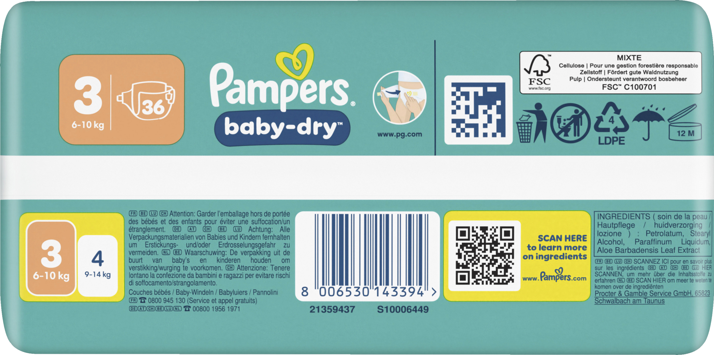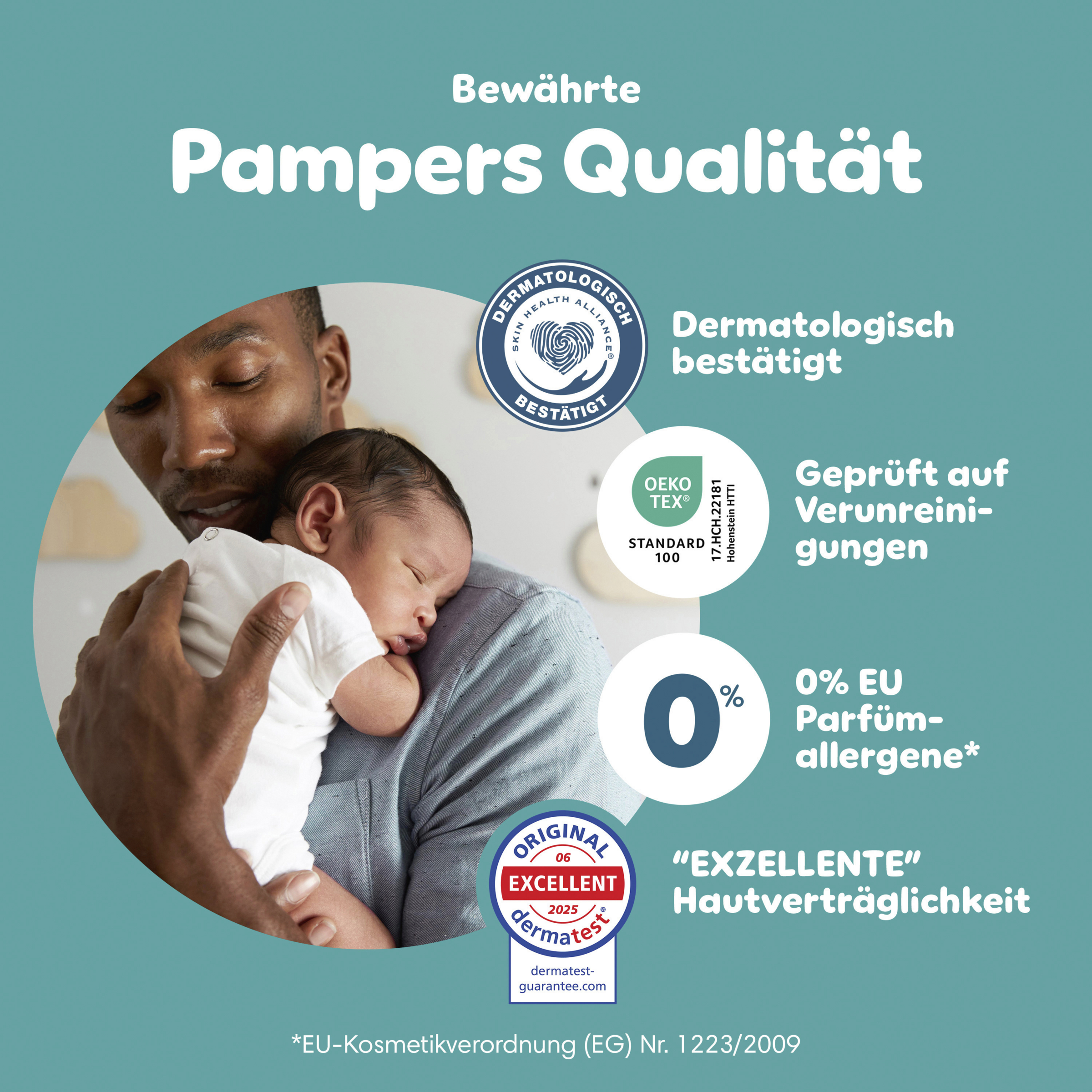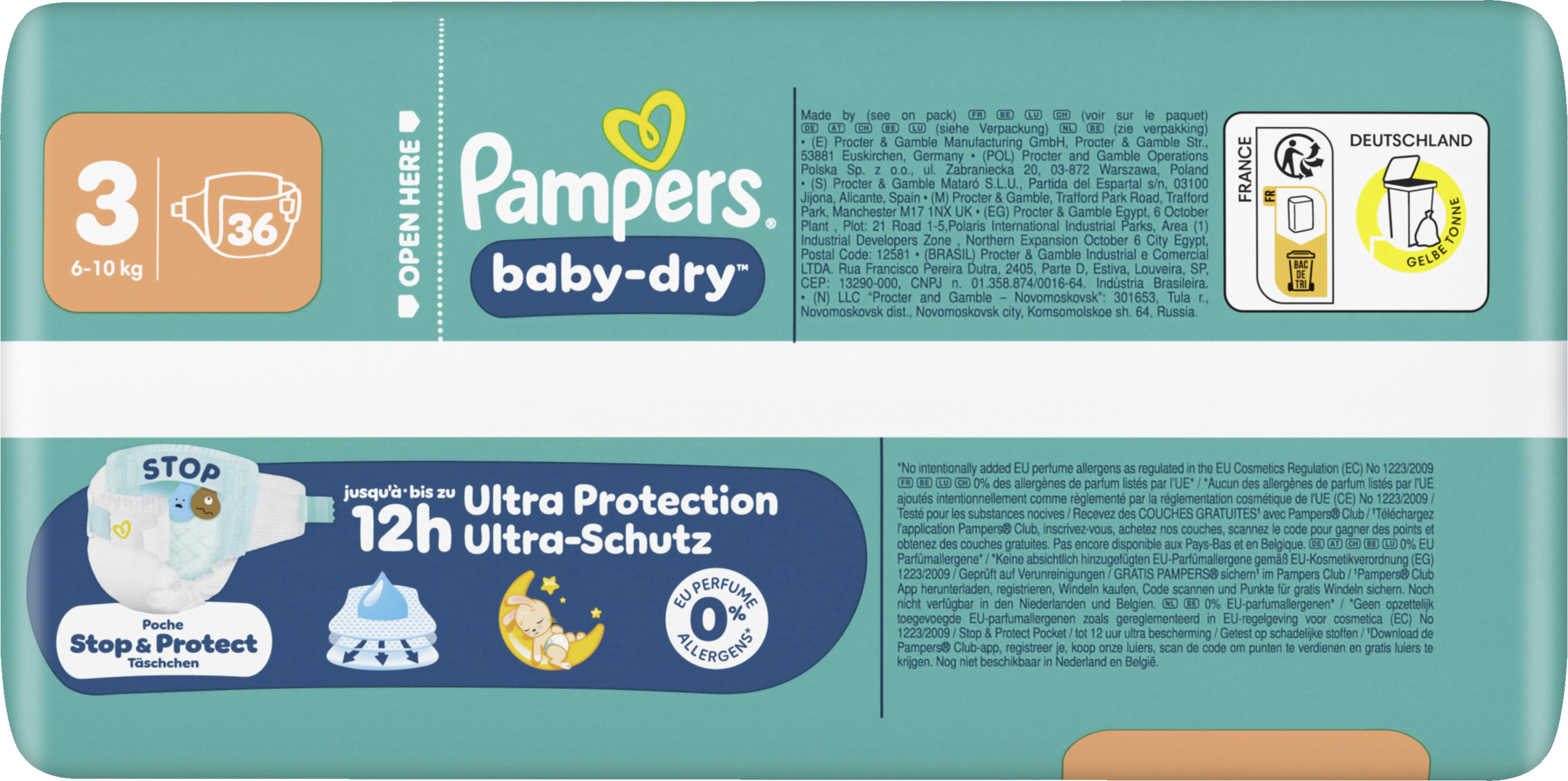 Halte dein Baby die ganze Nacht trocken und geschützt mit Pampers Baby-Dry Windeln. Entwickelt mit unserem einzigartigen schnell absorbierenden Kern wird Flüssigkeit kontinuierlich aufgenommen und sorgt für bis zu 100% Auslaufschutz & Komfort die ganze Nacht. Das Stop & Schutz Täschchen hilft, Auslaufen am Rücken zu verhindern, während das weiche ComfortTouch Außenvlies dein Baby in Weichheit hüllt. Mit doppelten Beinbündchen für zusätzlichen Auslaufschutz und Urin-Indikator, der dir anzeigt, wann es Zeit für eine neue Windel sein könnte, bietet Pampers Baby-Dry bewährten Schutz. Dermatologisch getestet, 0% EU-Parfümallergene (keine absichtlich hinzugefügten EU-Parfümallergene gemäß der EU-Kosmetikverordnung (EG) Nr. 1223/2009) und OEKO-TEX STANDARD 100 zertifiziert, sind sie sicher für die Haut deines Babys.