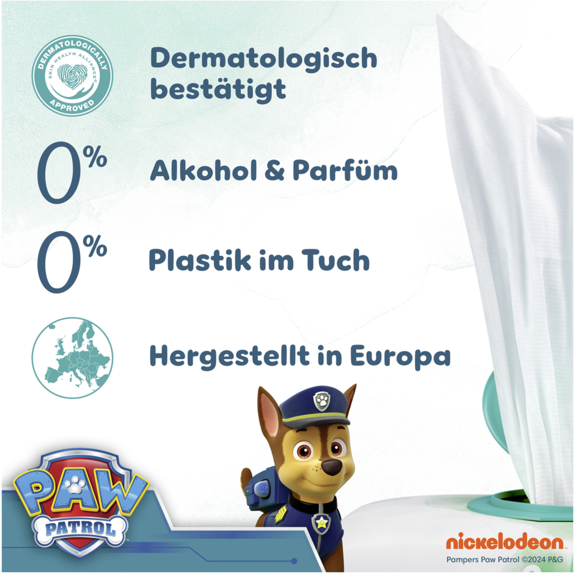 Sanfte Pflege und Schutz für die empfindliche Haut deines Babys - leichte Lotion mit 99% Wasser. Pampers Harmonie Aqua Feuchttücher sind sanfter als nur Baumwolle und Wasser. Die einzigartige Formel hilft, den natürlichen pH-Wert der Haut wiederherzustellen und vor Irritationen zu schützen. Hergestellt ohne Alkohol oder Parfüm. Die Formel ist dermatologisch getestet. Sie wurde von Dermatologen der Skin Health Alliance bestätigt und gemäß STANDARD 100 von OEKO-TEX zertifiziert.