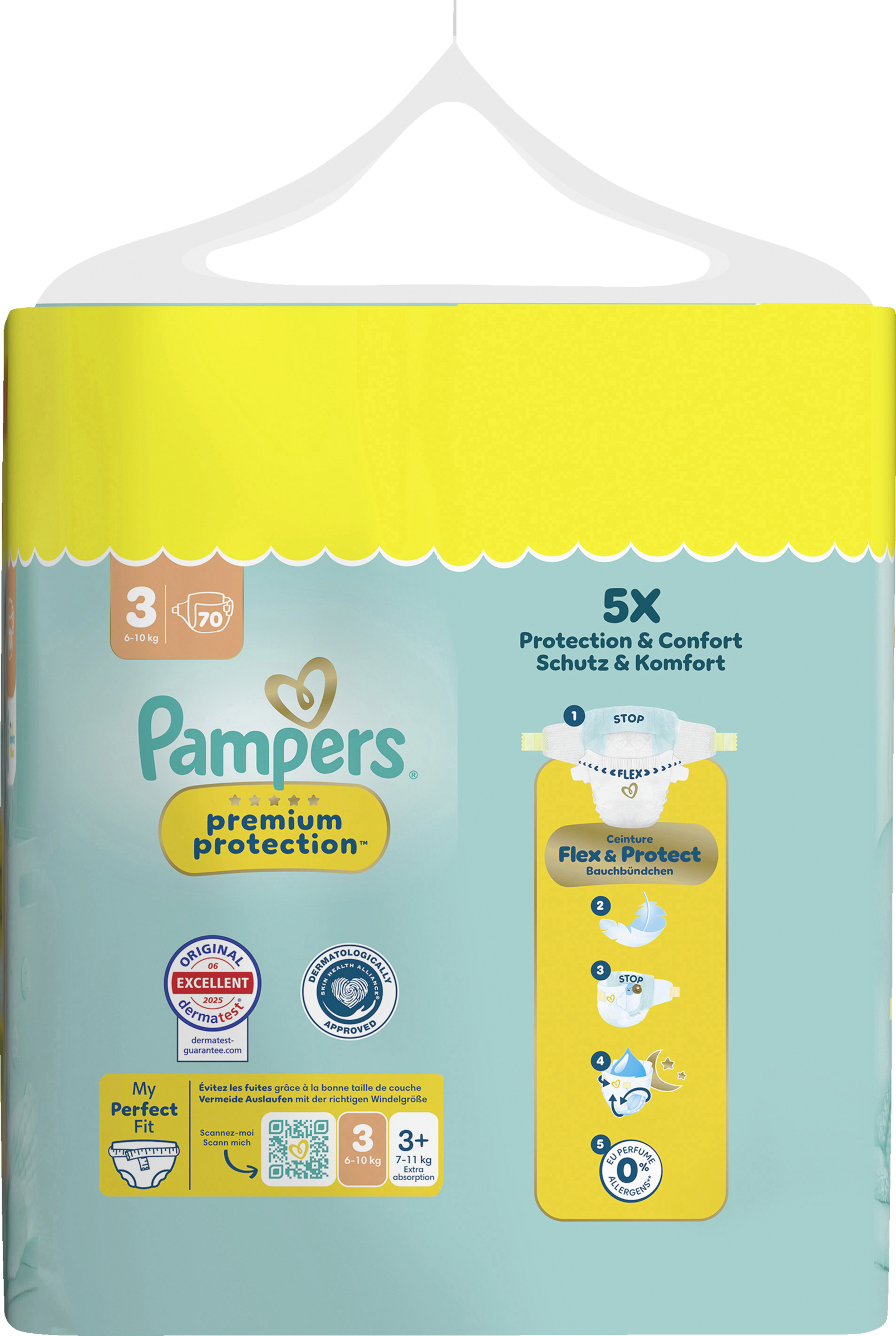Pampers’ bester Komfort und Schutz für empfindliche Haut – von Babys empfohlen! Pampers Premium Protection sind speziell entwickelt für die empfindliche Haut von Neugeborenen und die Nr. 1 in deutschen Geburtsstationen (basierend auf Februar 2025 Verteilungsdaten in Geburtsstationen in Deutschland). Sie sind sicher für die Haut deines Babys: dermatologisch getestet und enthalten 0% EU-Parfümallergene (keine absichtlich hinzugefügten EU-Parfümallergene gemäß der EU-Kosmetikverordnung (EG) Nr. 1223/2009).