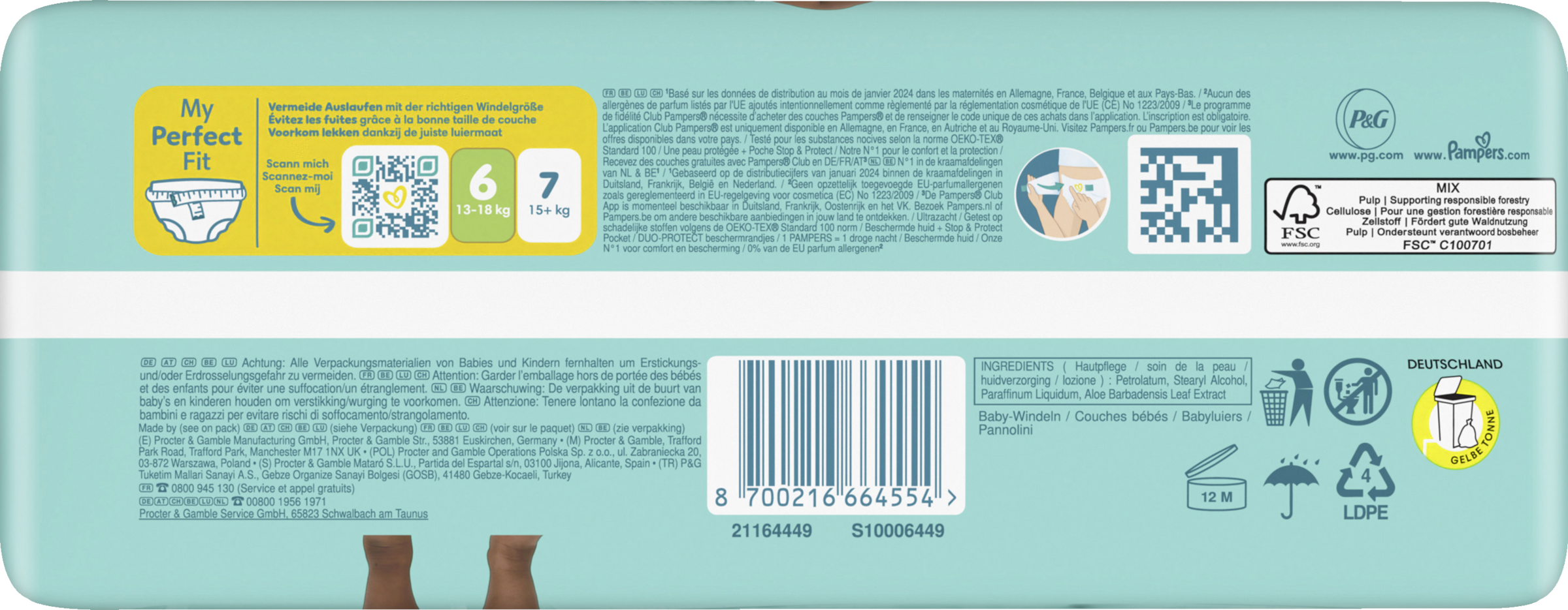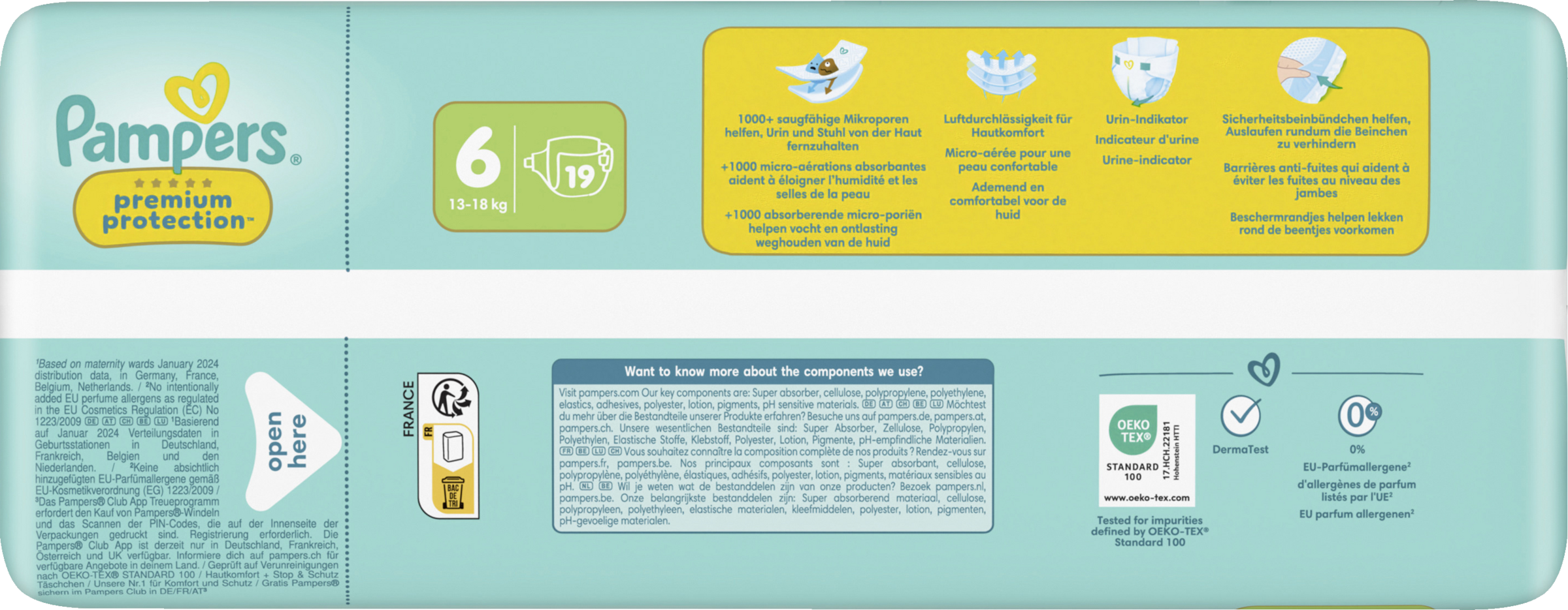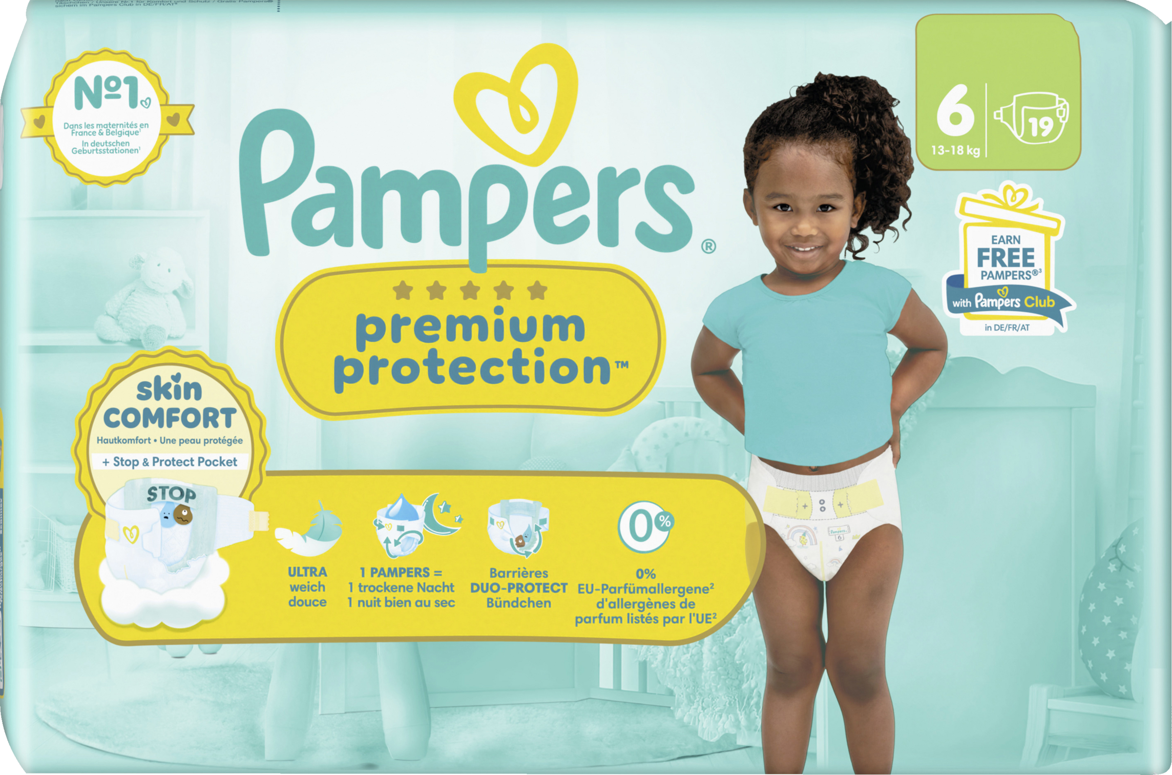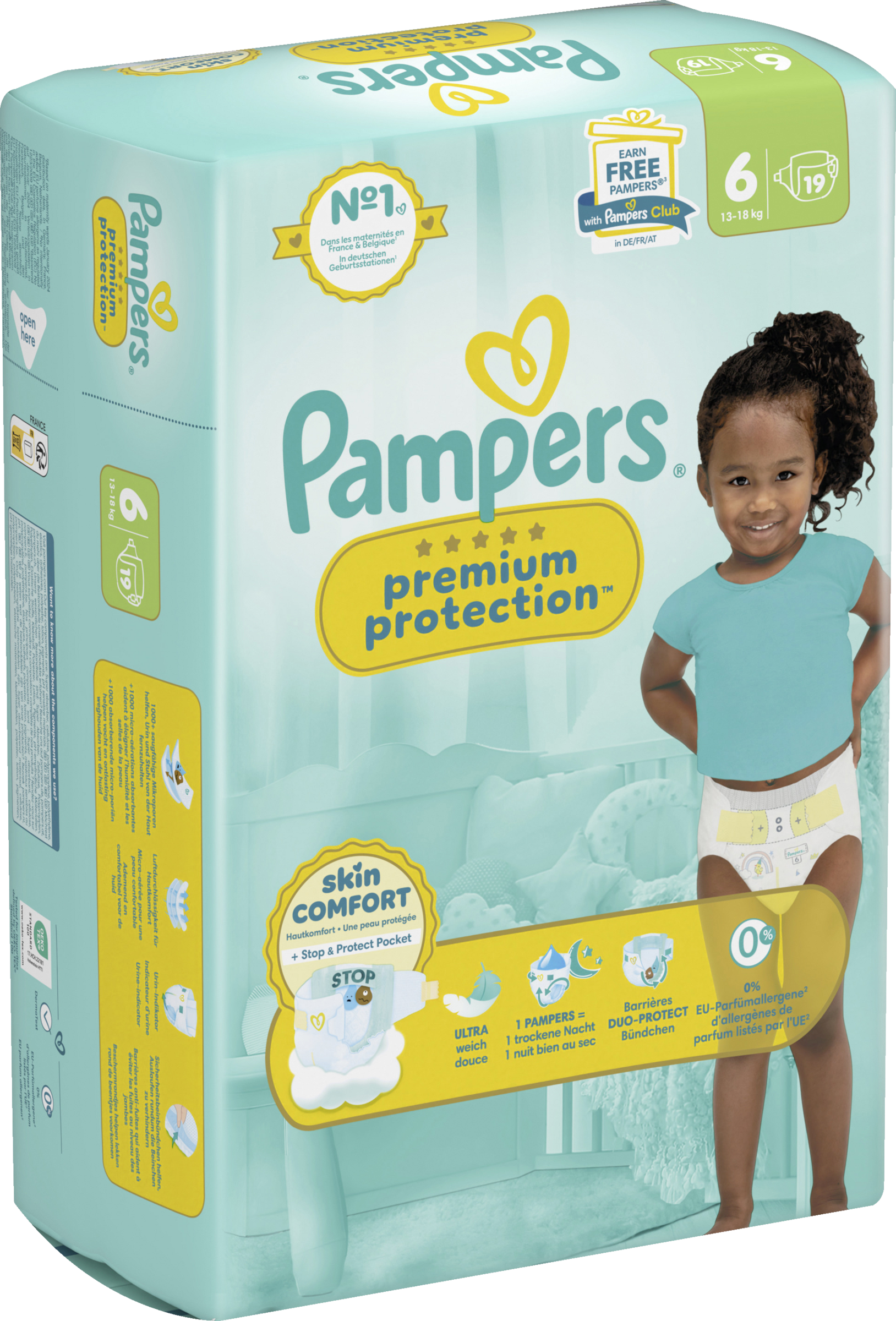Doppelter Schutz für die Haut und vor Auslaufen. Der beste Komfort und Schutz von Pampers für empfindliche Babyhaut - von Babys empfohlen! Pampers Premium Protection Windeln bieten unseren besten Schutz dank sofortigem absorbieren - mit 1000+ saugfähigen Mikroporen, die Urin und Stuhl sofort von der Haut fernhalten, sodass die empfindliche Babyhaut trocken und geschützt bleibt. Mit einzigartigem stop & schutz täschchen, das Auslaufen am Rücken verhindert. Aus ultra weichen Materielien, die die Haut deines Babys in Komfort und Schutz hüllen und den einzigartigen KOMFORT-FIT mit überlappenden Verschlussstreifen. Pampers Premium Protection, die Nr. 1 in deutschen Geburtsstationen (basierend auf Januar 2024 Verteilungsdaten in Geburtsstationen in Deutschland), sind sicher für die Haut deines Babys: Sie sind dermatologisch getestet und enthalten 0% EU-Parfümallergene (gemäß EU-Kosmetikverordnung Nr. 1223/2009).