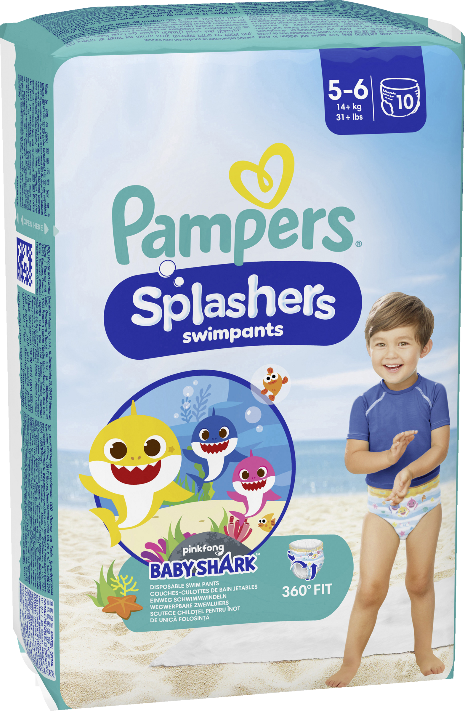 Mit den Pampers Splashers Schwimmwindeln kann dein Baby ungestört im Wasser planschen. Im Gegensatz zu herkömmlichen Windeln und Pants saugen sich Pampers Splashers nicht mit Wasser voll: sie sitzen wie eine Badehose und schützen wie eine Pampers! Mit süßen Baby Shark Designs für kleine Fans! Für einen sicheren Schutz im Wasser passen sich die doppeltenSicherheitsbündchen von Pampers Splashers rundum die Beinchen deines Babys an, um ein Auslaufen zu vermeiden - perfekt für Pool, Strand, Aquapark usw. Das 360° dehnbare Bauchbündchen passt sich angenehm an das Bäuchlein deines Babys an und ermöglicht einfaches An- und Ausziehen - selbst, wenn es nass ist. Pampers Splashers verfügen außerdem über leicht aufreißbare Seitenbündchen für einfaches Windelwechseln.