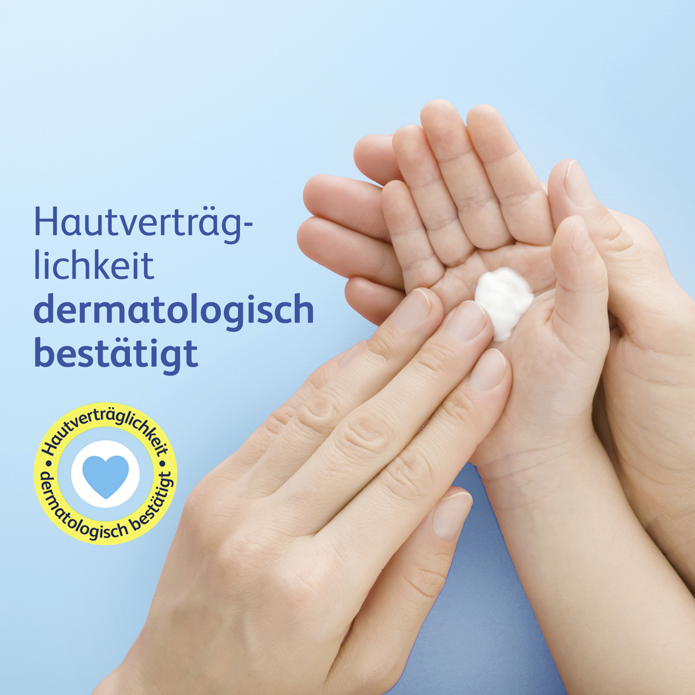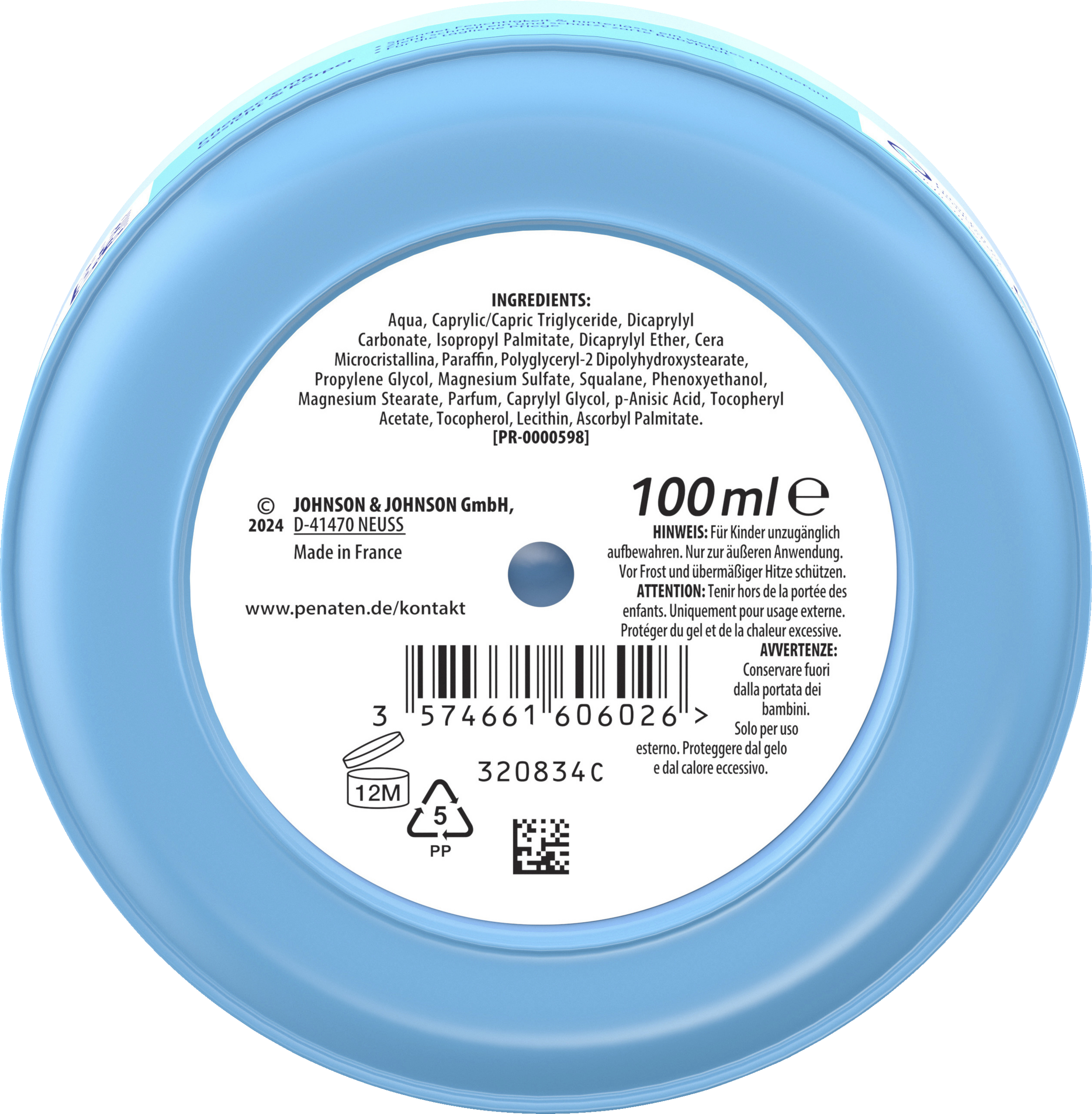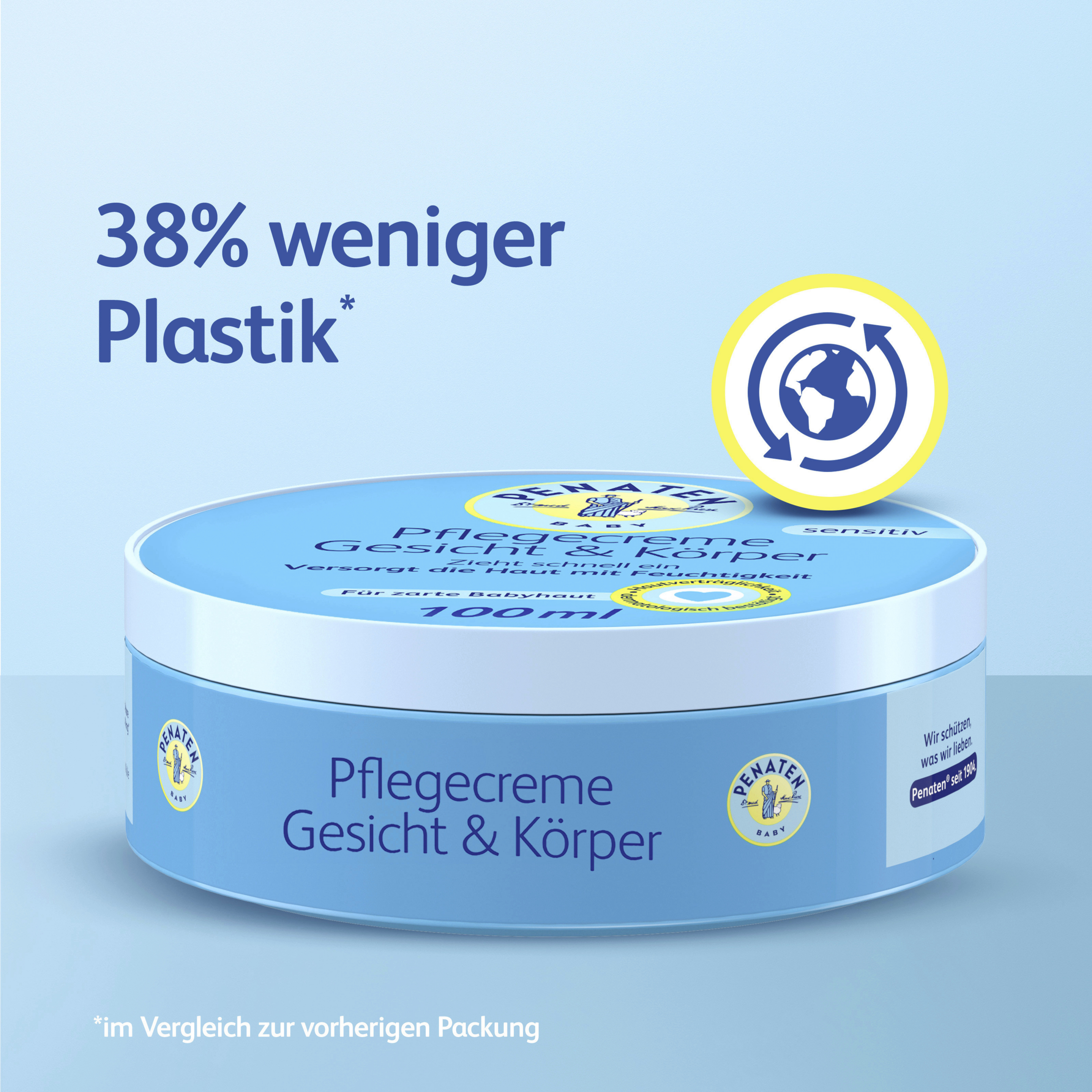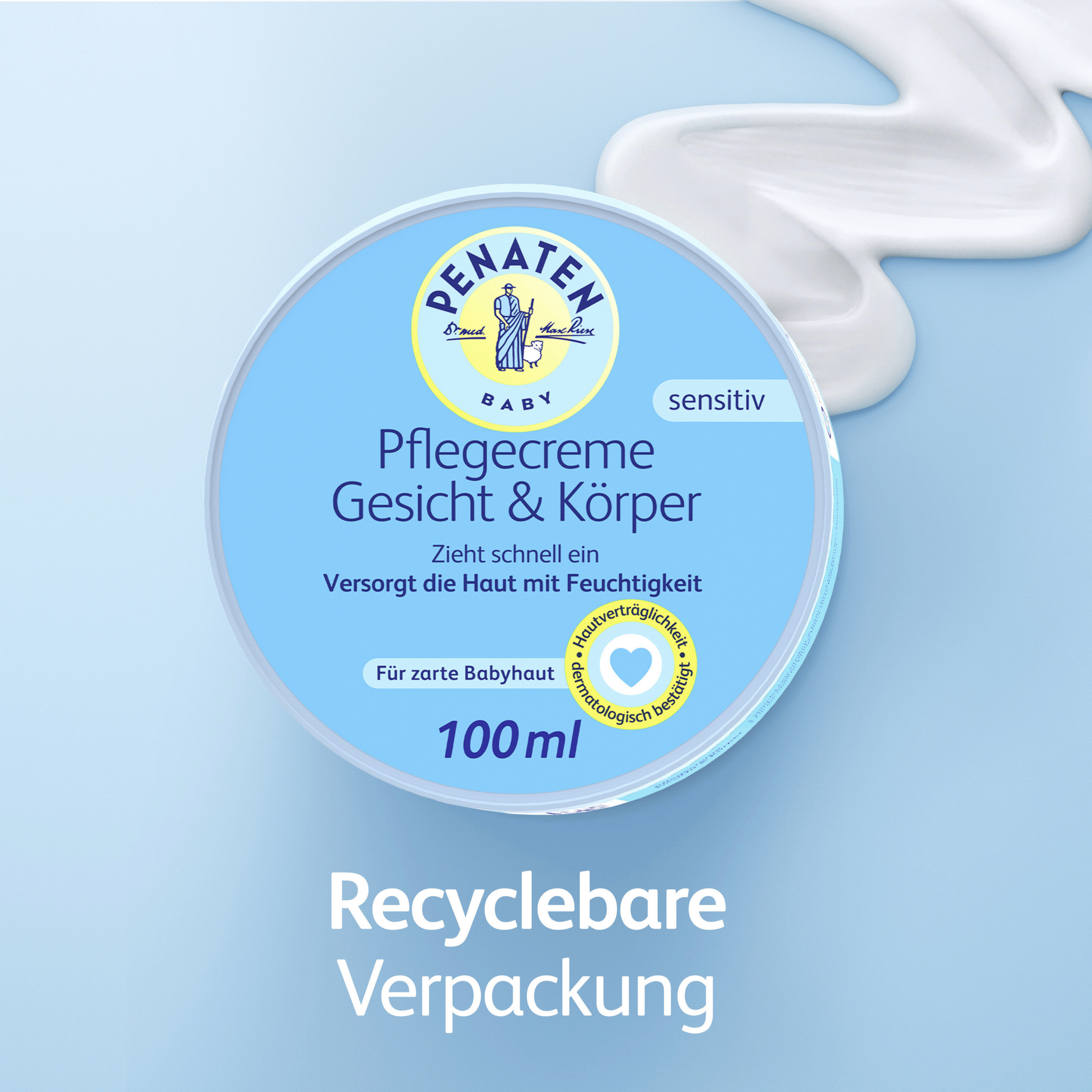 Es dauert mehrere Jahre, bis sich die empfindliche Babyhaut voll entwickelt hat und alle ihre Schutzfunktionen besitzt. Regelmäßige Babypflege unterstützt die gesunde Entwicklung der Babyhaut. Die Baby Gesichtscreme und Körpercreme von Penaten versorgt die Haut mit wichtiger Feuchtigkeit und hinterlässt ein angenehm weiches Hautgefühl. Die pflegende Baby Körpercreme zieht schnell ein, schützt die empfindliche Babyhaut und bietet die ideale Grundlage für eine optimale Körperpflege.