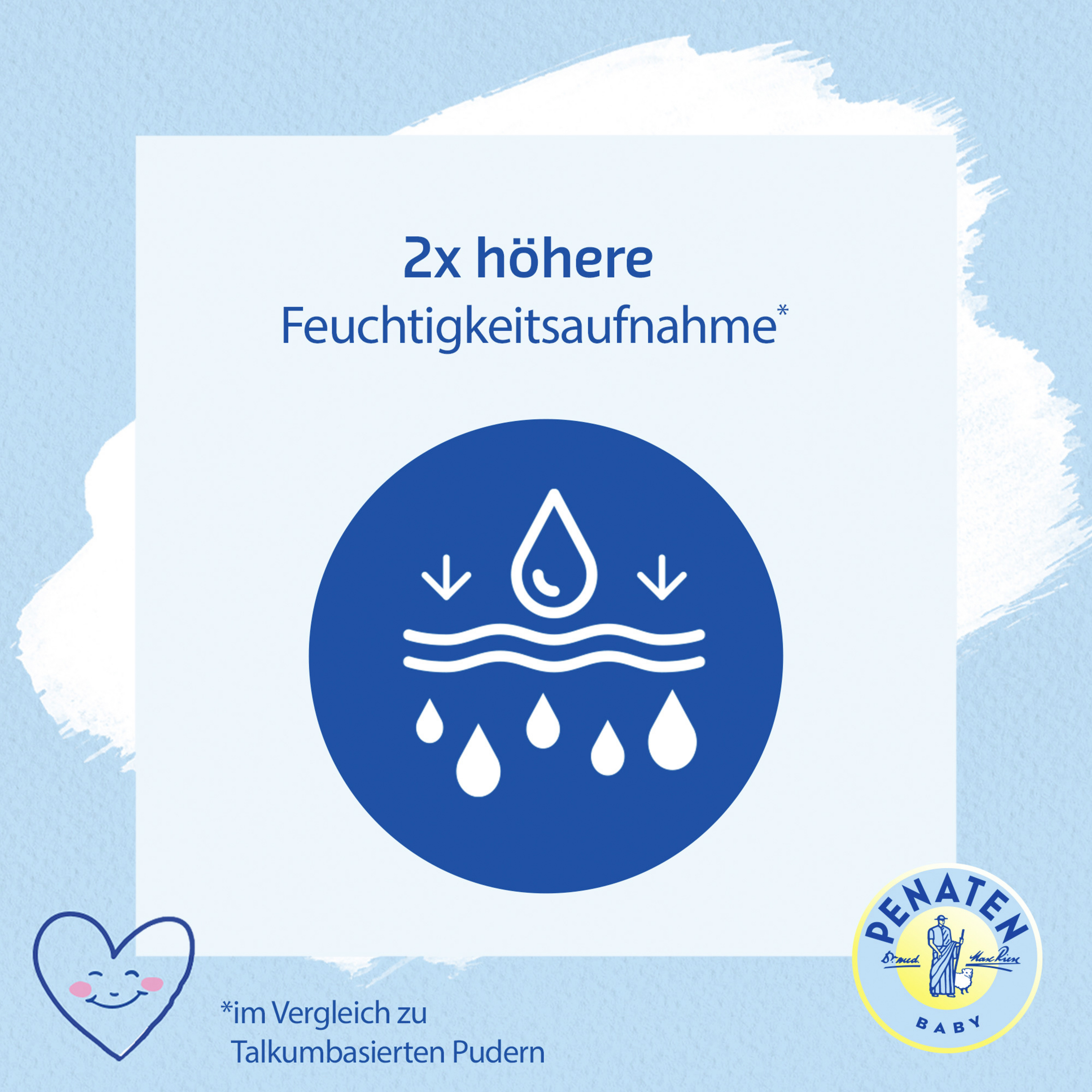 Im Vergleich zu Pudern, die auf Talk basieren, hat das Baby Puder eine 2x höhere Feuchtigkeitsaufnahme, was bedeutet, dass es noch besser geeignet ist, um Feuchtigkeit aufzunehmen und die Haut Ihres Babys trocken zu halten.
