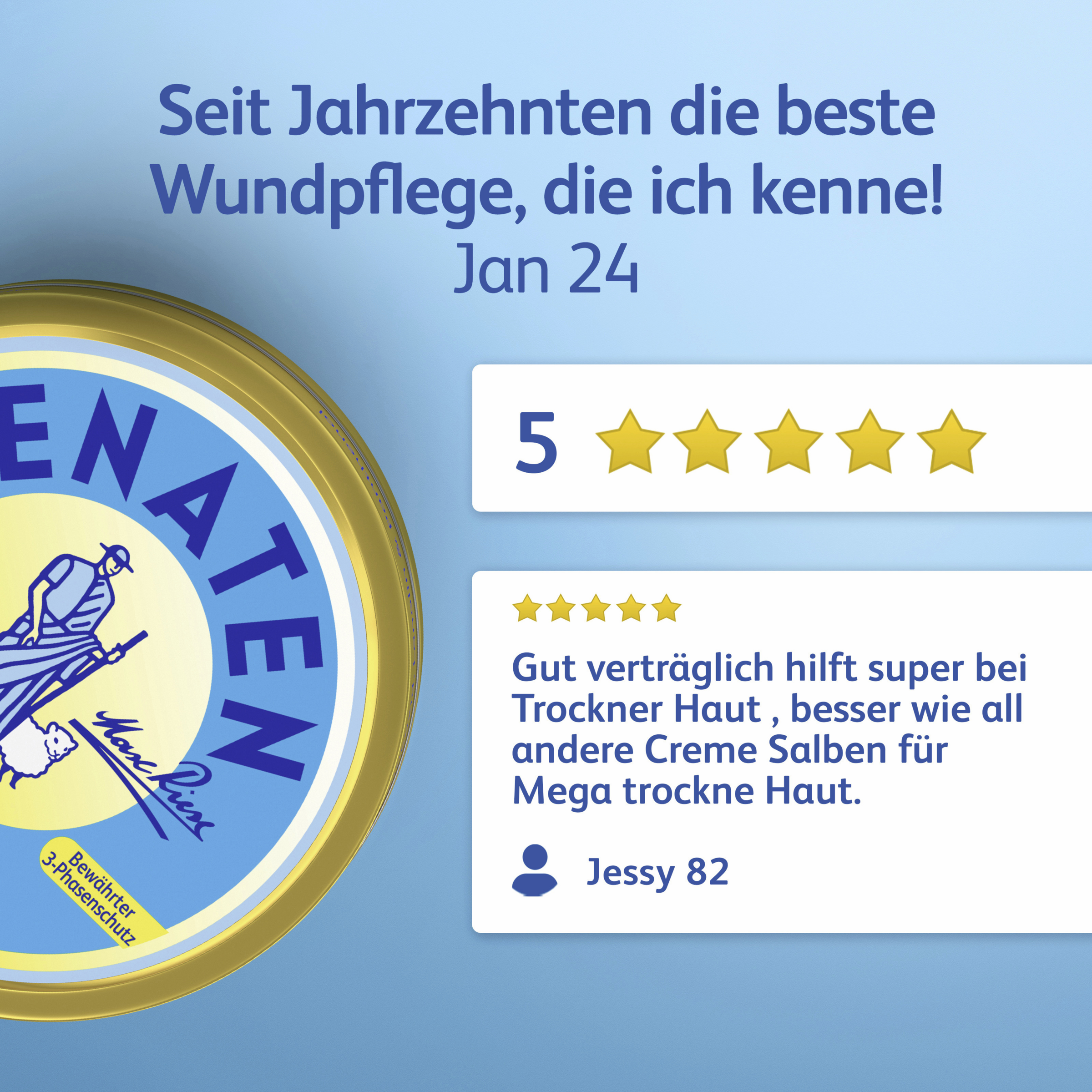 - die bewährte Wundschutz- und Hautcreme mit Inhaltsstoffen natürlichen Ursprungs beruhigt gereizte Haut bis zu 12h und bietet Schutz & Pflege, zieht schnell ein & beruhigt sofort auch trockene Haut. Seit 1904 schützen wir von Penaten, was wir lieben