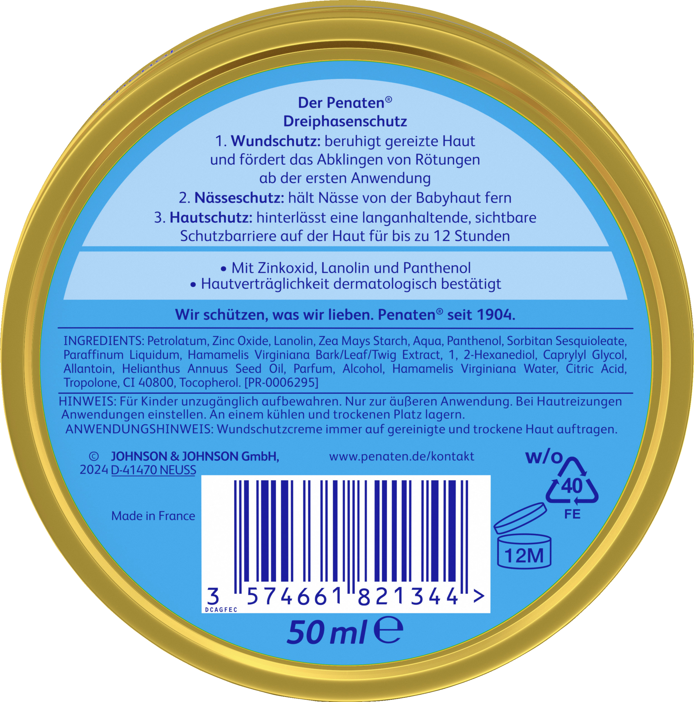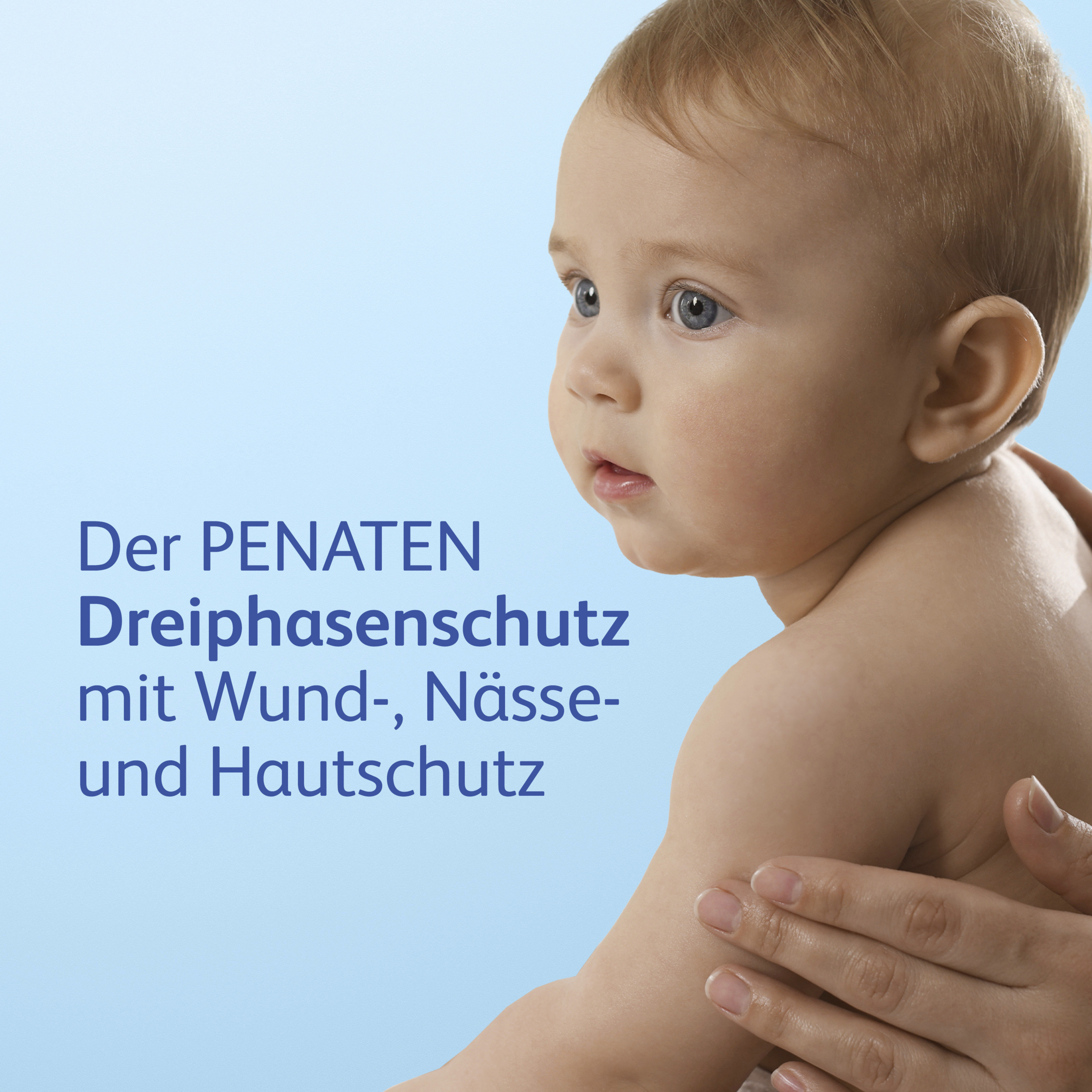 Schützt sofort und beruhigt empfindliche Babyhaut: Die Penaten Creme mit dem bewährten Penaten Schutz schützt sofort und beruhigt empfindliche Babyhaut, zusätzlich ist die Hautverträglichkeit der Baby Creme dermatologisch bestätigt. Die besonders pflegende Baby Wundschutzcreme spendet dank schützendem Zinkoxid, pflegendem Lanolin & beruhigendem Panthenol wirksamen Schutz und intensive Hautpflege, ideal für die tägliche Anwendung. Zudem beruhigt der Wundschutz mit Penaten 3-Phasenschutz gereizte Haut und fördert das Abklingen von Rötungen ab der ersten Anwendung, der Nässeschutz hält Nässe von Babyhaut fern und der Hautschutz hinterlässt eine langanhaltende, sichtbare Schutzbarriere auf der Haut. Darüber hinaus beruhigt die bewährte Wundschutzcreme & Hautcreme gereizte Haut bis zu 12h, verleiht verlässlichen Schutz & reichhaltige Pflege und beruhigt sofort auch trockene Haut. Seit 1904 schützen wir von Penaten, was wir lieben.