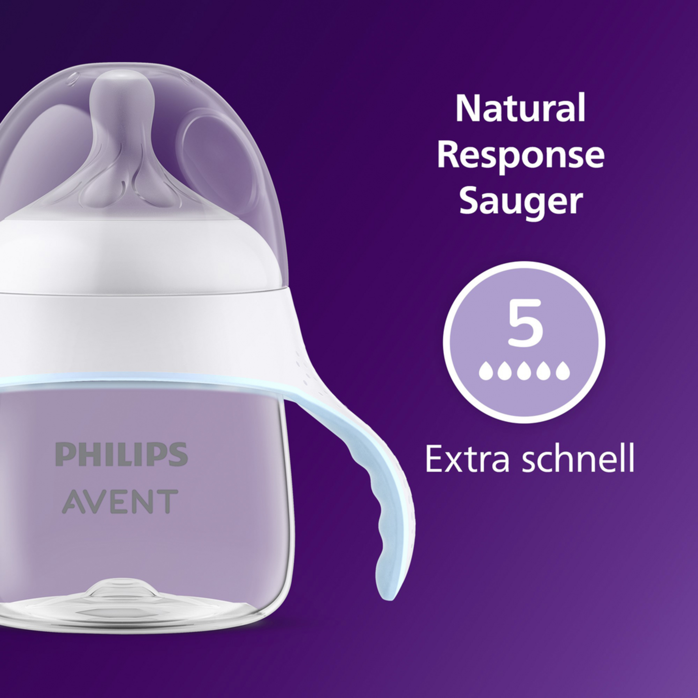 Die weichen, ergonomischen Griffe sind perfekt für kleine Hände und unterstützen das selbstständige Trinken. Der Sauger mit extra schneller Durchflussrate sorgt für einen kräftigen, gleichmäßigen Milchfluss – ideal für Babys, die bereits mehr trinken. Das Anti-colic-Ventil reduziert Koliken und Unwohlsein, indem es Luft vom Bauch des Babys fernhält. Das tropfsichere Design verhindert, dass Milch austritt oder das Baby sich verschluckt. Der Becher ist leicht zu reinigen, schnell zusammenzusetzen und mit allen Philips Avent Natural Response Flaschen und Saugern kompatibel. BPA-frei und sicher – für einen natürlichen, bequemen und sanften Übergang zum eigenständigen Trinken.