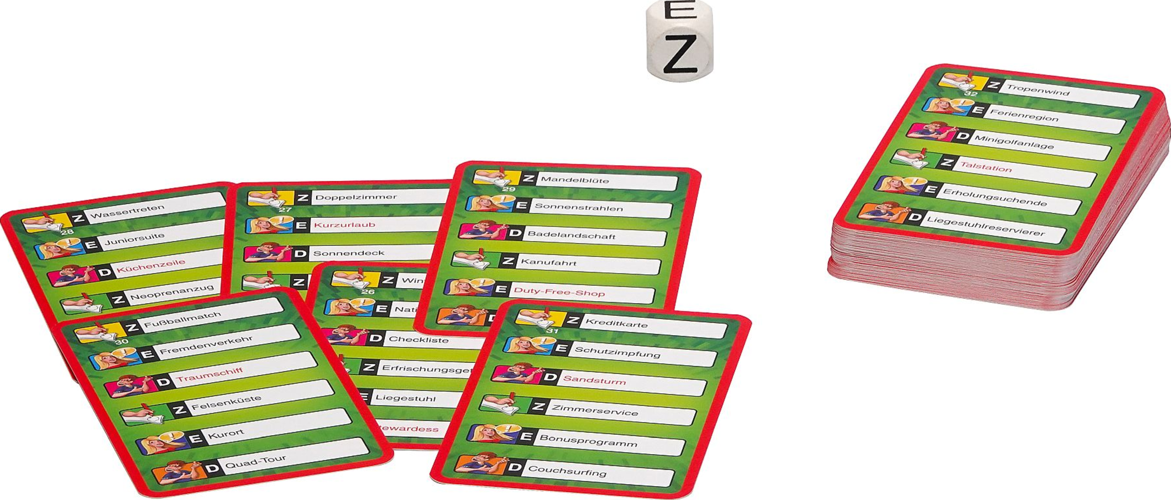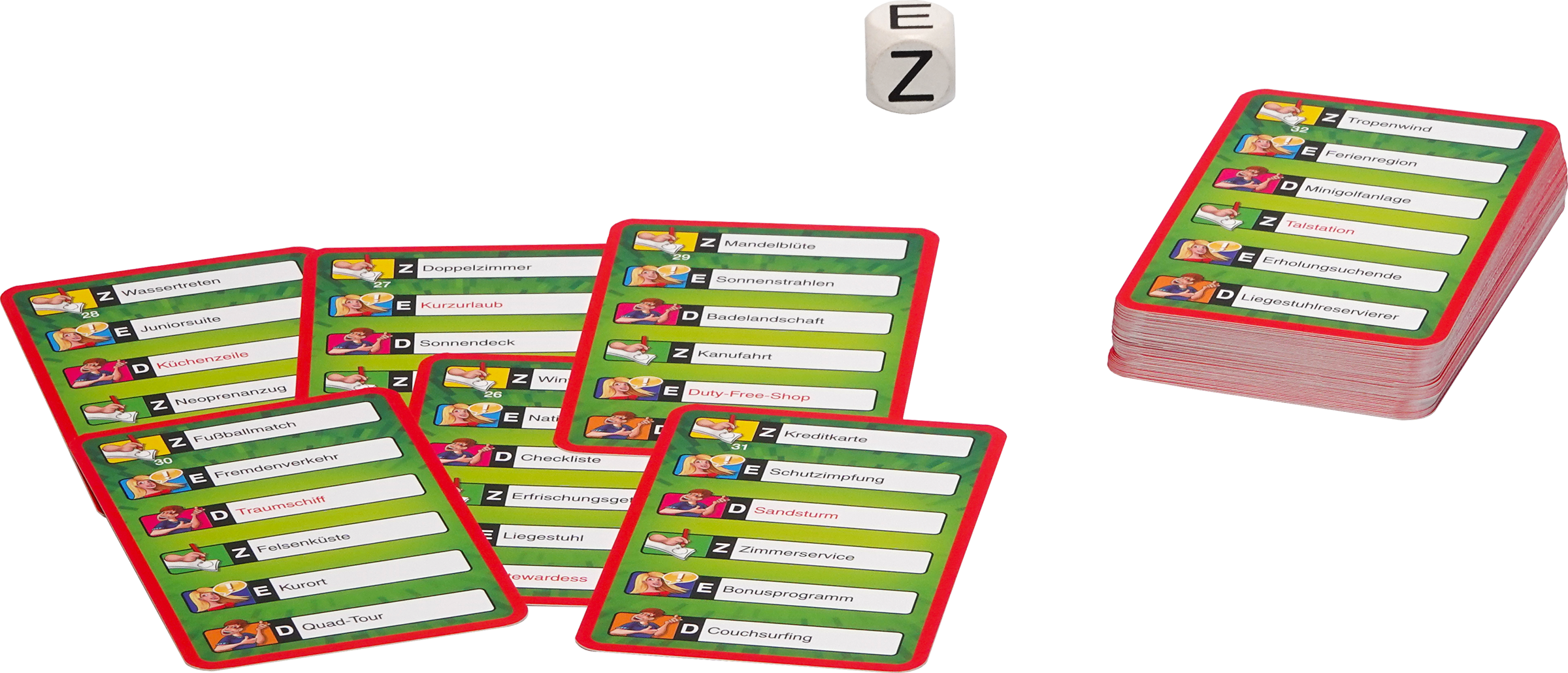 Die Pocket-Variante enthält einen Buchstabenwürfel, der die auszuführende Darstellungsart vorgibt. Und 55 Karten mit jeweils 6 Begriffen, die es mittels Zeichnen, Pantomime oder Erklären darzustellen gilt. Anstelle einer Sanduhr wird der Timer kurzerhand am Handy gestellt.
