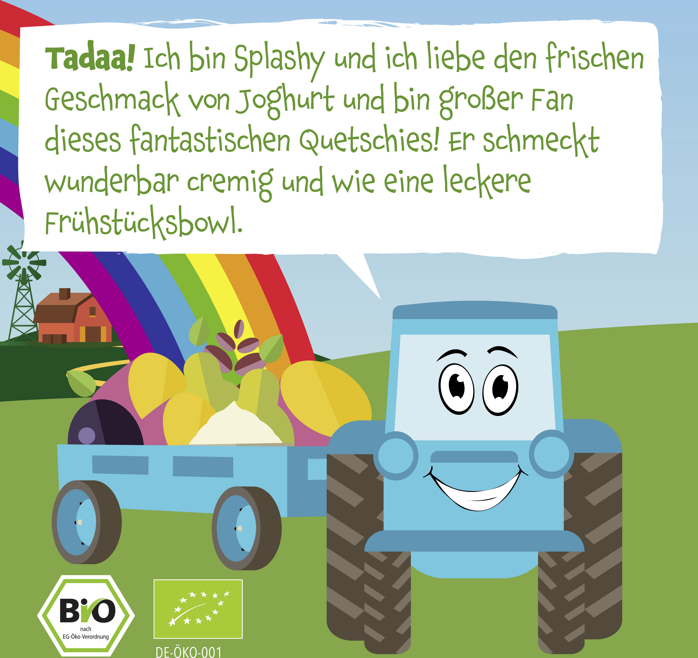 Der die cremig-frische Kombination aus Süßkartoffel, Joghurt und Hafer schmeckt den Kleinen, aber auch den Großen. Der Quetschie enthält keinen Zuckerzusatz oder Zusatzstoffe und eignet sich hervorragend als Zwischenmahlzeit für unterwegs, in der Wickeltasche oder auf dem Spielplatz. Außerdem ist die Quetschie-Verpackung recycelbar im gelben Sack.