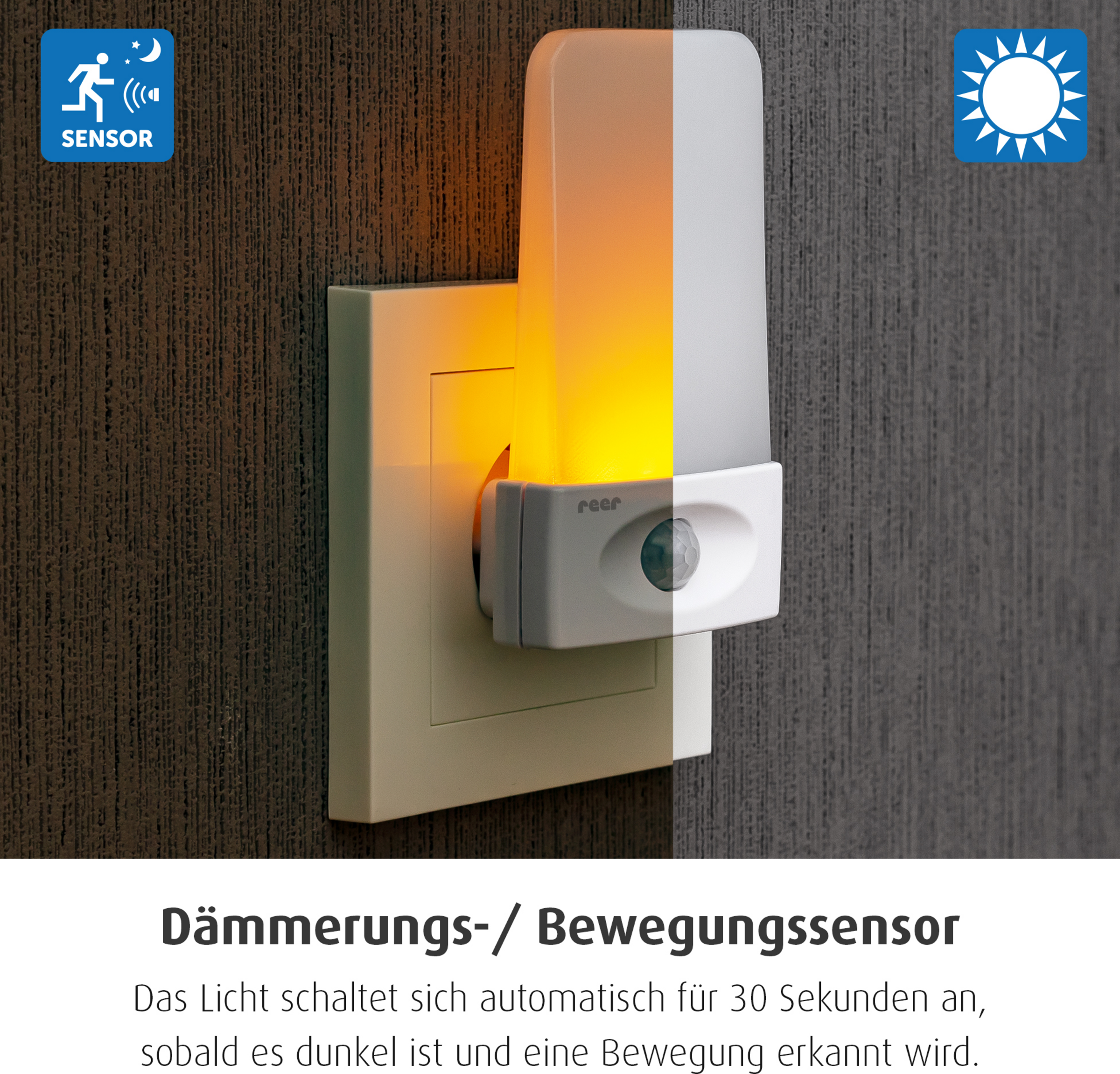 - Bewegungssensor: schaltet sich bei Bewegung für 30 Sekunden ein