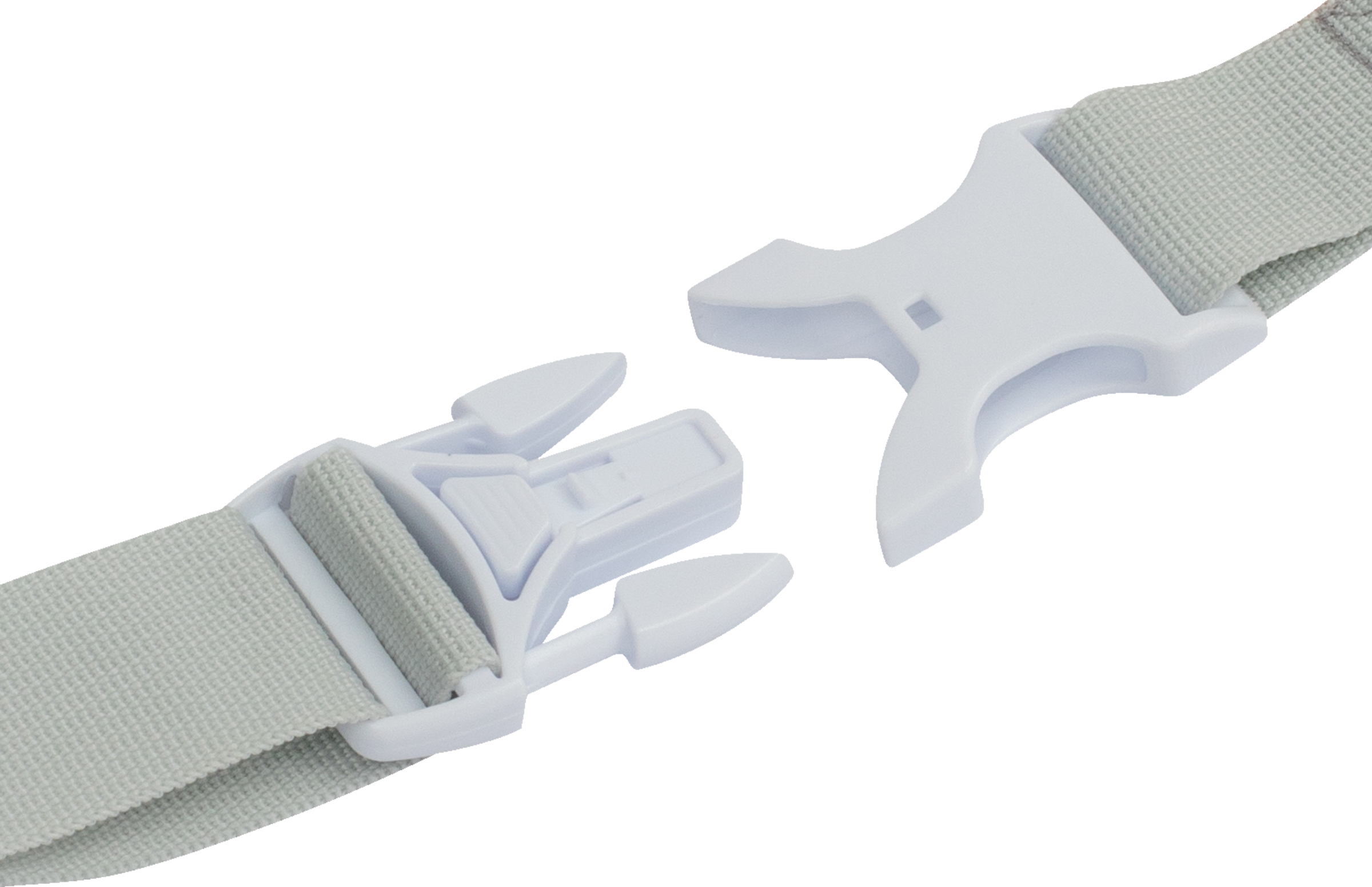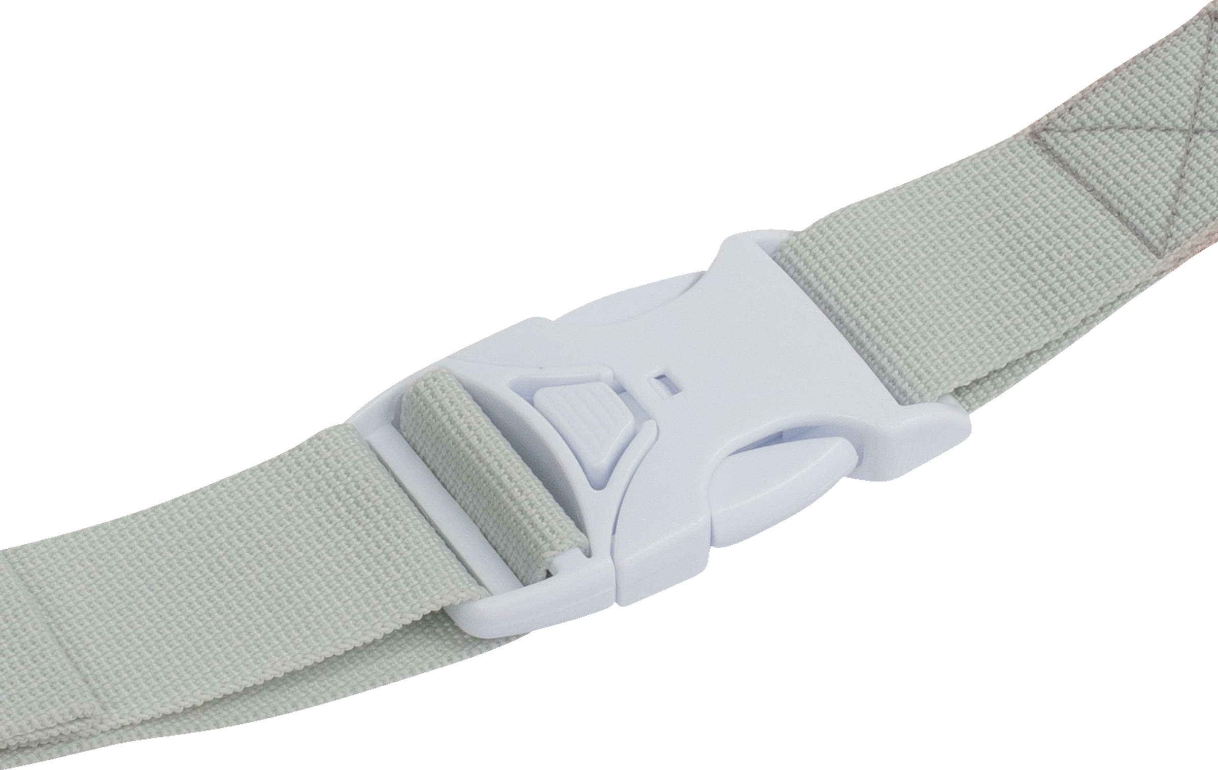 - verstellbarer Bauch- und Schrittgurt mit kindersicherem Zwei-Handgriffe-Verschluss