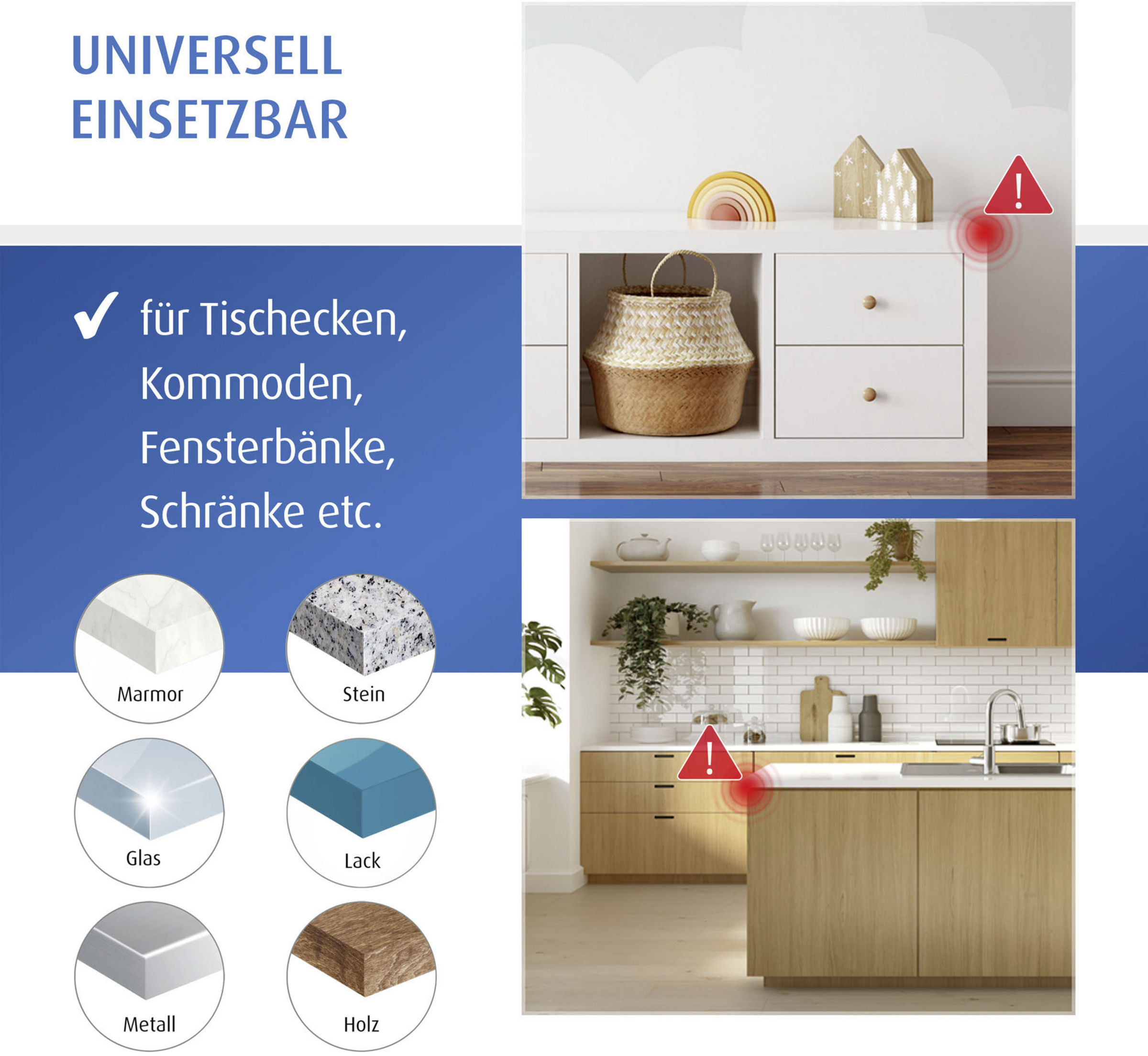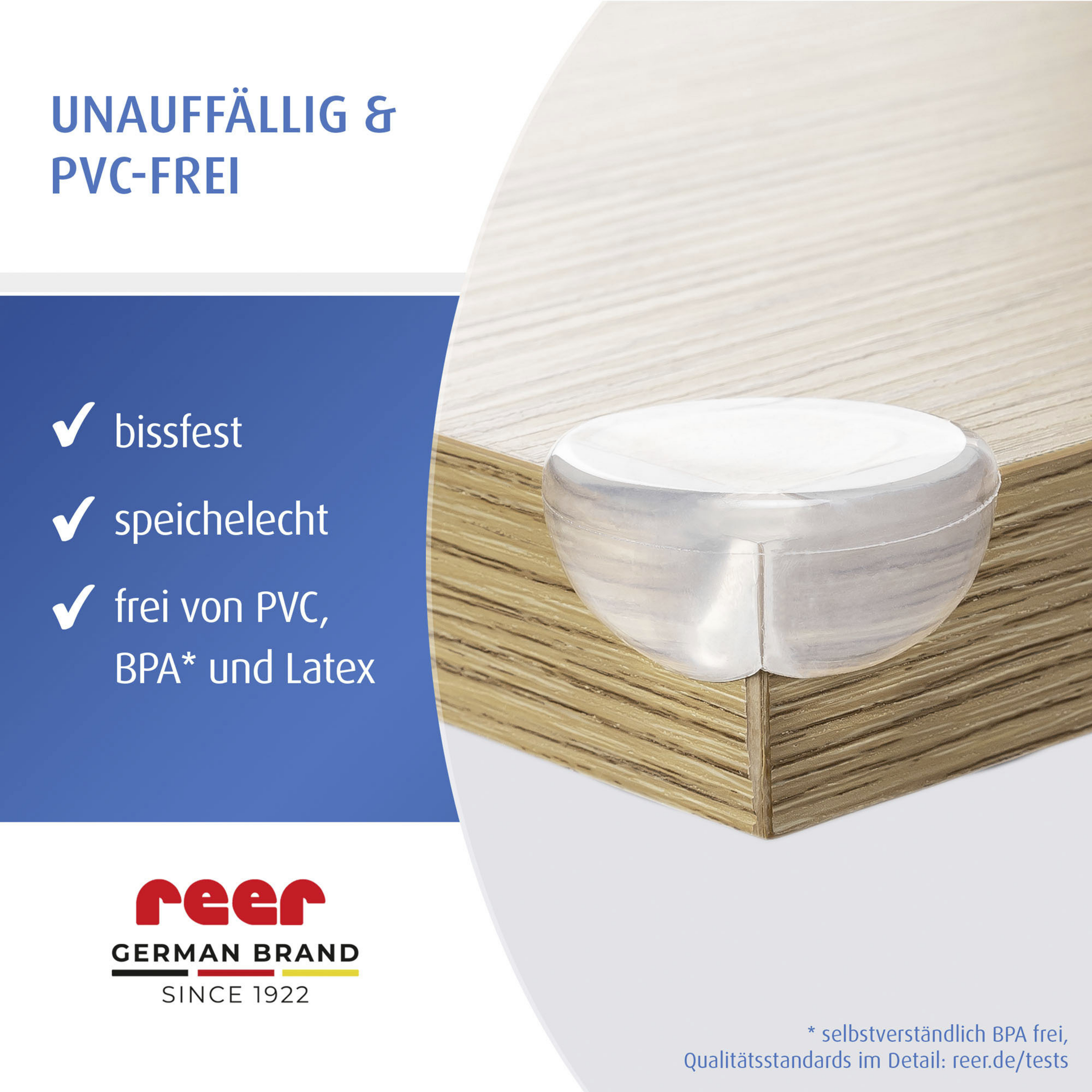 - Stelle sicher, dass das Reinigungsmittel für die zu beklebende Oberfläche geeignet ist. Um das Verletzungsrisiko zu minimieren, wird die Montage an der oberen und unteren Tischkante empfohlen. Eckenschutz entfernen: Ein Erwärmen der Klebestellen mit einem Föhn kann hilfreich sein. Bitte prüfe zuerst die Temperaturbeständigkeit des Möbelstücks.