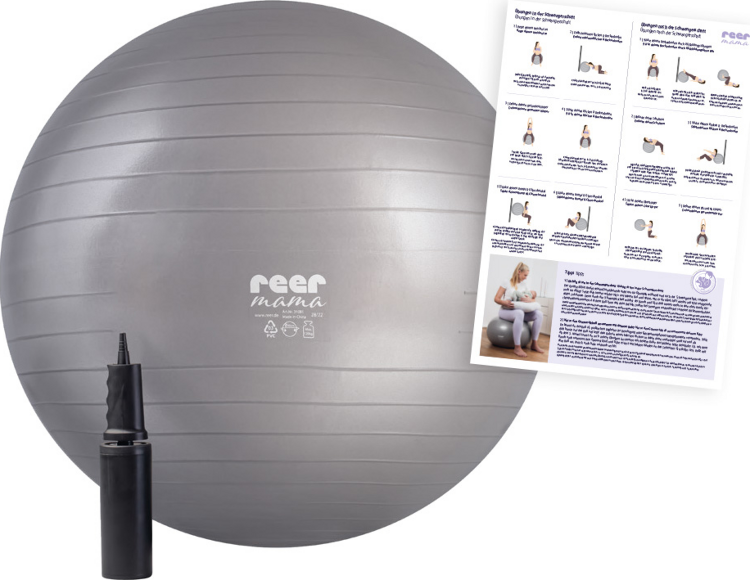 - Inhalt: 1x Ball, 1x Pumpe, 1x Übungsanleitung
