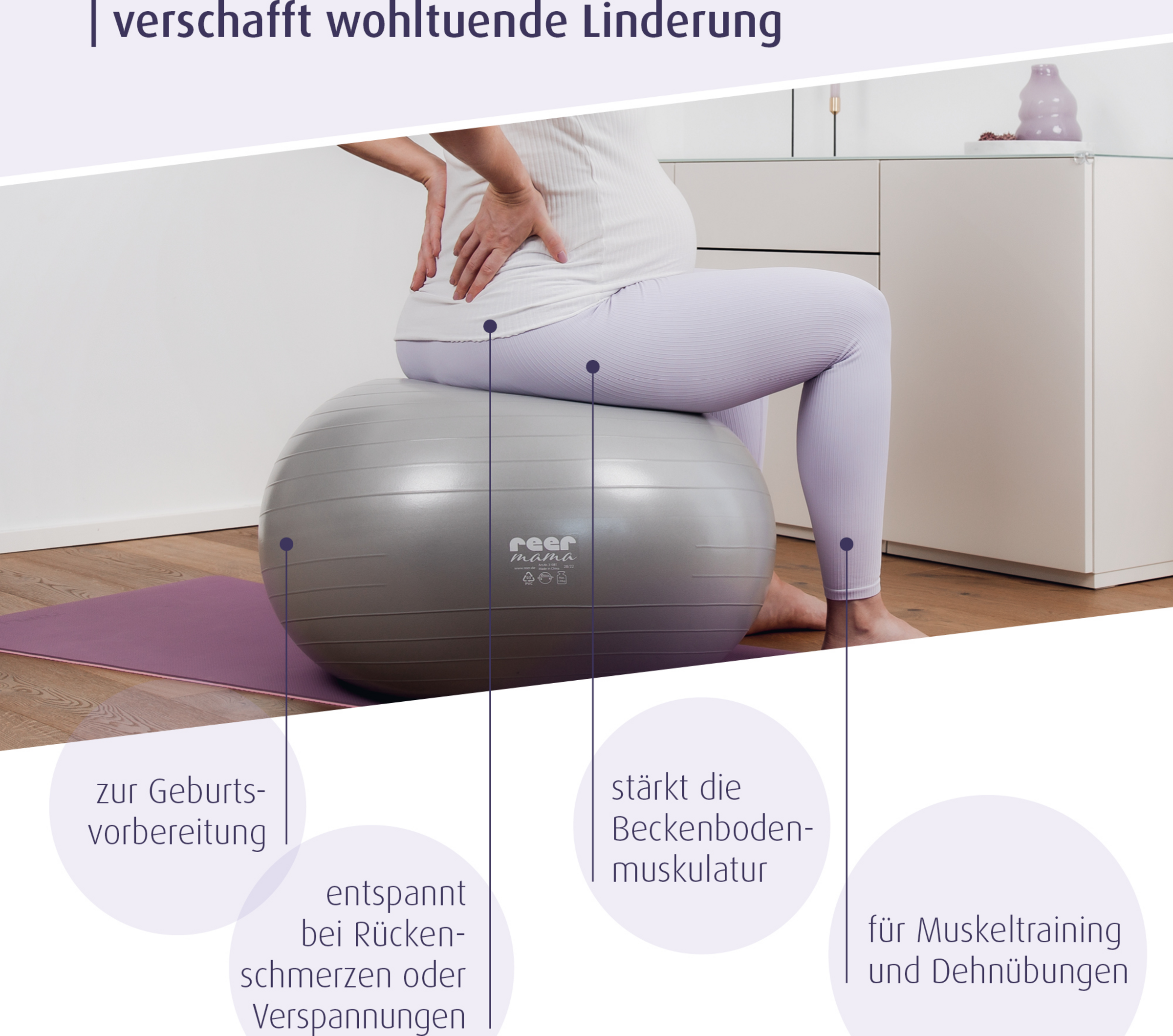 - vielseitig einsetzbar auch nach der Schwangerschaft z.B. für Rückbildungsübungen oder als Einschlafhilfe für das Baby