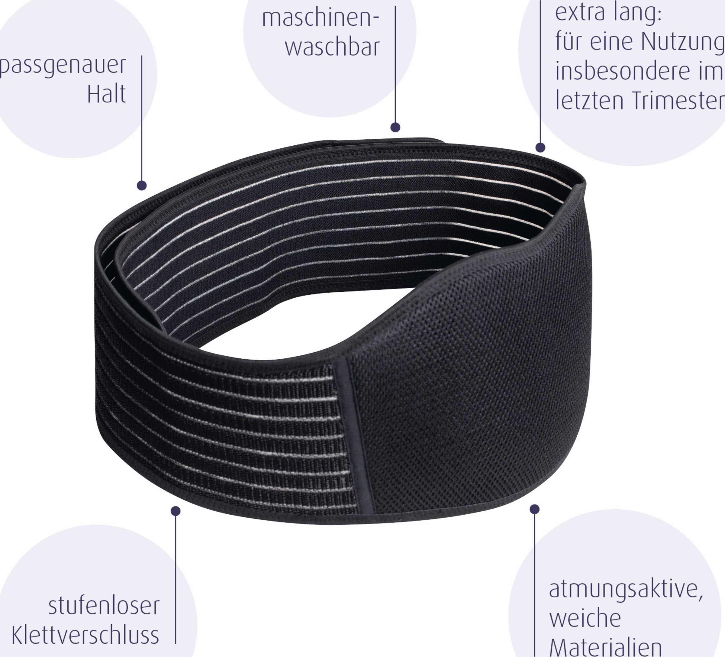 Den Stützgürtel nur unter Belastung tragen und nicht während sitzenden oder liegenden Ruhephasen. Nicht anwenden bei schweren und chronischen (Haut-) Krankheiten. Bei gesundheitlichen Bedenken wende dich vor Gebrauch des Artikels an deinen Arzt oder Hebamme.