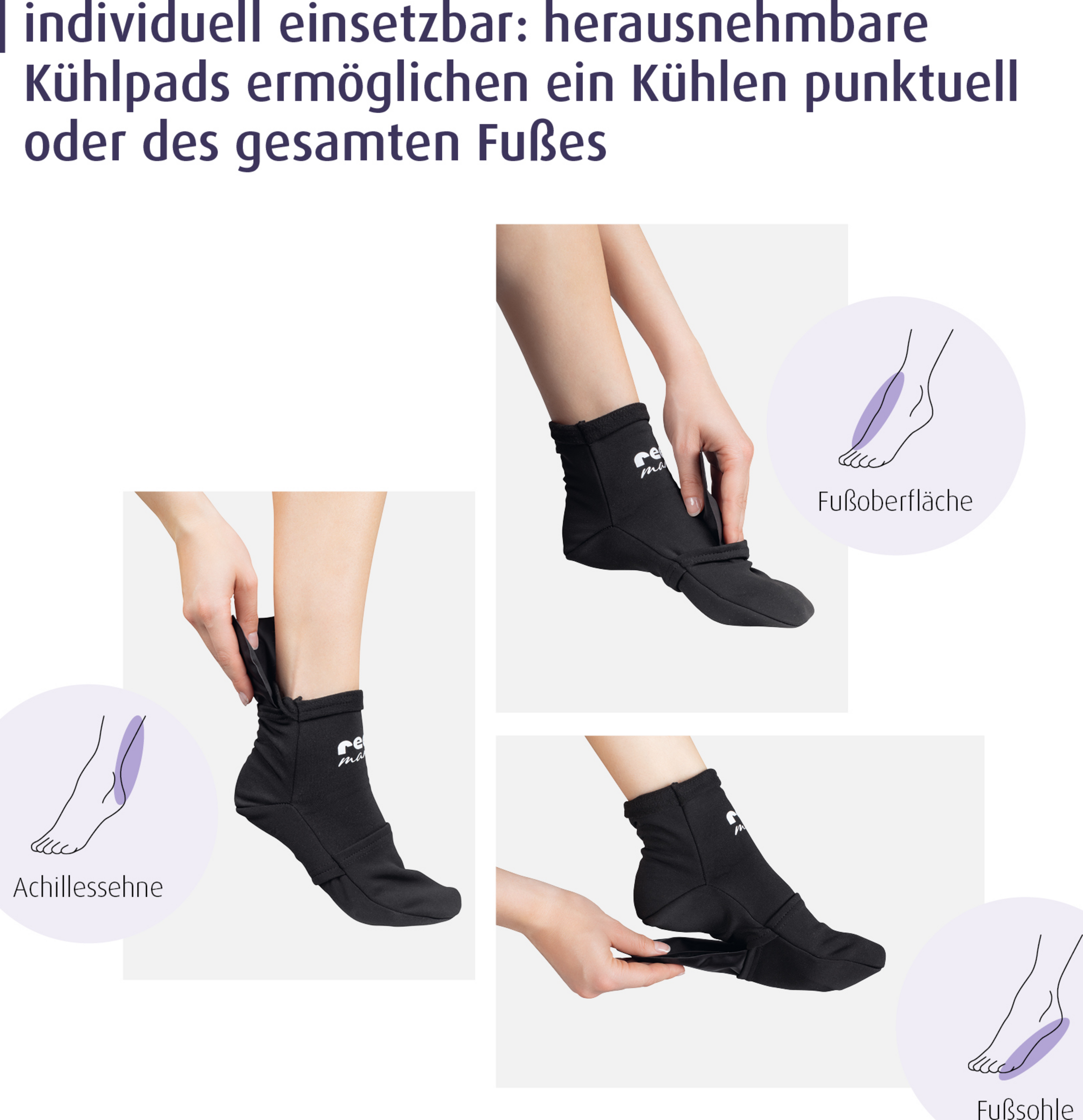 - individuell einsetzbar: herausnehmbare Pads ermöglichen ein Kühlen punktuell oder des gesamten Fußes